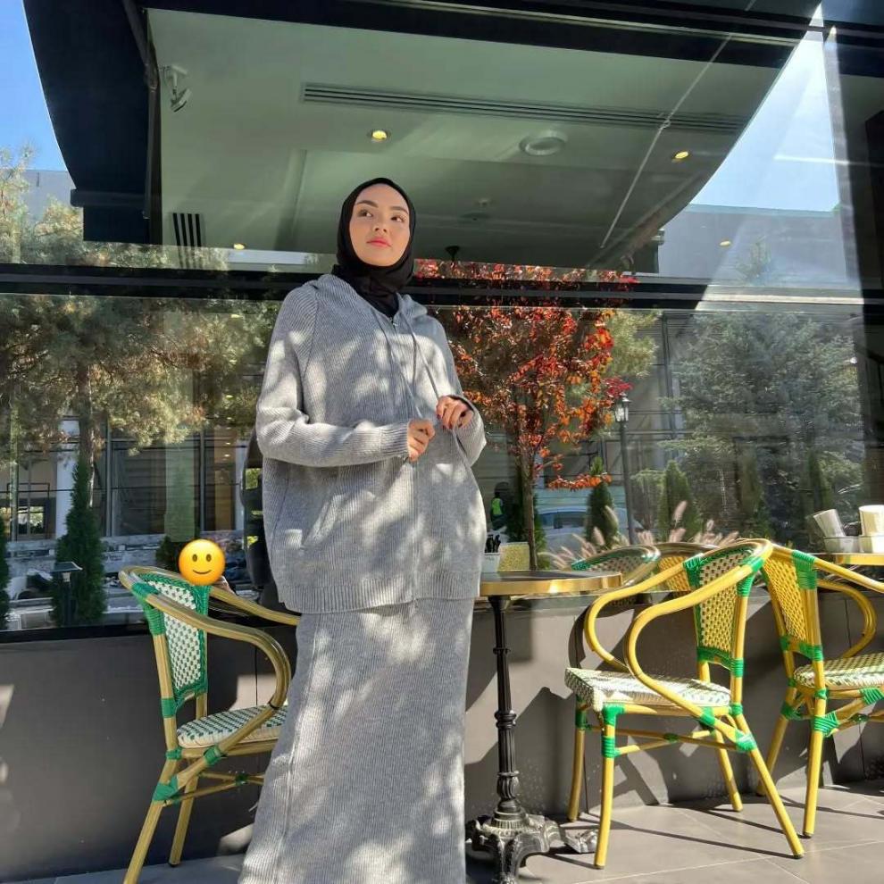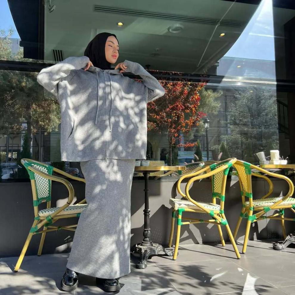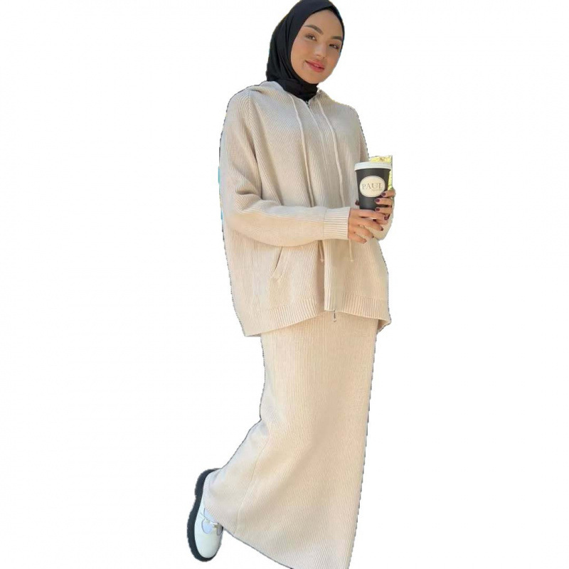 2025春季新款欧美亚马逊跨境女装纯色连帽针织衫卫衣百搭长裤套装