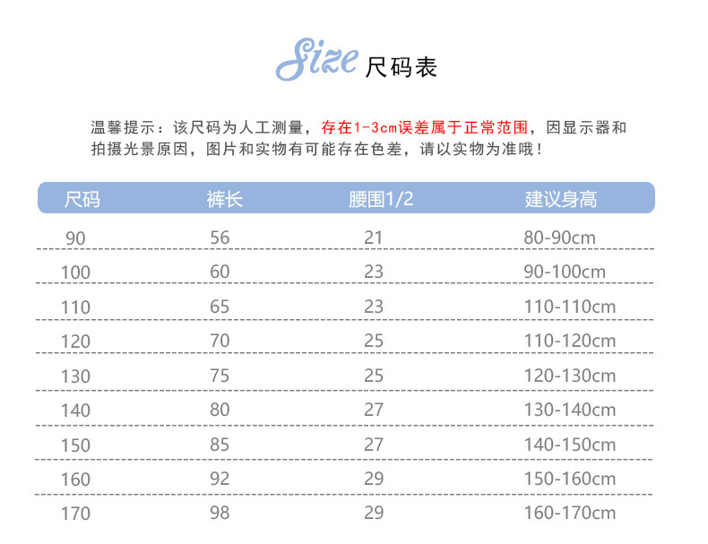 100cm; 110cm; 120cm; 130cm; 140cm; 150cm; 160cm; 170cm