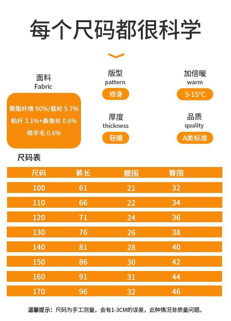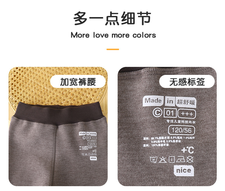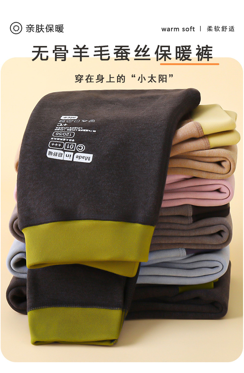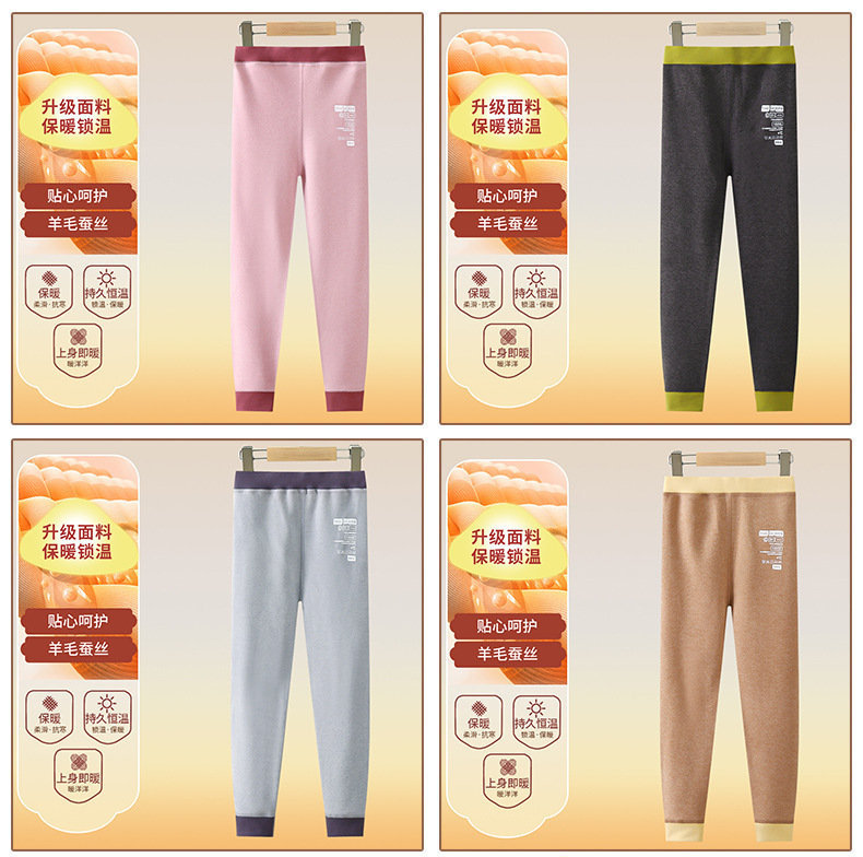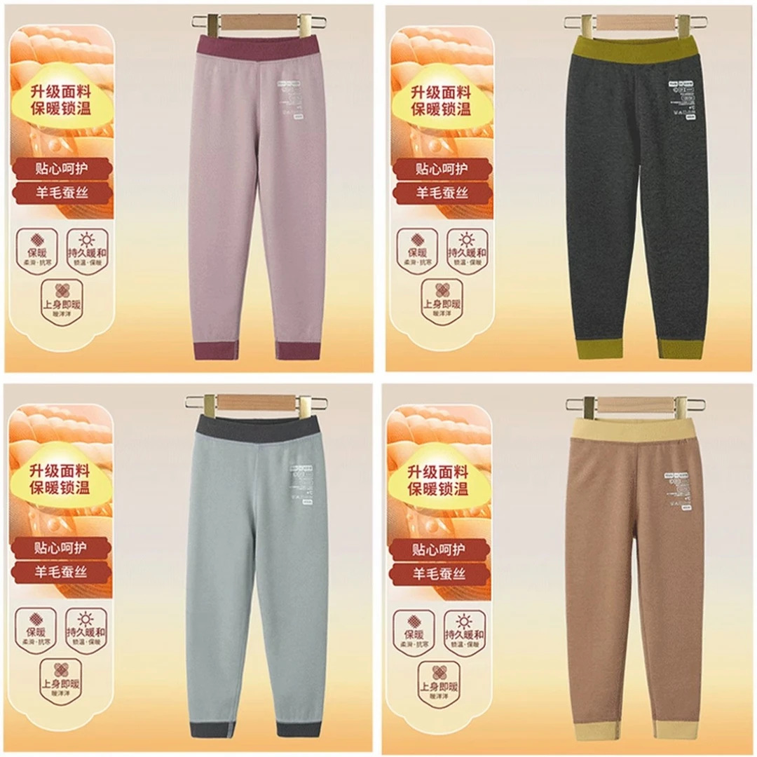 开学季养毛蚕丝高腰秋裤无痕男童保暖裤女孩秋裤中学生秋冬打底裤