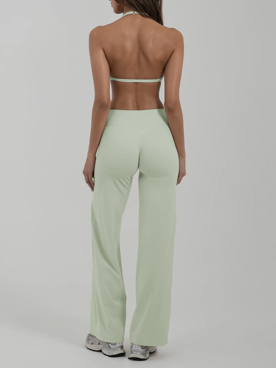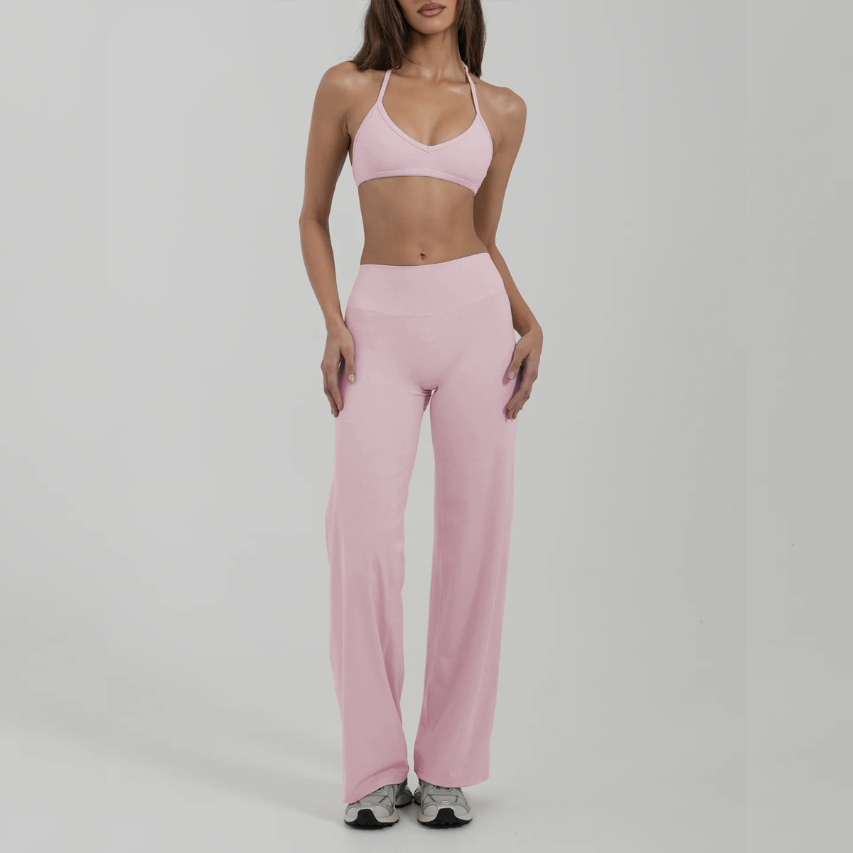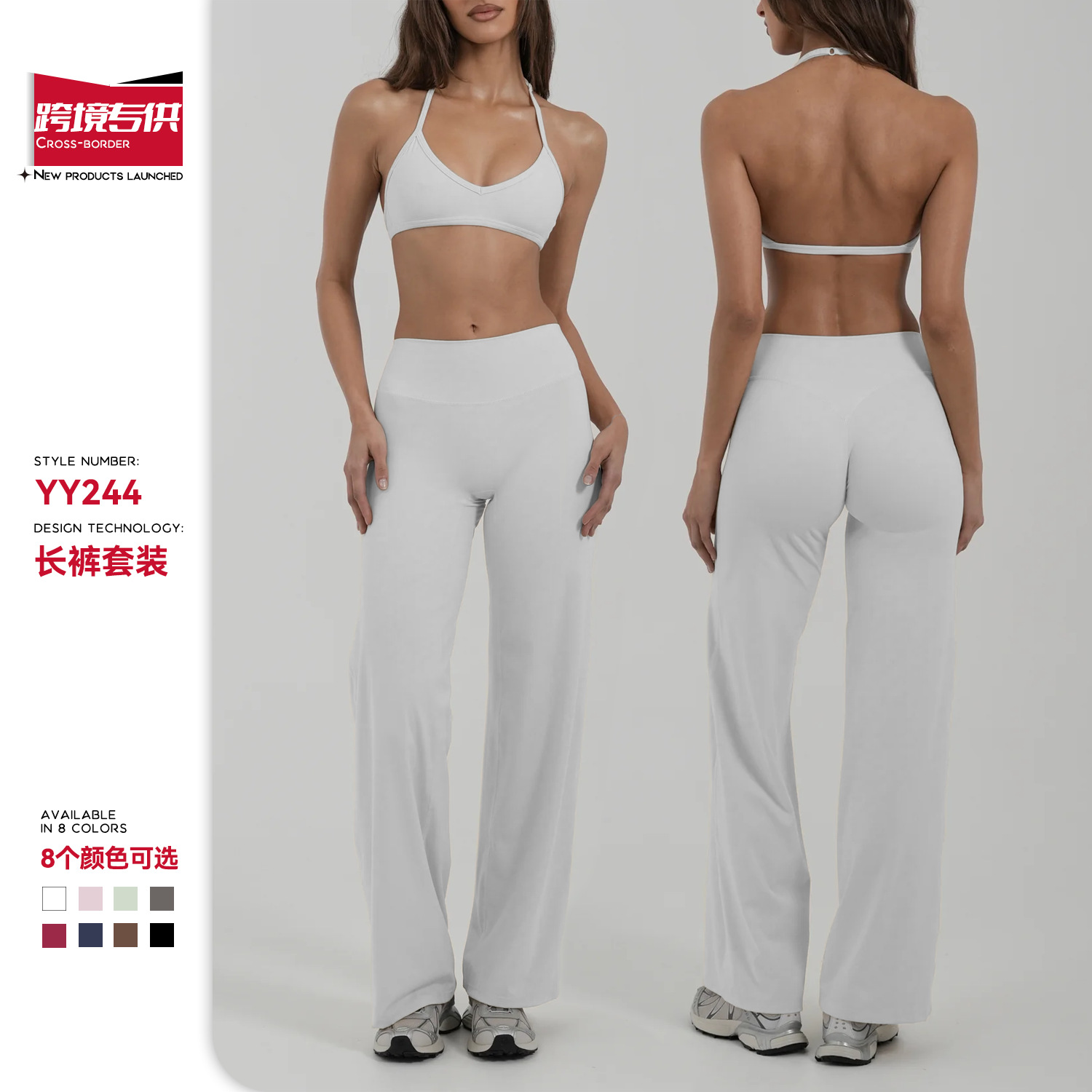 Трансграничный новый стиль, с бретелькой на шее, откровенное нижнее белье с эффектом пуш-ап, костюм для йоги, спортивные брюки для фитнеса, быстросохнущий комплект из двух предметов для пилатеса