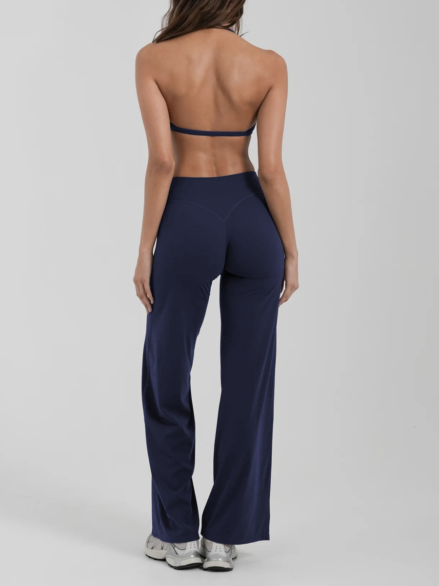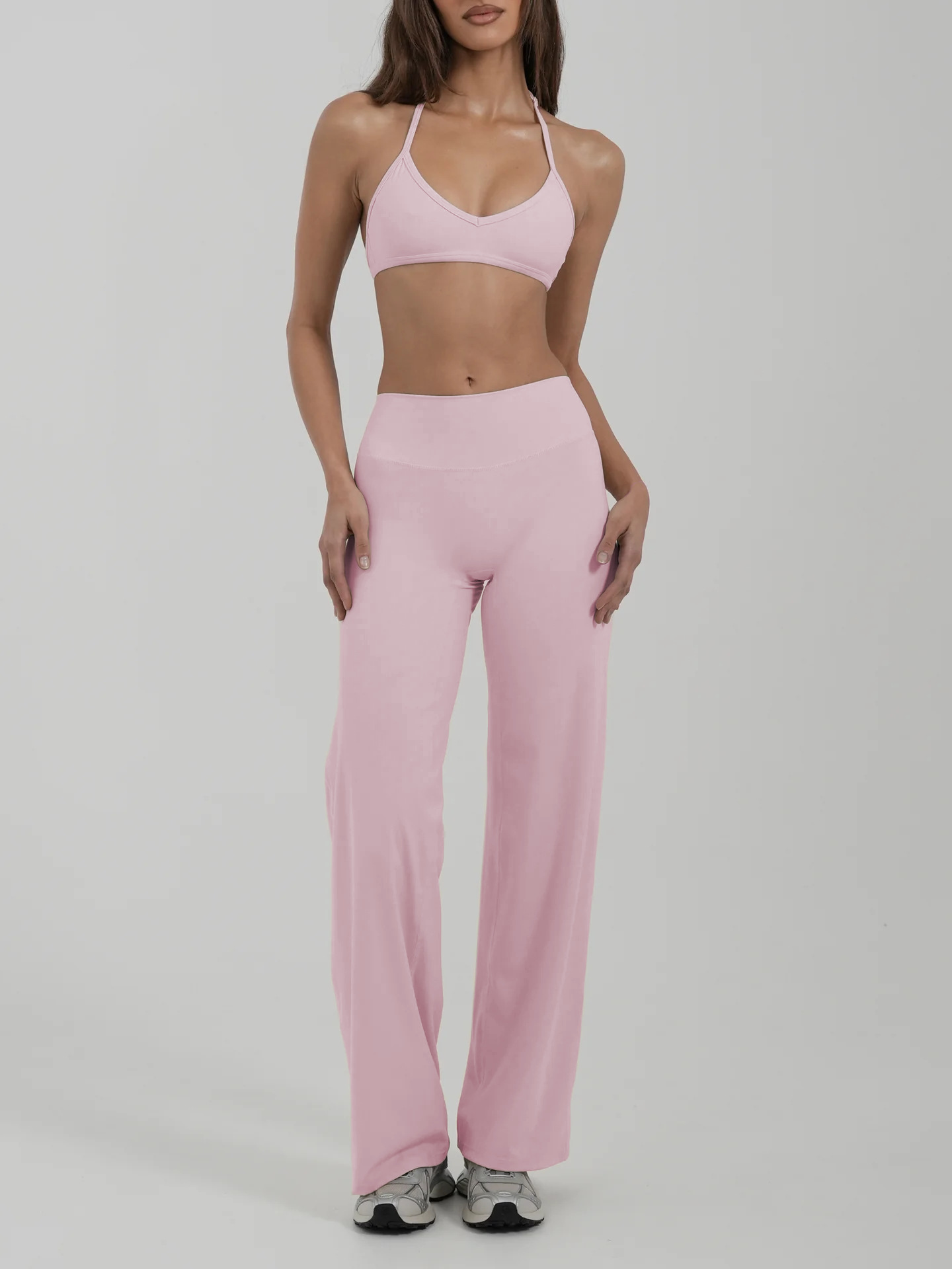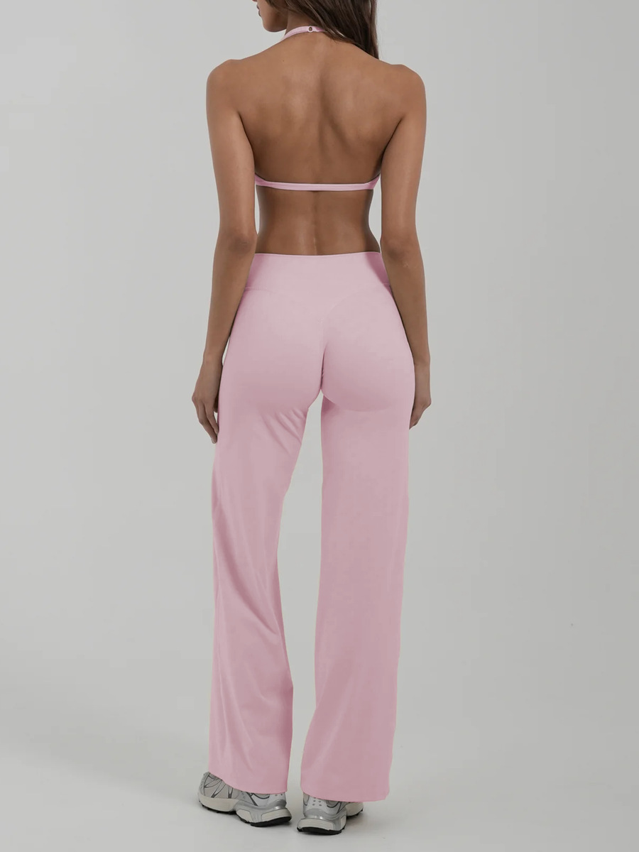 Трансграничный новый стиль, с бретелькой на шее, откровенное нижнее белье с эффектом пуш-ап, костюм для йоги, спортивные брюки для фитнеса, быстросохнущий комплект из двух предметов для пилатеса