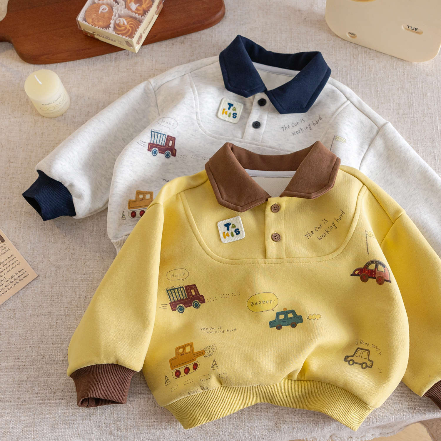 Детский свитшот с лацканами, весна-осень 2025, новые топы с воротником поло для мальчиков, детский осенний повседневный пуловер с длинными рукавами
