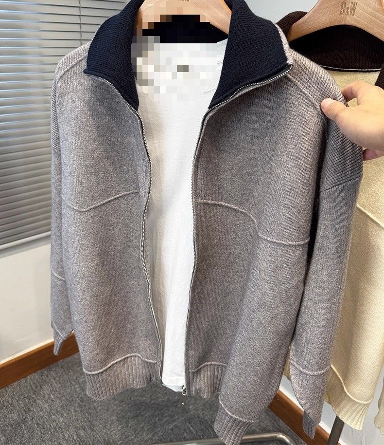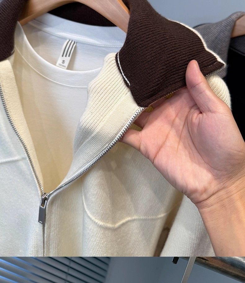 Осенне-зимний новый кардиган на молнии контрастного цвета, мужской удобный и универсальный повседневный свободный и стильный мужской пиджак