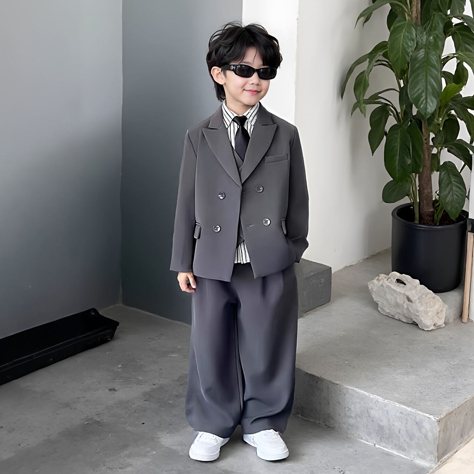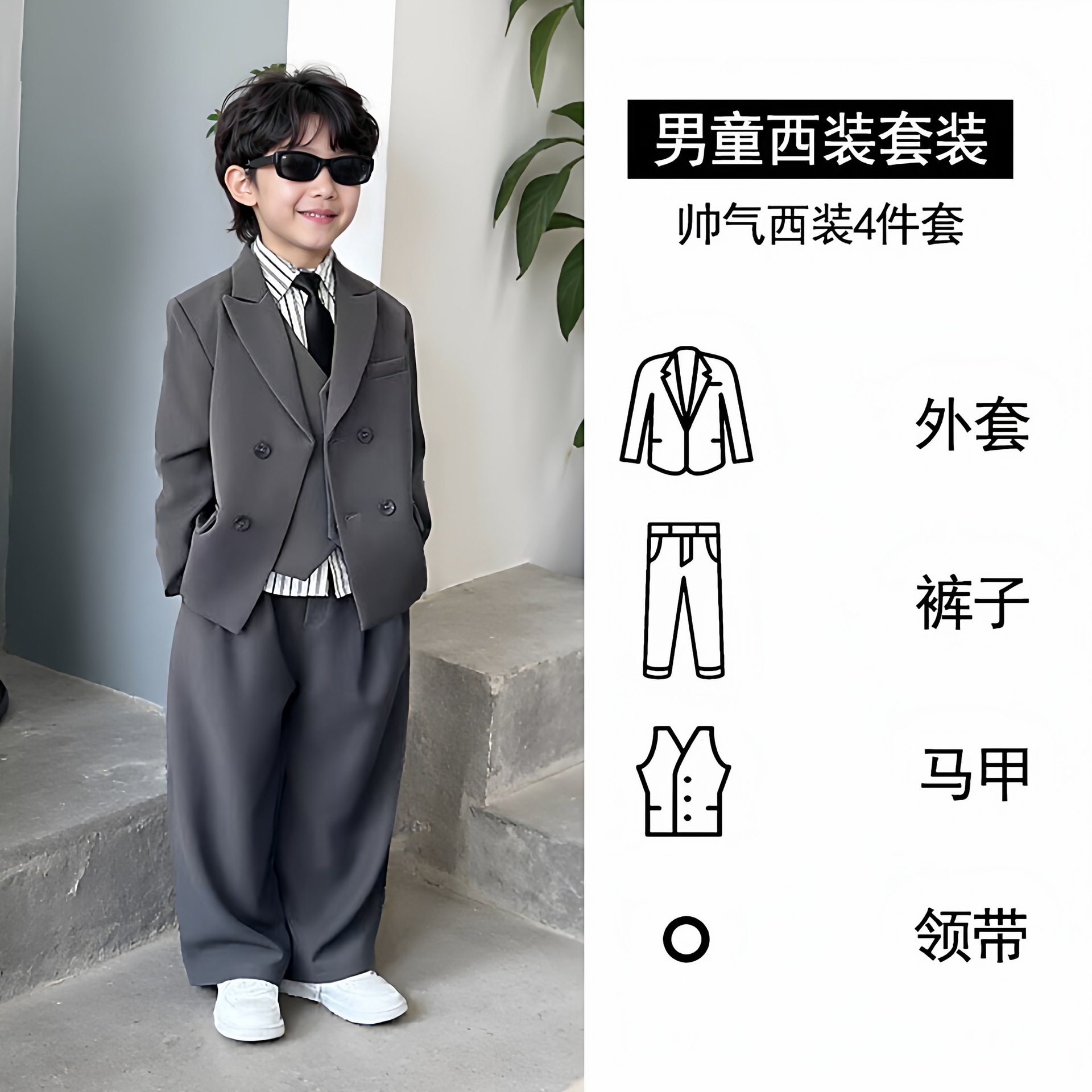 Стильный костюм для мальчика весна-осень 2025, пиджак для цветочного мальчика, наряд для первого дня рождения, официальная одежда для мальчика, ведущего, выступления на фортепиано, школьник