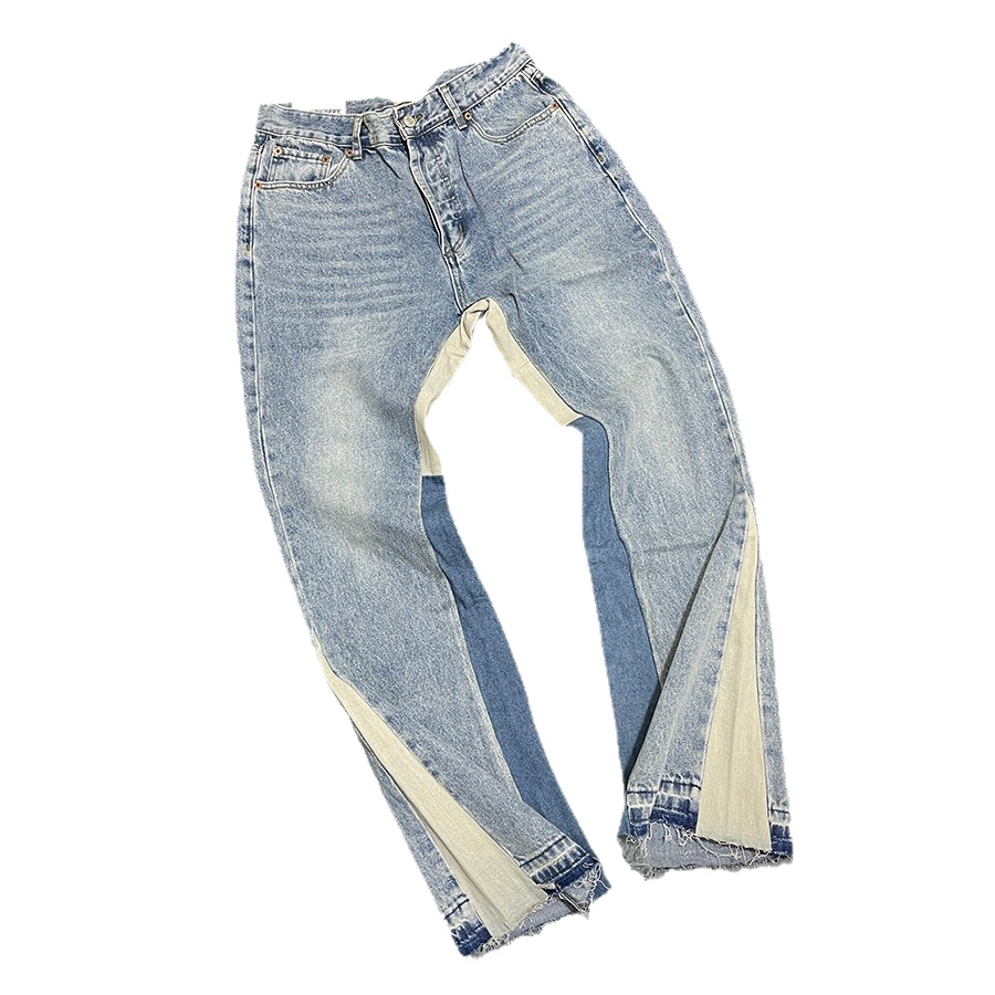Оптовые джинсы унисекс GA для трансграничной торговли: модные, брендовые, расклешенные, с эффектом потертости, в стиле пэчворк