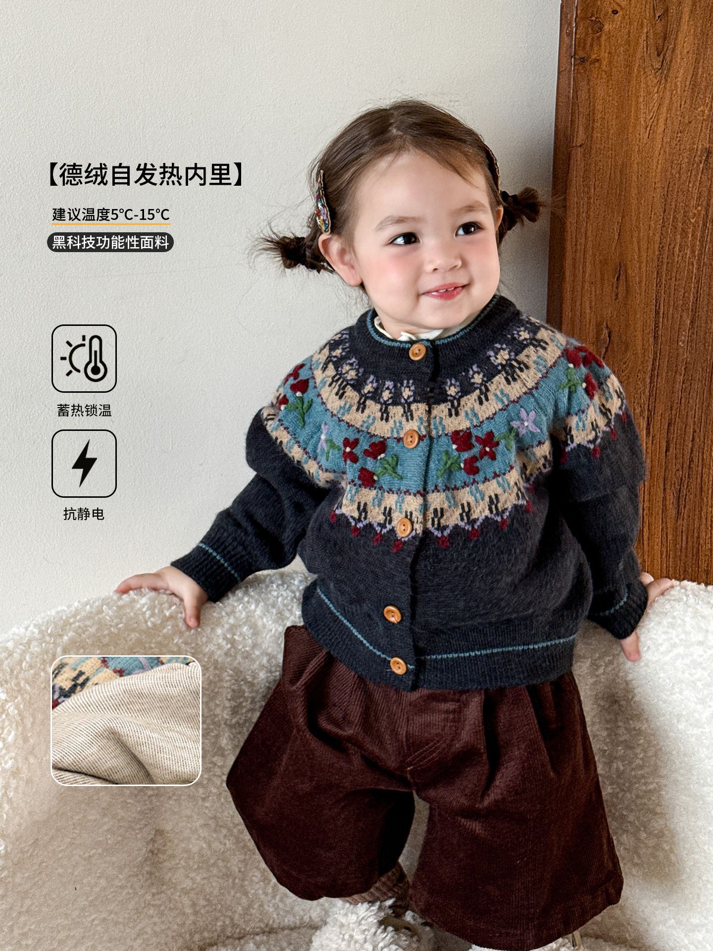 свитер с цветными блоками, кардиган; Коричневые шорты; Кардиган с цветными блоками (с флисовой подкладкой)