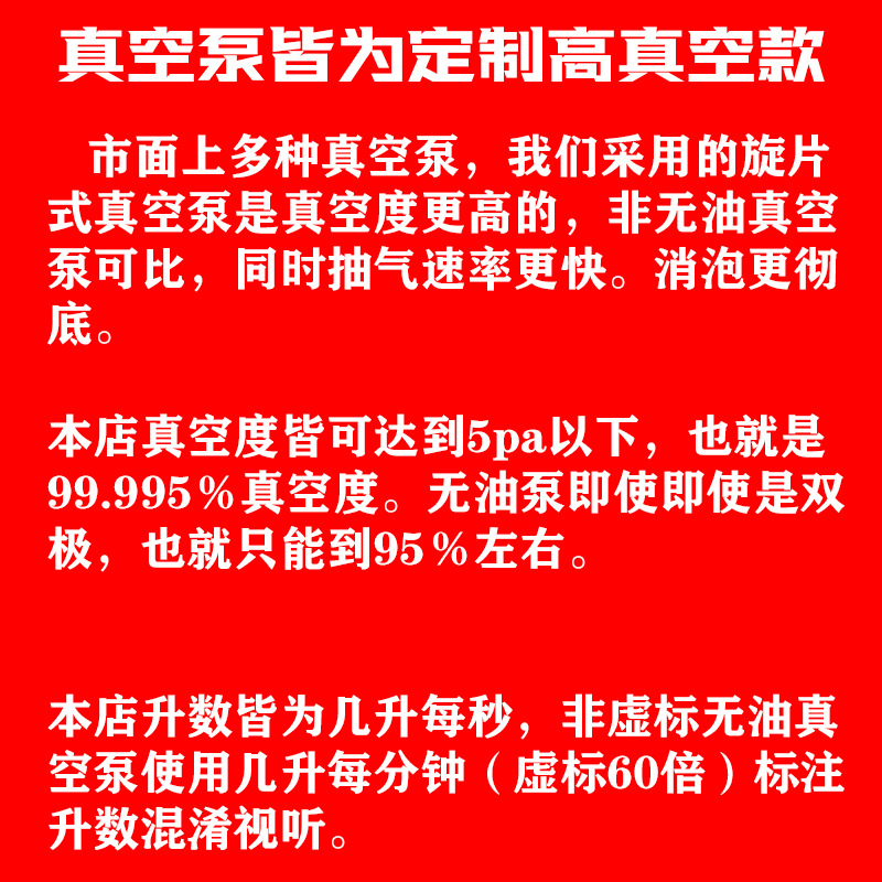 不用虚标无油泵骗人; 20x19走量款; 20×20cm特厚真空桶; 25×25cm特厚真空桶; 30×30cm特厚真空桶; 40x40cm特厚真空桶; 25x45cm特厚真空桶; 40x60cm特厚真空桶; 20cm桶+足标1升泵; 25cm桶+足标1升泵; 30cm桶+足标1升泵; 20cm桶+足标2升泵; 25cm桶+足标2升泵; 30cm桶+足标2升泵; 20cm桶+足标4升泵(常用款); 25cm桶+足标4升泵(常用款); 30cm桶+足标4升泵(常用款); 40cm桶+足标4升泵(常用款式); 20cm桶+足标8升泵 (工业级); 25cm桶+足标8升泵 (工业级); 30cm桶+足标8升泵(工业级); 40cm桶+足标8升泵 (工业级); 1升真空泵(足标升数不虚标); 2升真空泵(足标升数不虚标); 4升真空泵(足标升数不虚标); 8升真空泵 工业级 (足标升数不虚标)
