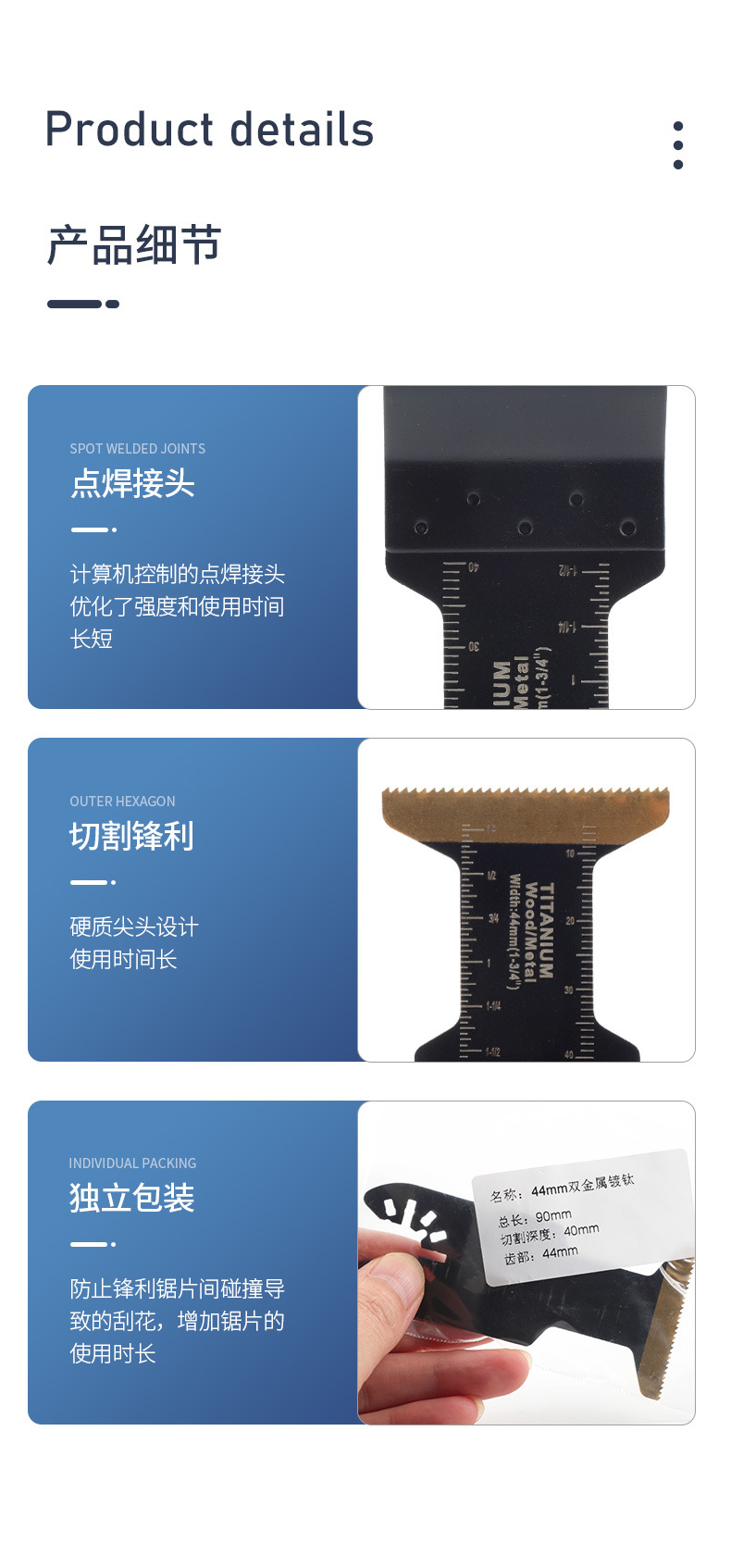34 мм прямое пильное полотно из высокоуглеродистой стали с УФ-печатью; 34 мм прецизионное прямое зубчатое пильное полотно с УФ-печатью; 34 мм биметаллическое прямое пильное полотно с УФ-печатью; Прямое пильное полотно из высокоуглеродистой стали диаметром 34 мм.; Прямой пильный диск из высокоуглеродистой стали толщиной 10 мм.; Прямой пильный диск из высокоуглеродистой стали, 20 мм; Одинарный крючок из высокоуглеродистой стали с двойными зубьями; Прецизионная пила с зубьями диаметром 34 мм.; Биметаллическое пильное полотно диаметром 34 мм.; Прямое пильное полотно из высокоуглеродистой стали диаметром 44 мм.; Прямое пильное полотно с прецизионным зубом 44 мм.; Биметаллическое пильное полотно диаметром 44 мм.; Биметаллическое пильное полотно толщиной 10 мм.; 10-мм удлинённое биметаллическое пильное полотно; Биметаллическое пильное полотно диаметром 20 мм.; Удлиненное биметаллическое полотно 34 мм.; Удлиненное биметаллическое пильное полотно диаметром 44 мм.; Удлиненное биметаллическое полотно 68 мм.; Прямое пильное полотно из высокоуглеродистой стали диаметром 68 мм.; Прямое пильное полотно с прецизионным зубом 68 мм.; 68 прямой пильный диск из высокоуглеродистой стали с зазубринами; Биметаллическое пильное полотно «ласточкин хвост» диаметром 68 мм.; 10-мм удлинённое пильное полотно из высокоуглеродистой стали; Удлиненное прямое пильное полотно из высокоуглеродистой стали диаметром 28 мм.; Удлиненное прямое пильное полотно из высокоуглеродистой стали диаметром 34 мм.; Удлиненное прямое пильное полотно из высокоуглеродистой стали диаметром 44 мм.; Прямое пильное полотно из высокоуглеродистой стали длиной 31 мм.; Прямоугольное пильное полотно из высокоуглеродистой стали длиной 34 мм; 40-мм удлинённое пильное полотно из высокоуглеродистой стали с прямым профилем; Удлиненное прямое пильное полотно из высокоуглеродистой стали диаметром 68 мм.; Прецизионная зубчатая пила длиной 34 мм.; Пильное полотно из нержавеющей стали диаметром 10 мм.; Пильное полотно из нержавеющей стали диаметром 20 мм.; Пильное полотно из нержавеющей стали диаметром 34 мм.; Пильное полотно с двойным зубом и двойным крюком из высокоуглеродистой стали; Биметаллическое титановое покрытие толщиной 10 мм.; 20 мм биметаллическое титановое покрытие; 34 мм биметаллическое титановое покрытие; 44 мм биметаллическое титановое покрытие; 68 мм биметаллическое титановое покрытие; Удлиненное биметаллическое титановое покрытие толщиной 44 мм.; Длина 40 мм, биметаллическое титановое покрытие.; Удлиненное биметаллическое титановое покрытие толщиной 68 мм.; Удлиненное биметаллическое титановое покрытие толщиной 28 мм.; Удлиненное биметаллическое титановое покрытие толщиной 34 мм.; Полукруглое биметаллическое полотно диаметром 88 мм.; карбид вольфрамовой стали толщиной 34 мм.; Полукруглое пильное полотно из высокоуглеродистой стали диаметром 88 мм.; Полукруглое пильное полотно из высокоуглеродистой стали диаметром 88 мм.; Полукруглое пильное полотно из высокоуглеродистой стали диаметром 80 мм.; Полукруглое биметаллическое пильное полотно диаметром 88 мм.; 51 лезвие из нержавеющей стали; 51 скребок из нержавеющей стали; Крючок из высокоуглеродистой стали диаметром 34 мм.; Трехстороннее лезвие из нержавеющей стали.; Трехсторонний острый нож из нержавеющей стали.; Лезвие из высокоуглеродистой стали диаметром 51 м