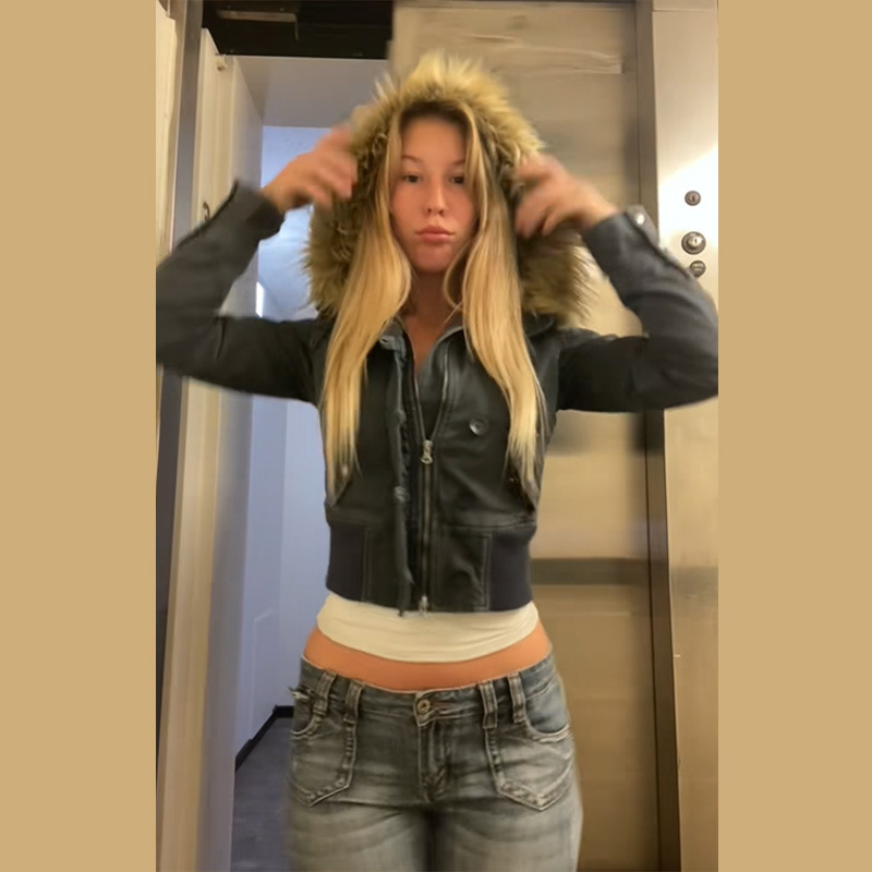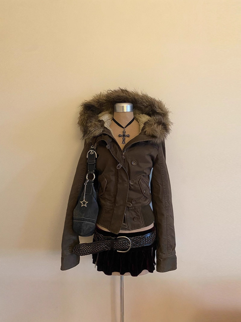 可拆卸毛领短款牛仔口袋外套+毛毛里衬-蓝色; 可拆卸毛领短款牛仔口袋外套+毛毛里衬-棕色; 可拆卸毛领短款连体帽夹克-褐色; 可拆卸毛领短款连体帽夹克-棕色; 可拆卸毛领短款连体帽夹克-蓝色; 可拆卸毛领短款连体帽夹克-白色