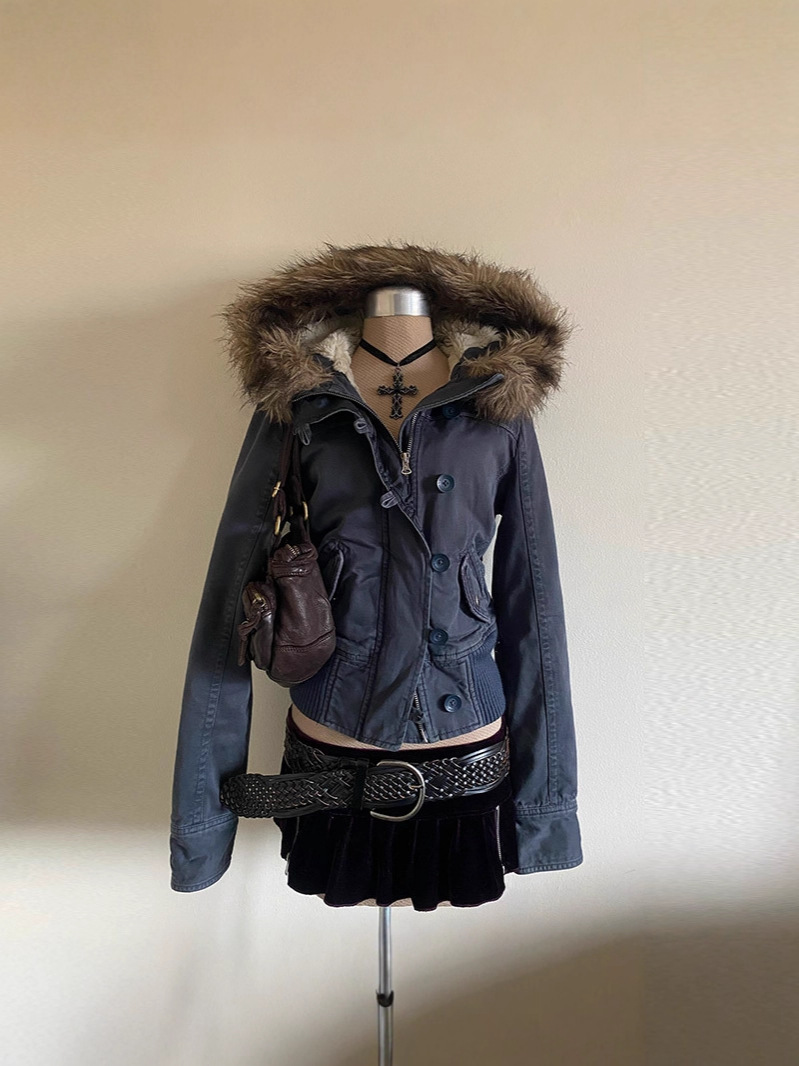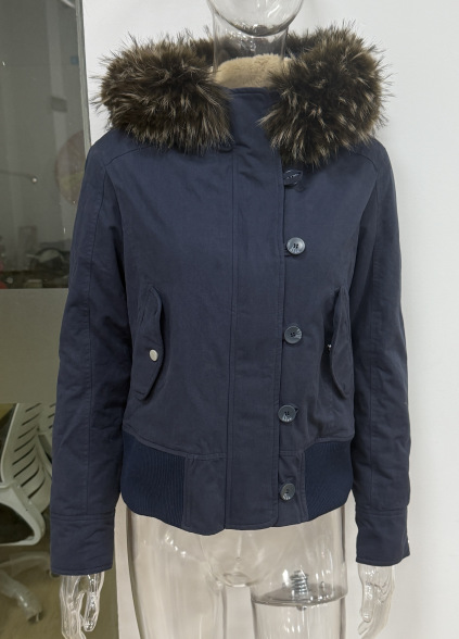 2025跨境秋冬季新款美式复古休闲百搭时尚可拆卸毛领短款牛仔口袋