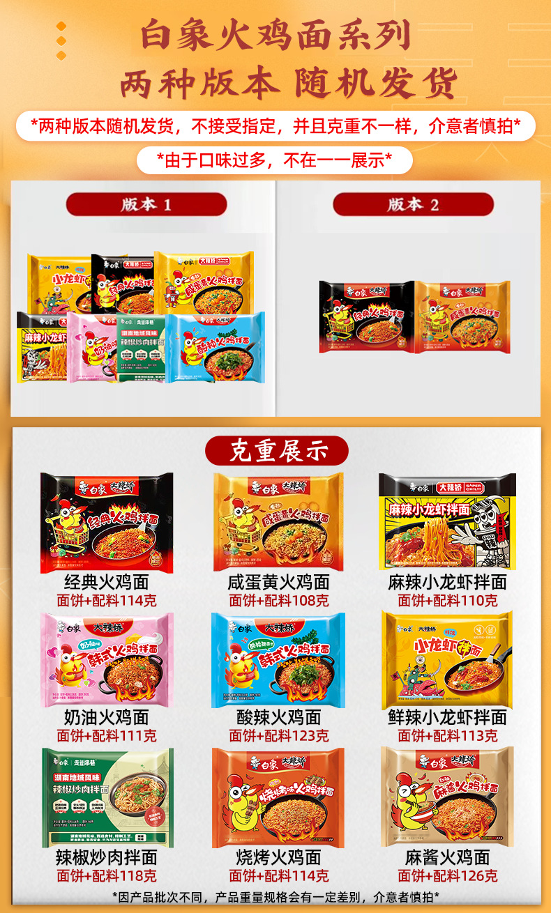 【Турецкая лапша с белым слоном】Оригинальная классика; 【Турецкая лапша с белым слоном】Кремовый вкус; 【Турецкая лапша с белым слоном】Соленый яичный желток; 【Турецкая лапша с белым слоном】Острая рака; 【Турецкая лапша с белым слоном】Свежие пряные раки; 【Турецкая лапша с белым слоном】Острая и кислая корейская нотка; 【Турецкая лапша с белым слоном】Красный кунжутный соус