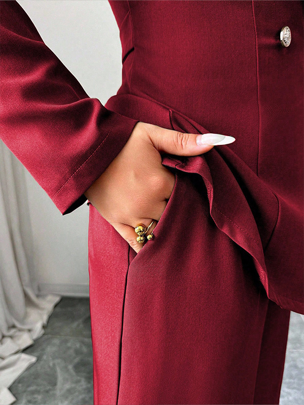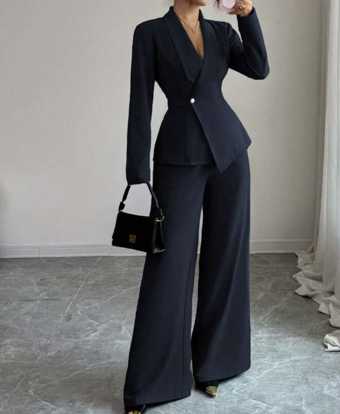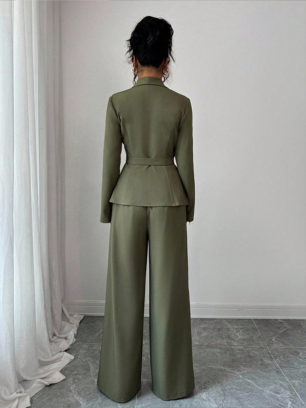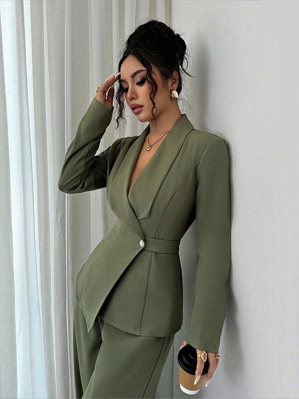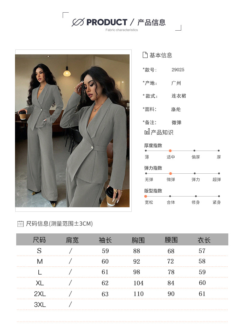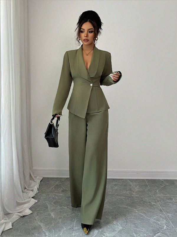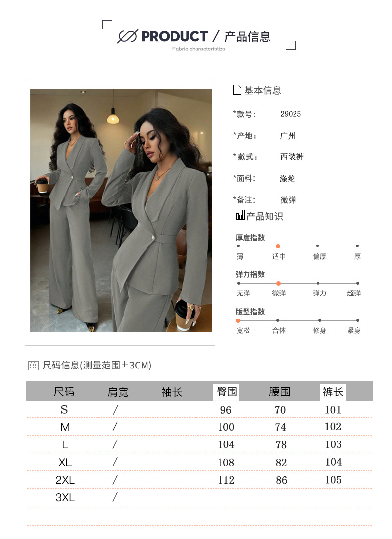 2025秋款跨境欧美女士套装气质时尚长袖西装外套直筒裤上下两件套