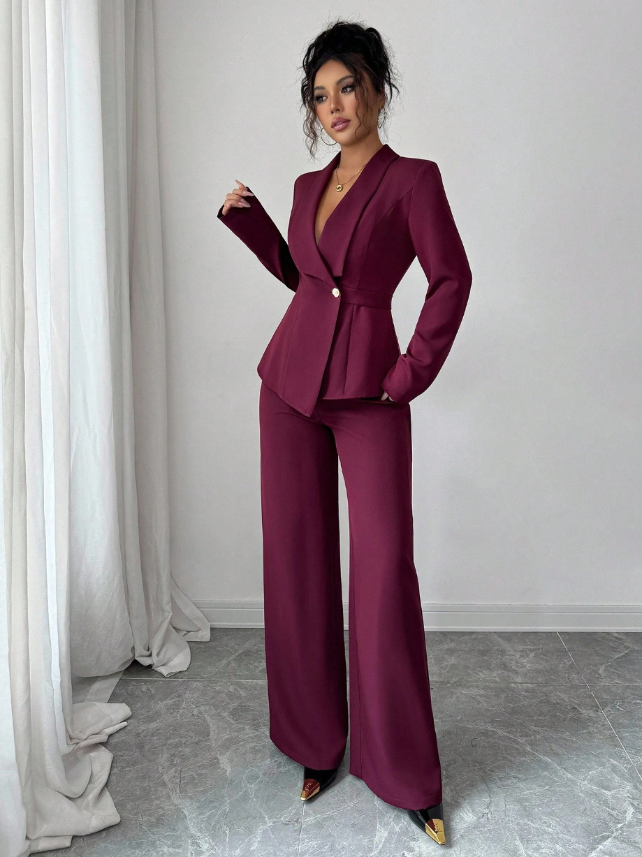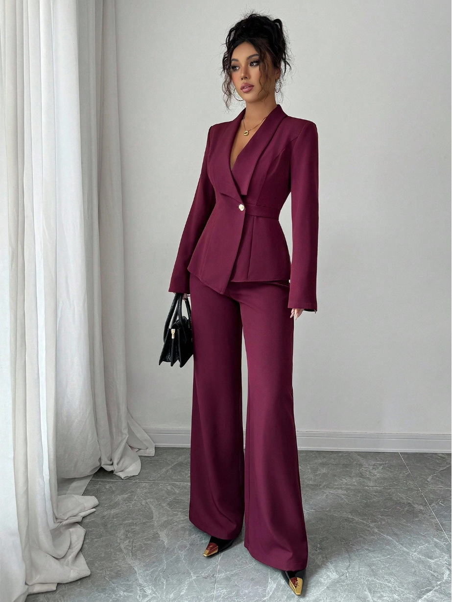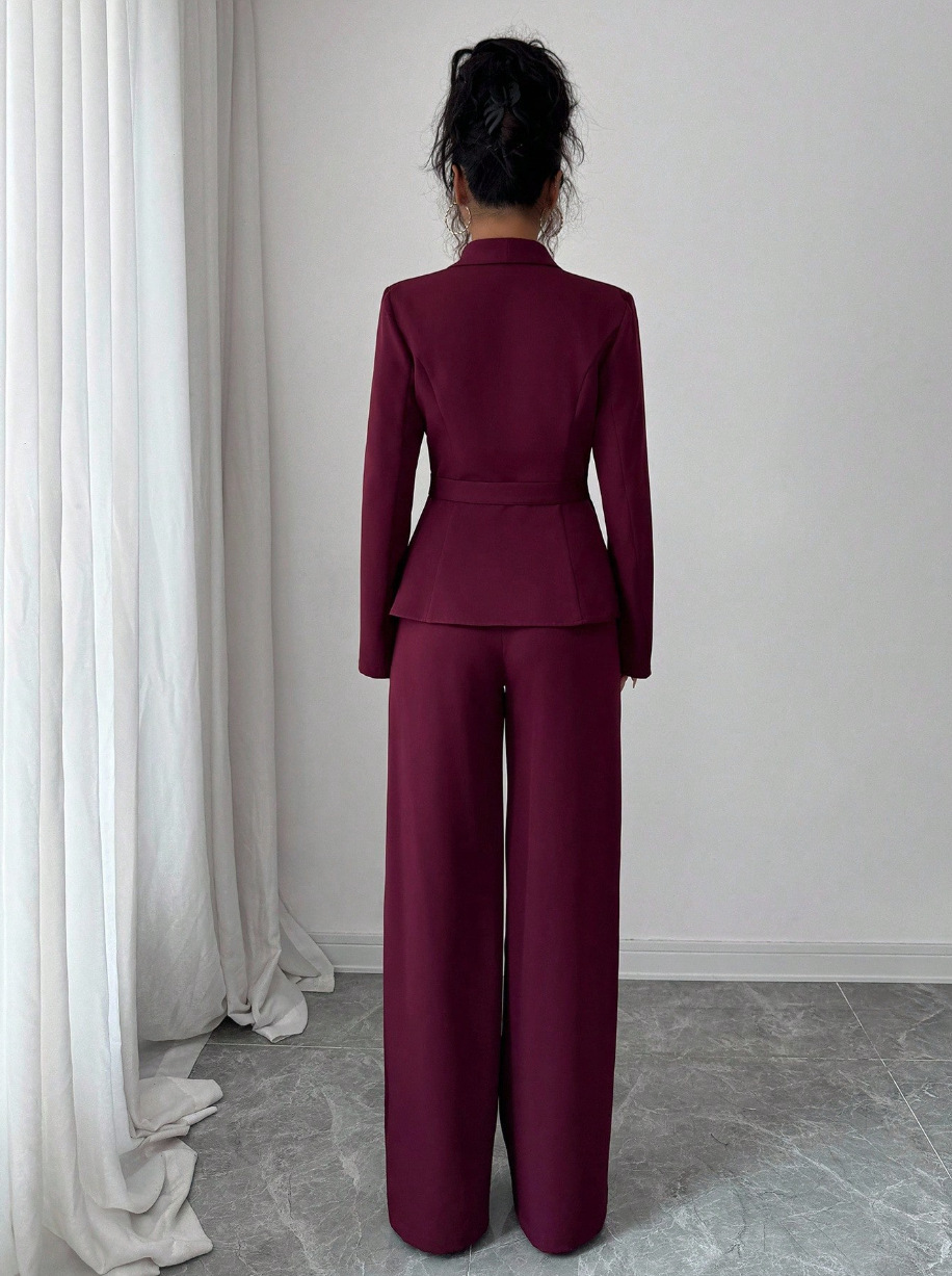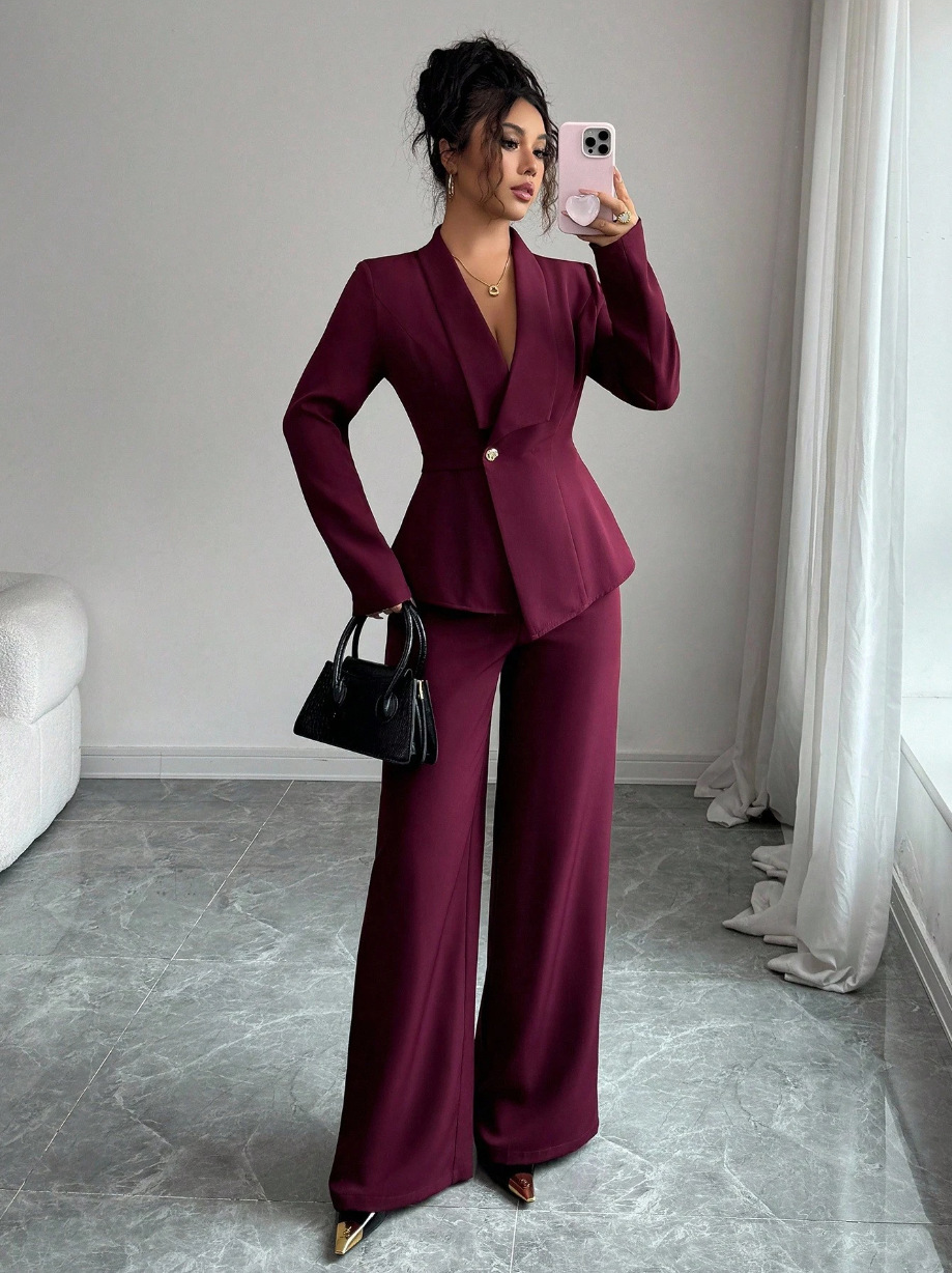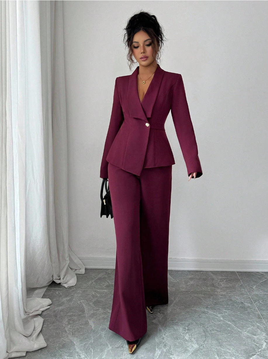 2025秋款跨境欧美女士套装气质时尚长袖西装外套直筒裤上下两件套