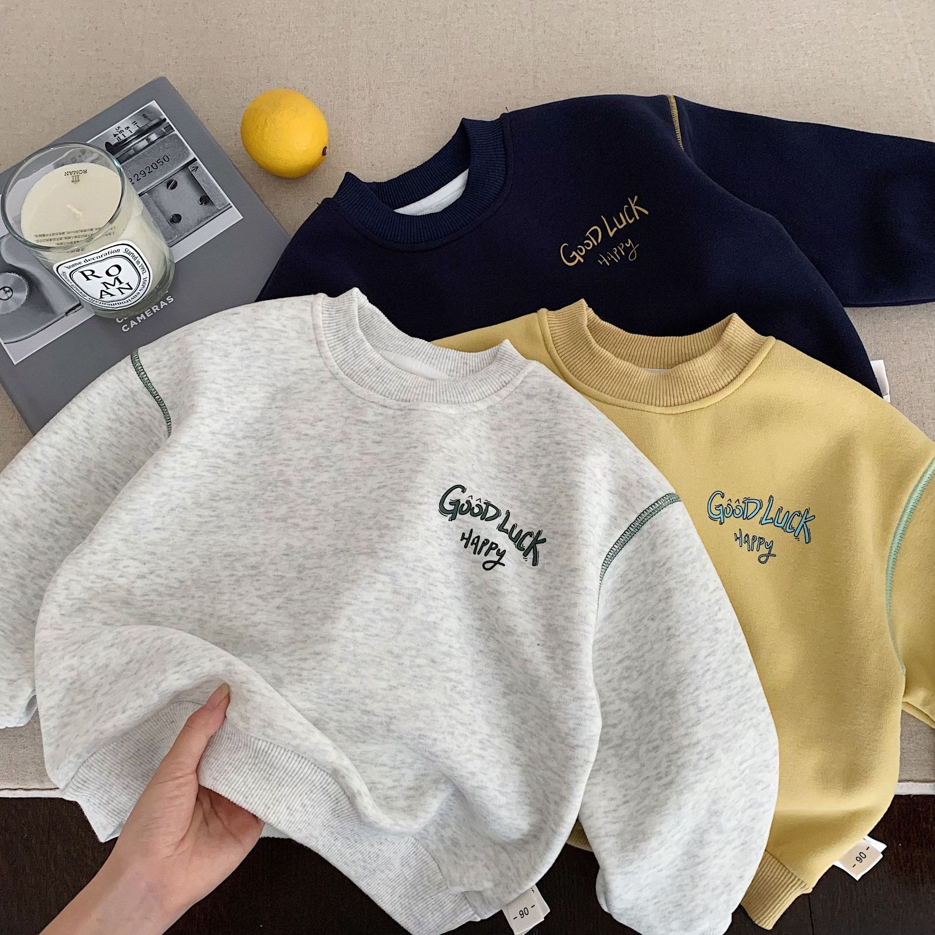 邦诚儿童冬装卫衣2025新款韩版男女童字母套头加绒打底衫宝宝衣服