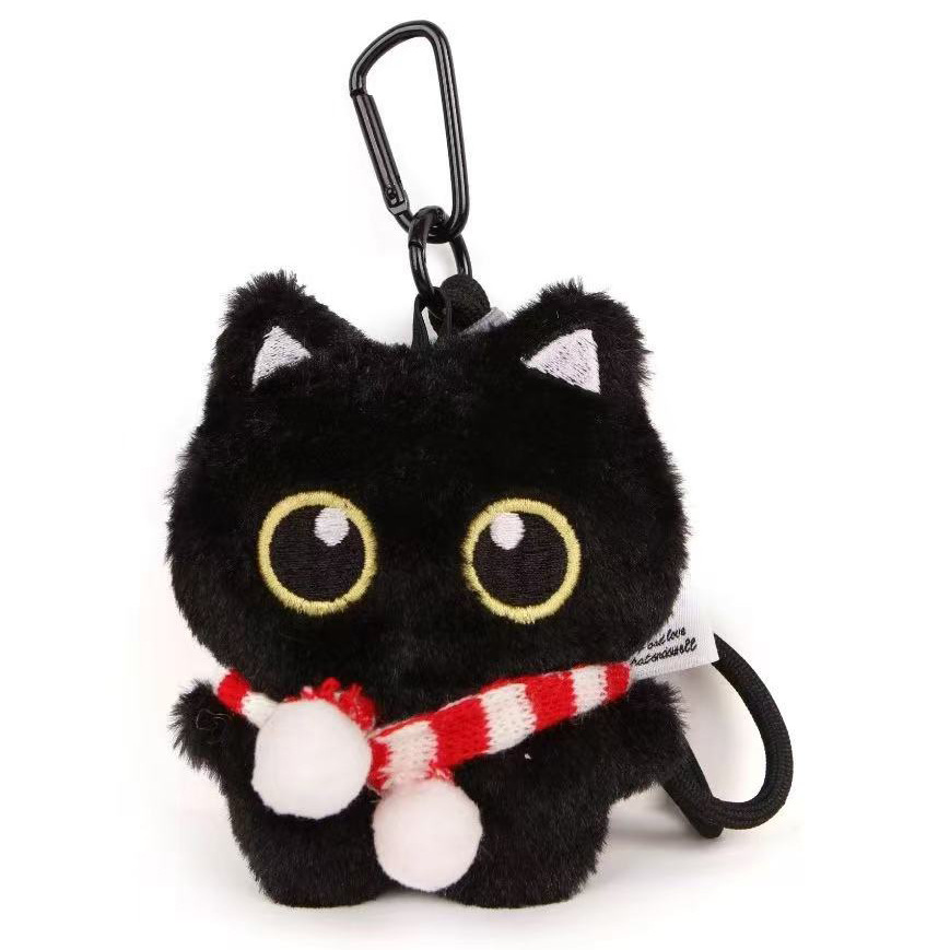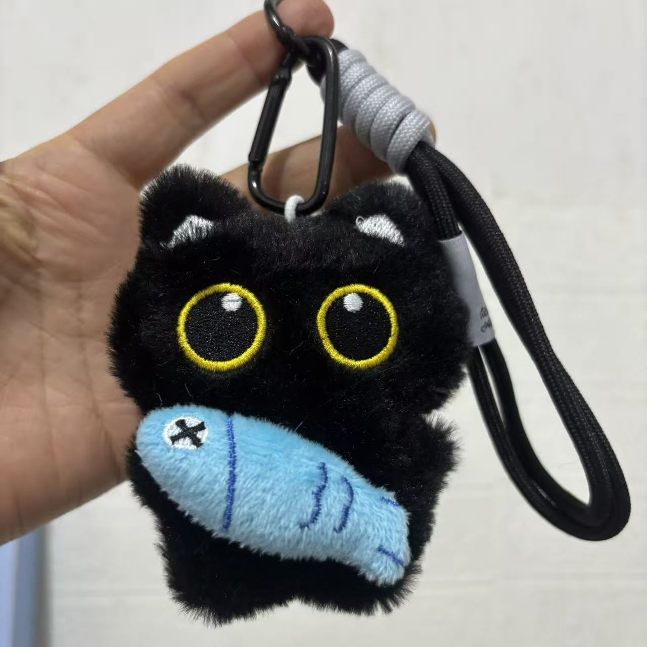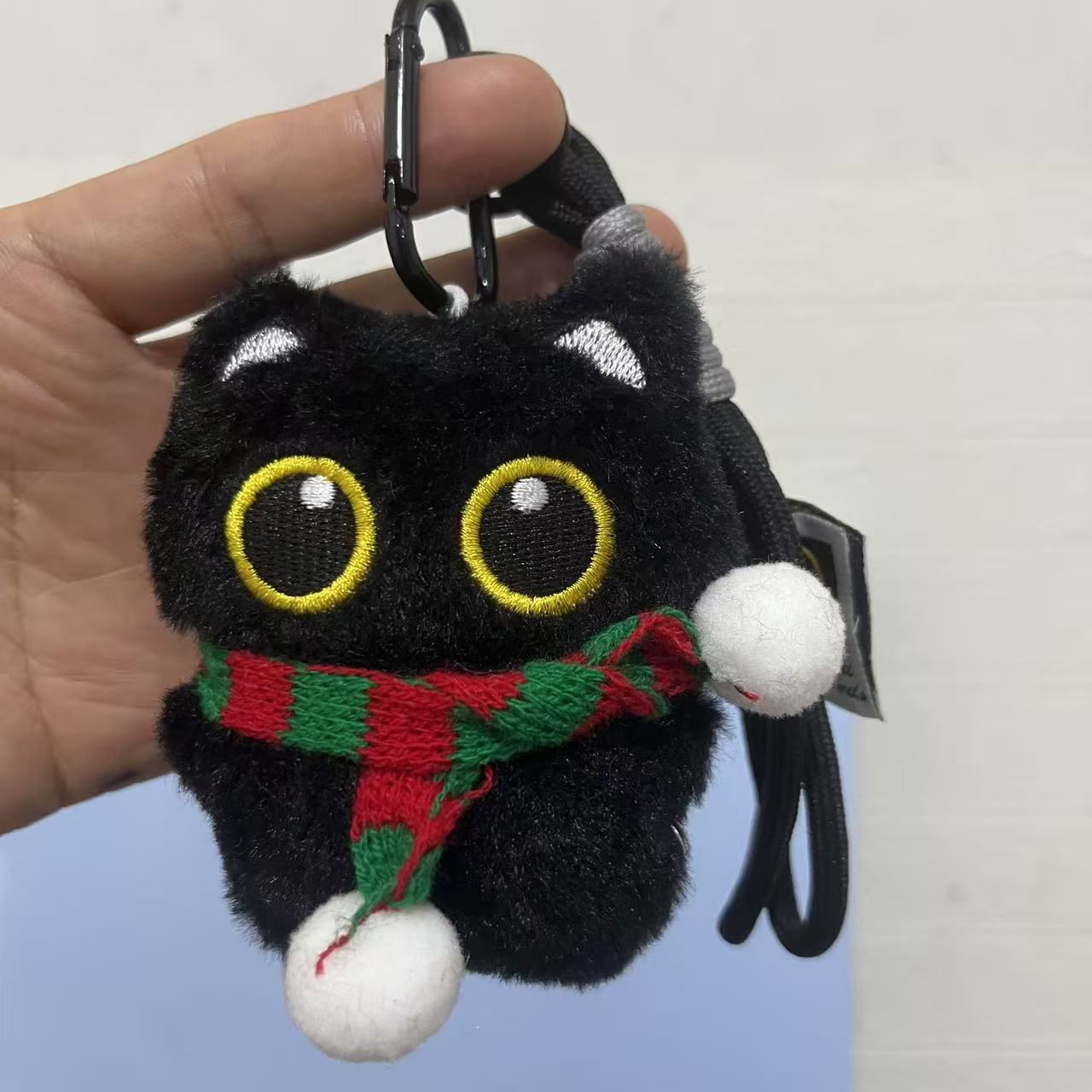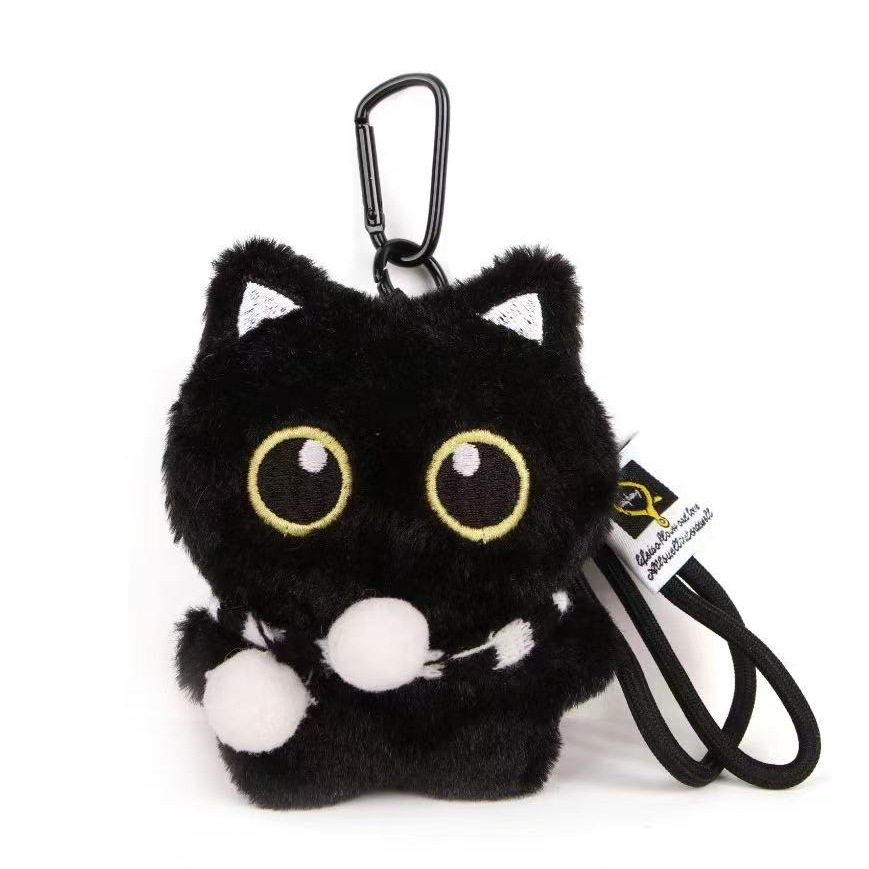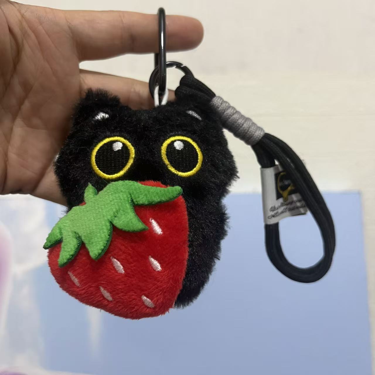 Новый милый и крутой подвесной кулон с клубникой и маленьким черным котом, милый плюшевый брелок для куклы, подвеска для куклы, подвеска для школьной сумки для студентов