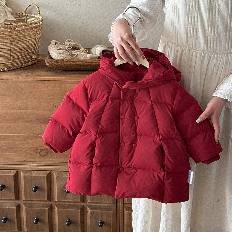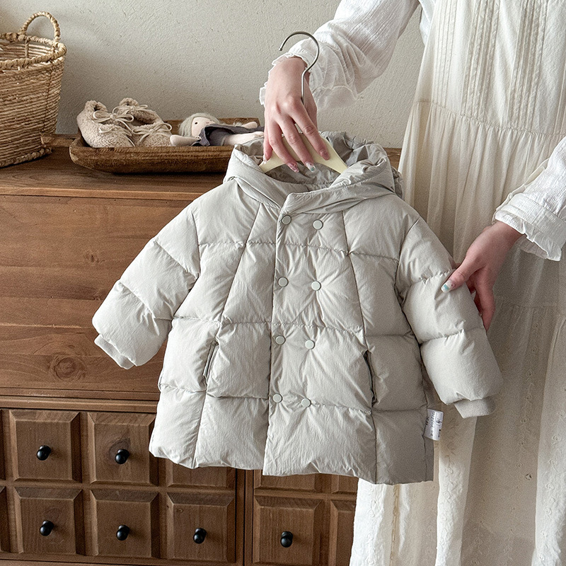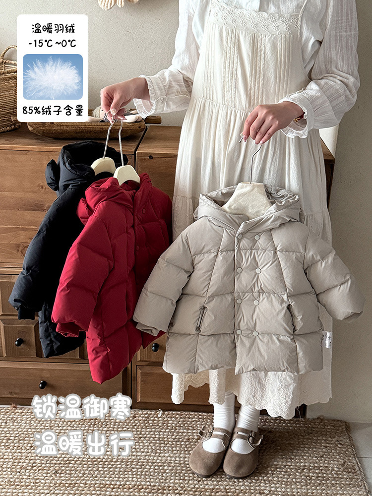 宝宝羽绒服2025冬季新款 a类婴儿外出服女童连帽外套中长款白鸭绒