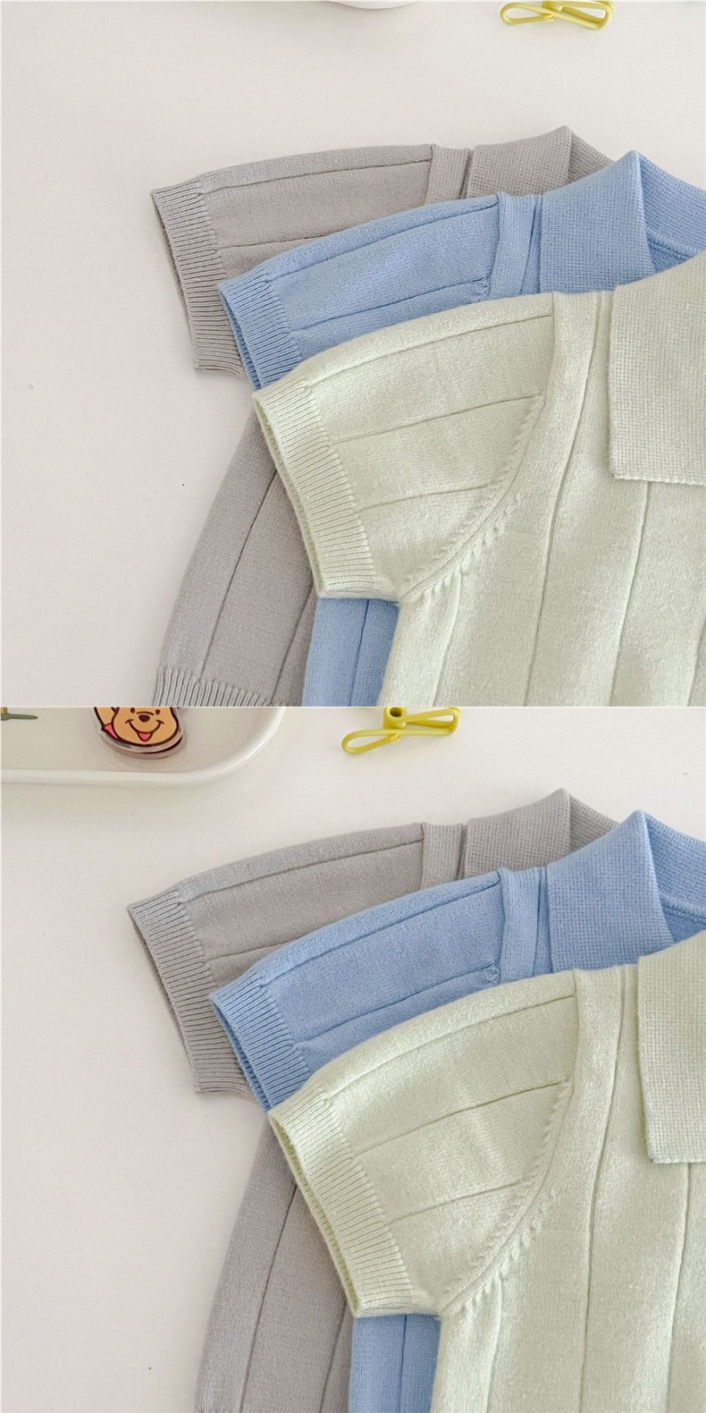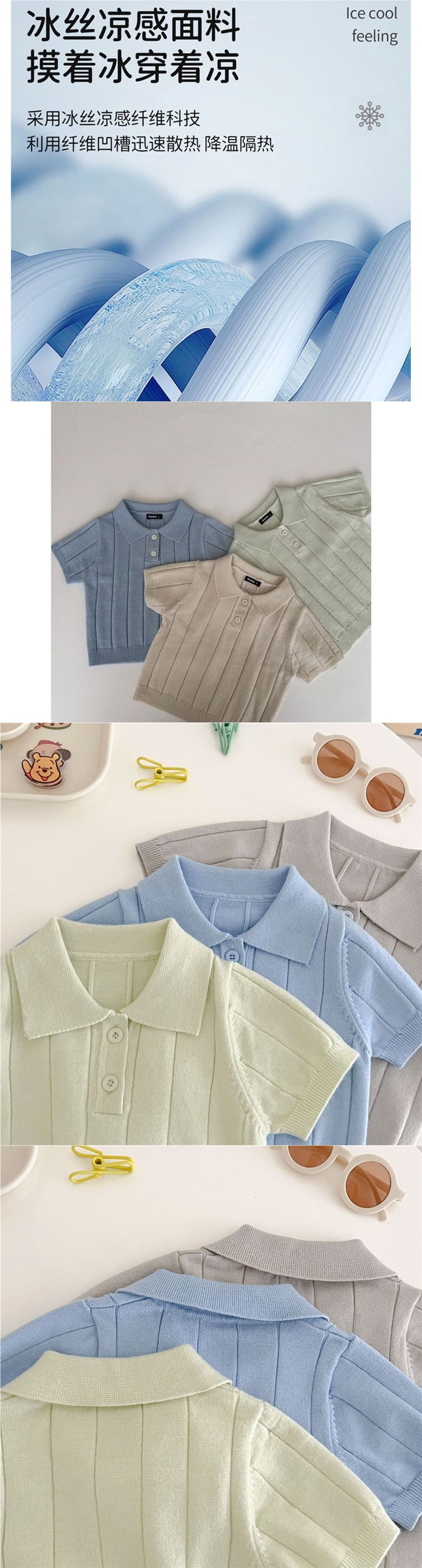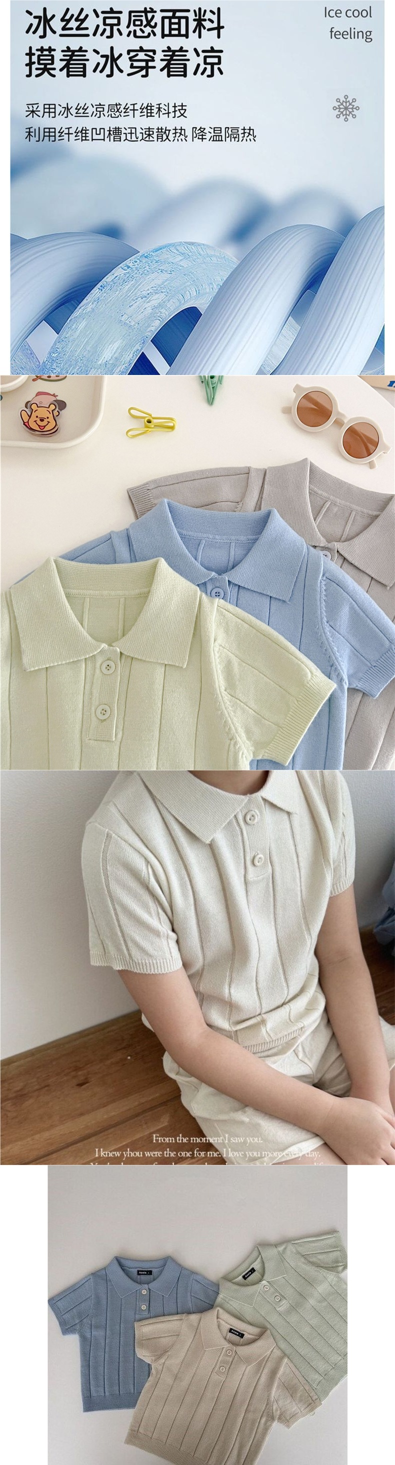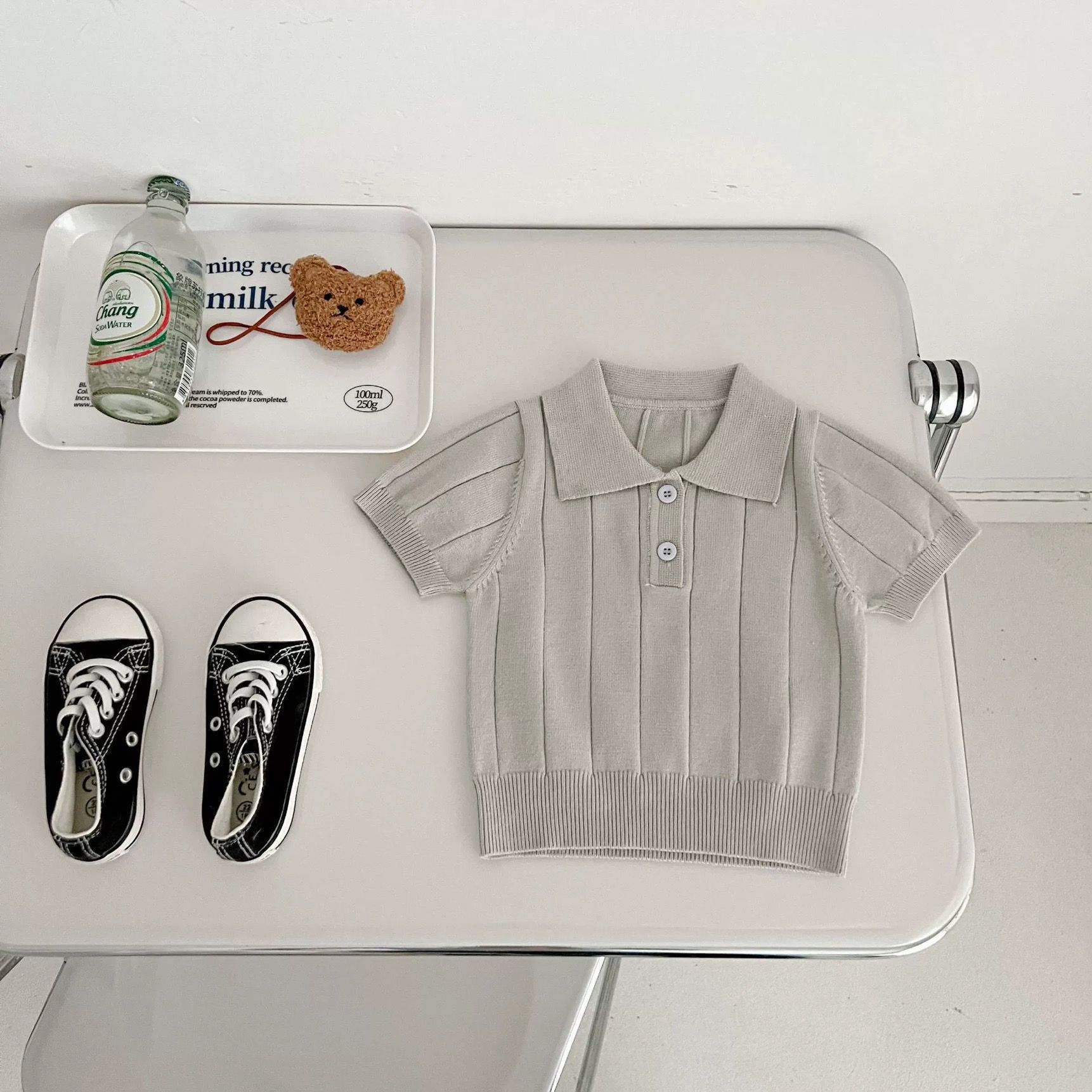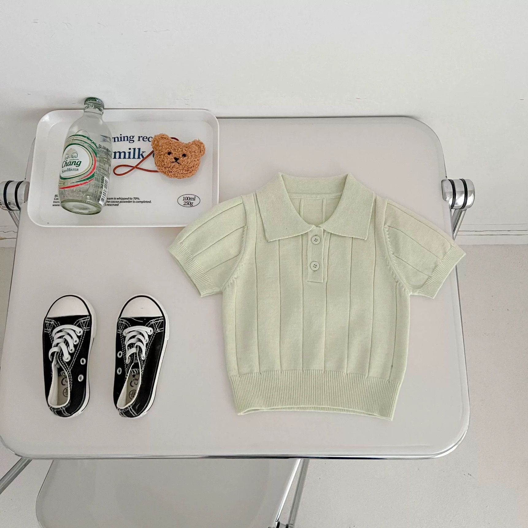 Корейский стиль весенне-летний детский трикотаж тонкий летний топ с отворотом детский пуловер