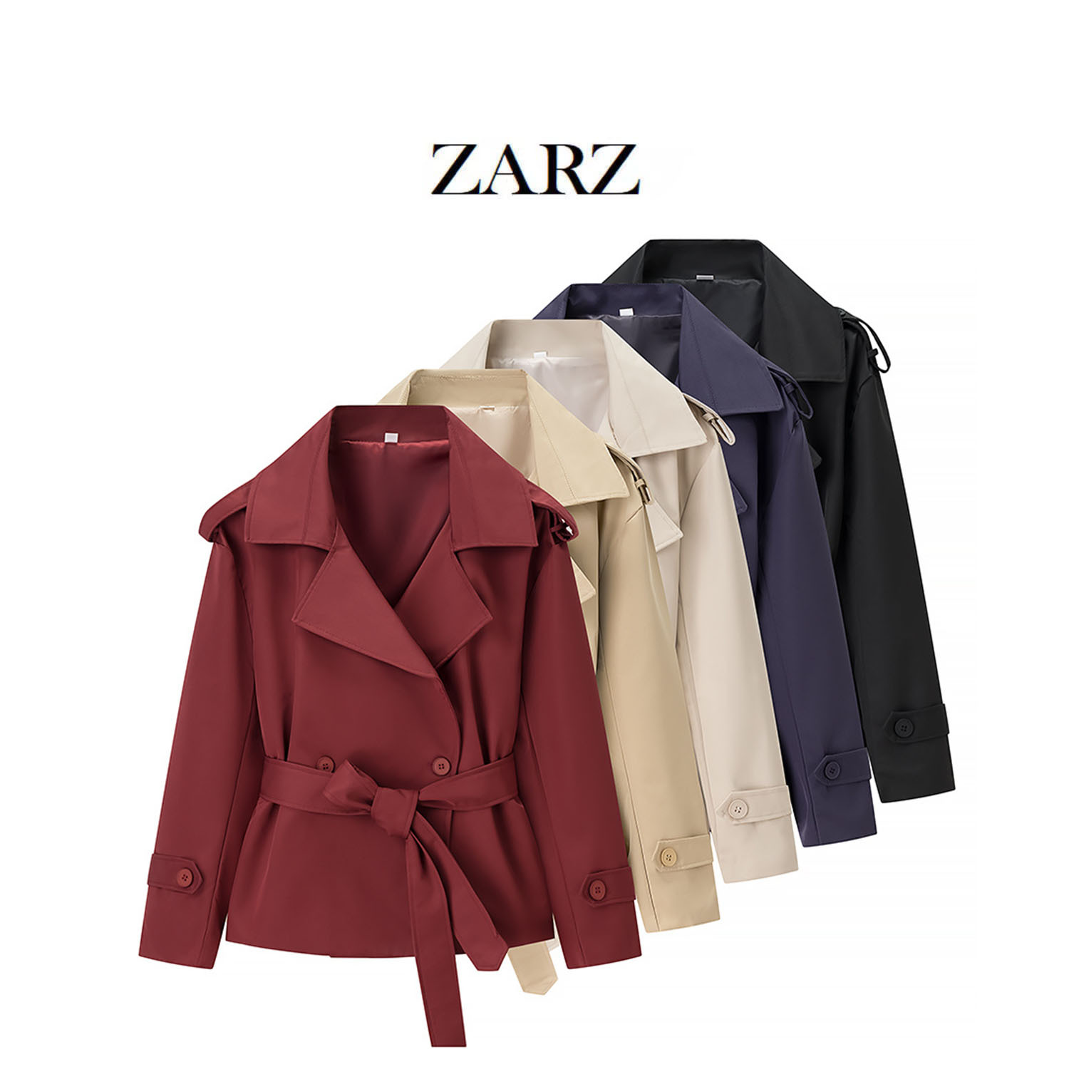 ZARZ домашняя новая женская одежда в европейском и американском стиле, модная повседневная универсальная короткая куртка с поясом чистого цвета