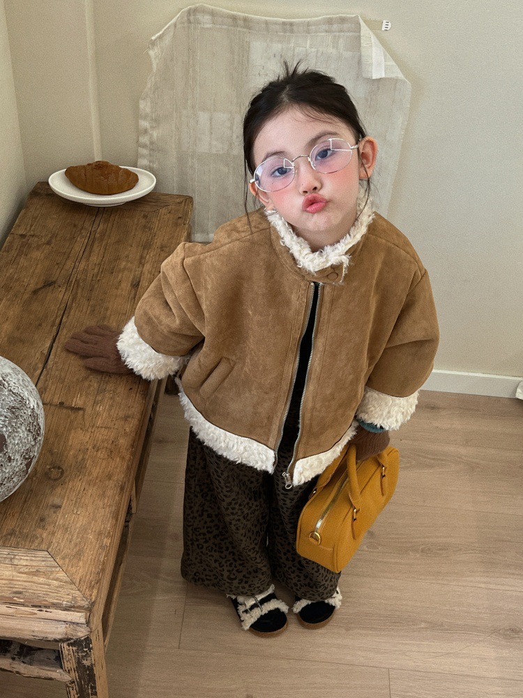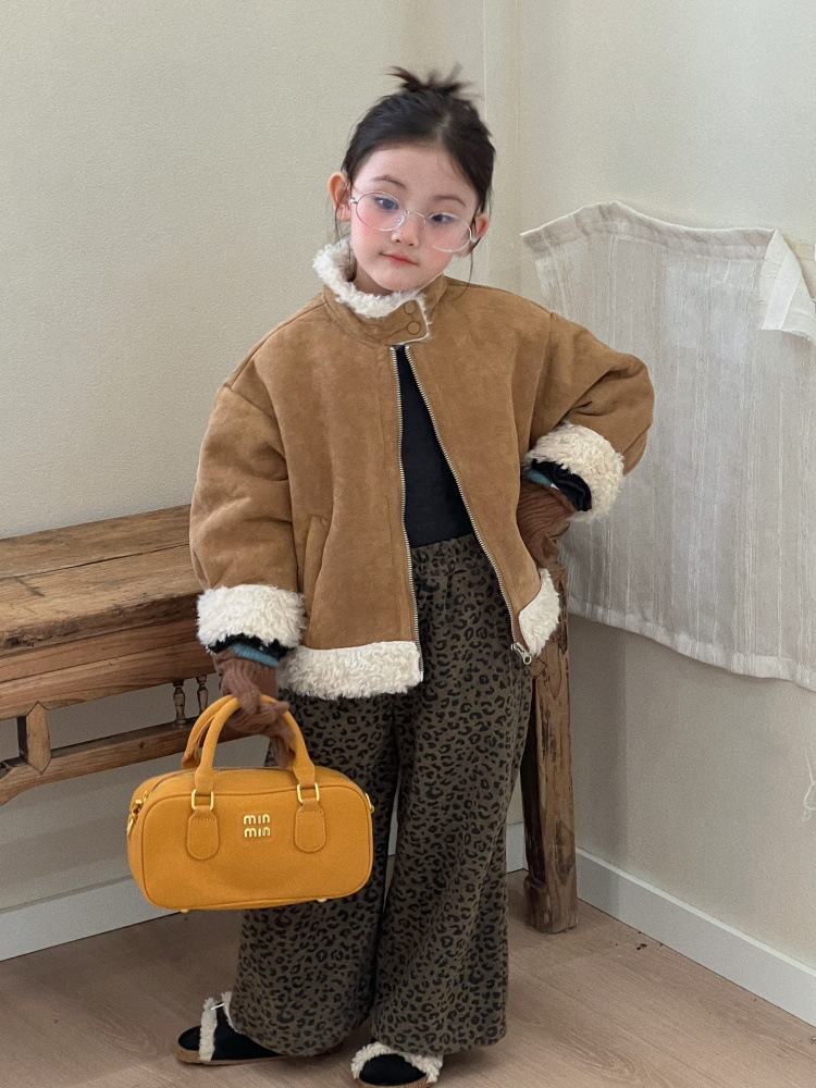童外套2025冬季新款女童韩系鹿皮绒皮毛一体立领短款慵懒风机车服