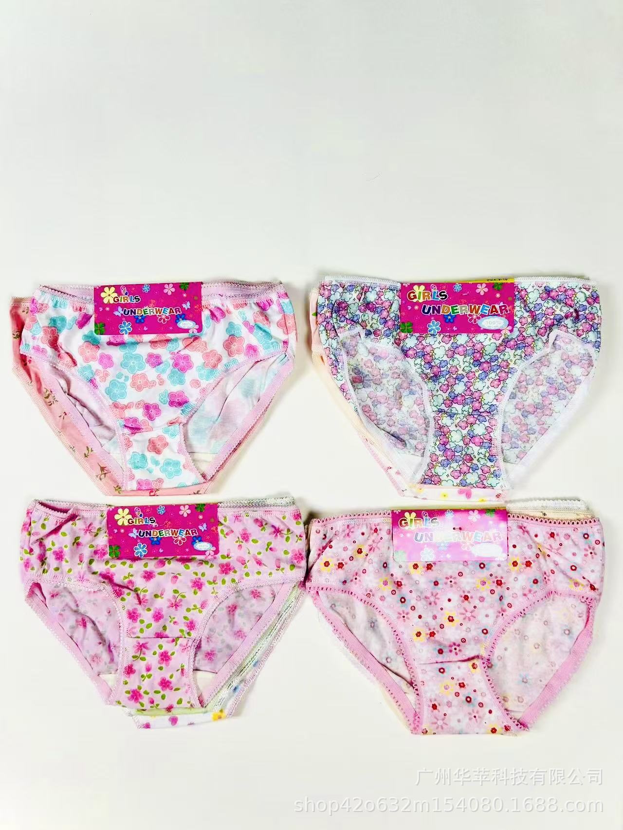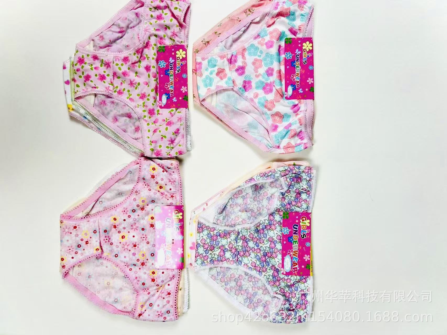 Детские трусики для девочек, маленькие хлопковые трусики-треугольники с цветочным принтом, класс А, прямые продажи от производителя, экспорт для маленьких и средних детей.