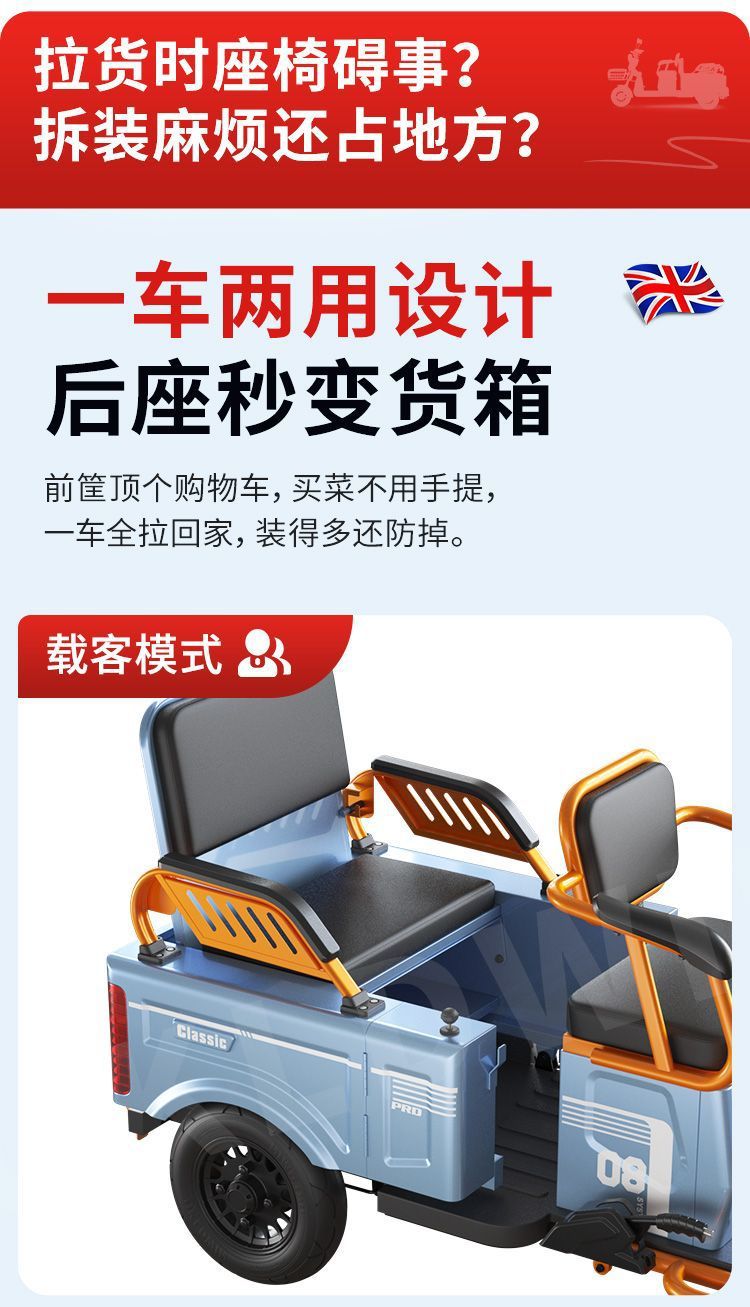 Мини-автобус, электрический трехколесный велосипед, новая модель для пожилых людей, электрический трехколесный велосипед, аккумуляторный автомобиль для домашнего использования, для подвоза детей, пассажиров и грузов, двойного назначения