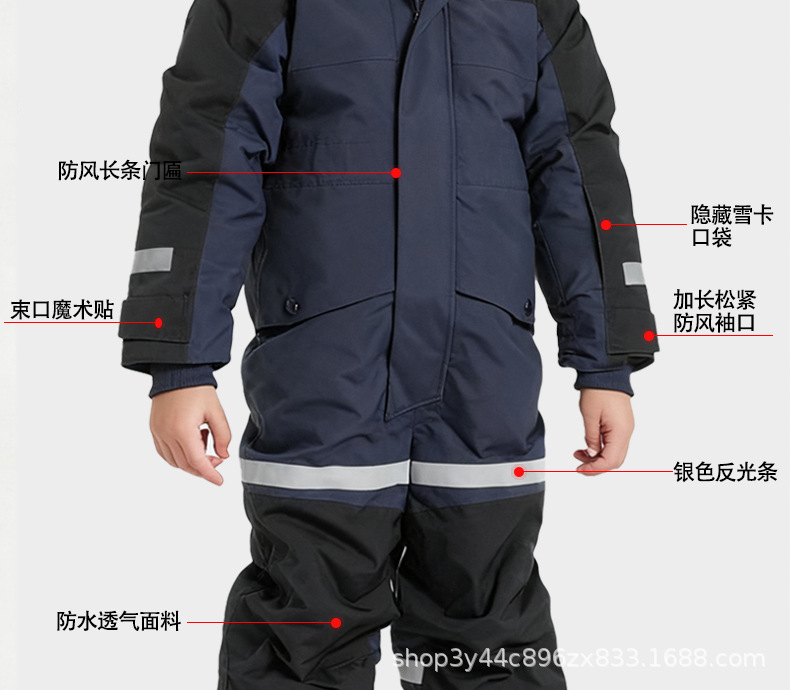 新品现货厂家直销外贸跨境户外连体滑雪服防水加绒加厚保暖男女童