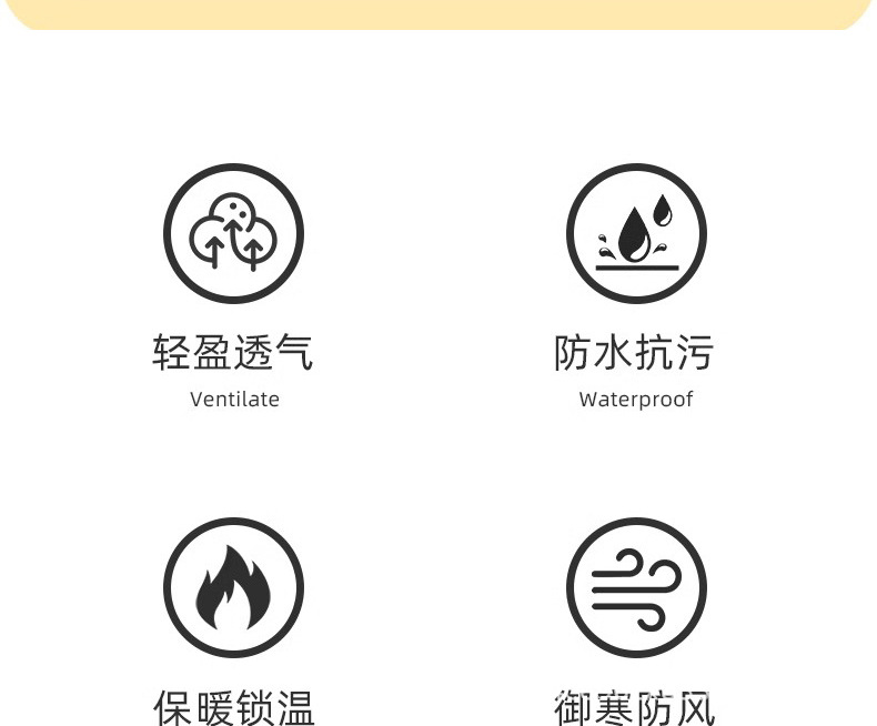 防水; 保暖; 耐磨; 防风; 反光夜视; 防污防水