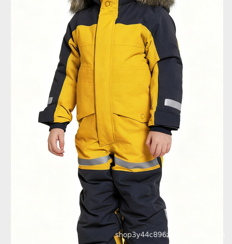 Новые товары на складе, прямые продажи с фабрики, трансграничные внешнеторговые цельные лыжные костюмы для улицы, водонепроницаемые, бархатные, утолщенные и теплые для мальчиков и девочек.