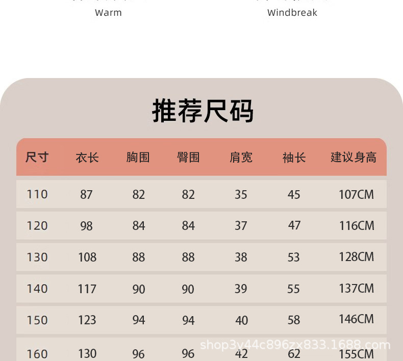 110cm(建议身高107cm); 120cm(建议身高116cm); 130cm(建议身高128cm); 140cm(建议身高137cm); 150cm(建议身高146cm); 160cm(建议身高155cm)