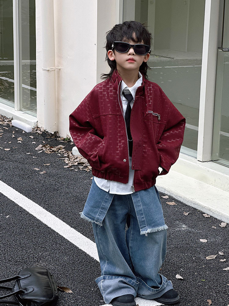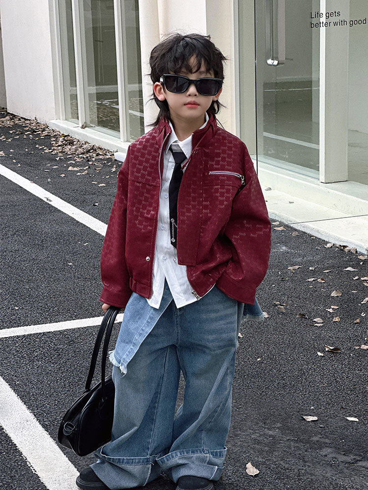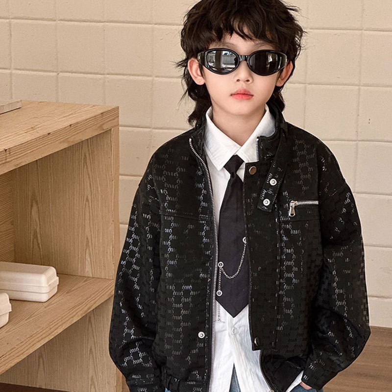 Комплект кожаных курток для мальчиков, осень 2025, новая коллекция, детская кожаная куртка с надписью, стильная детская одежда, оптовая продажа, трендовая