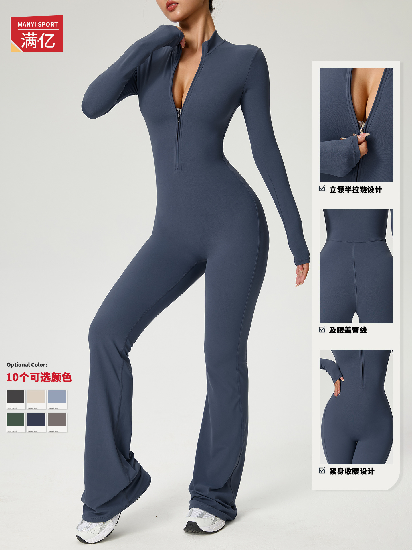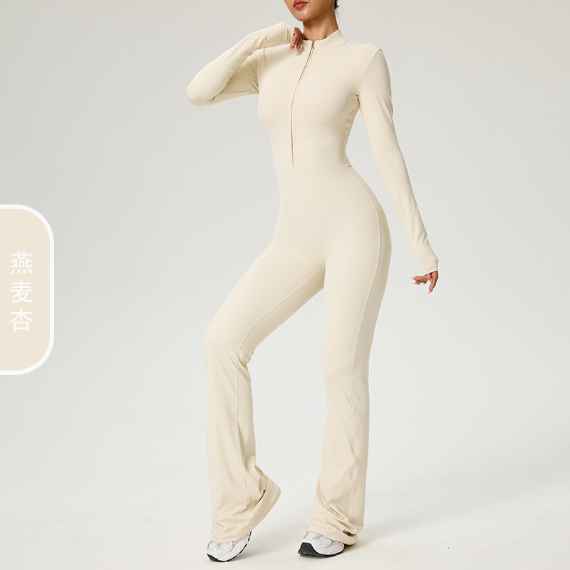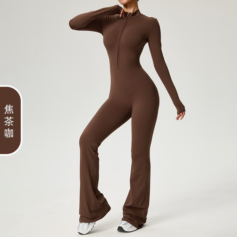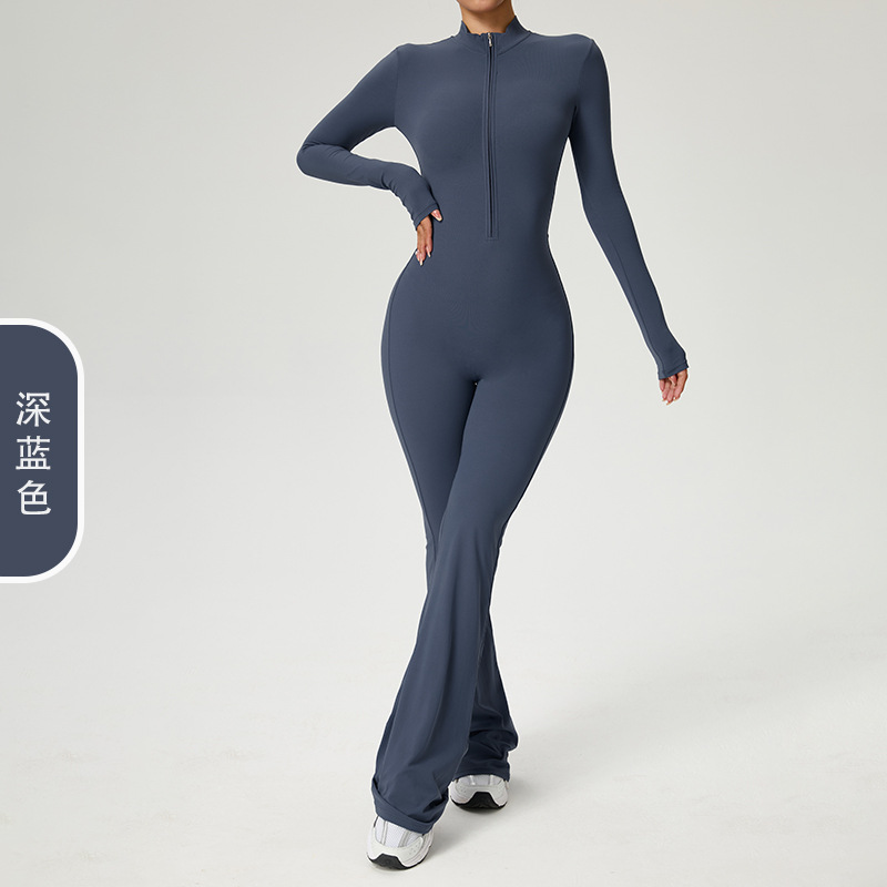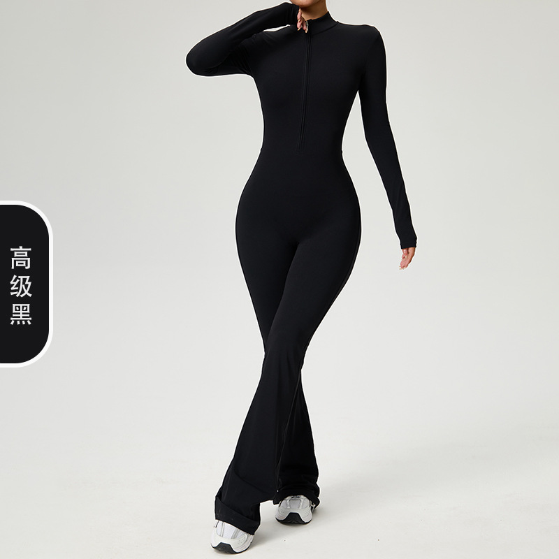 跨境亚马逊拉链云感长袖瑜伽连体服高强度健身运动一体式连体紧身