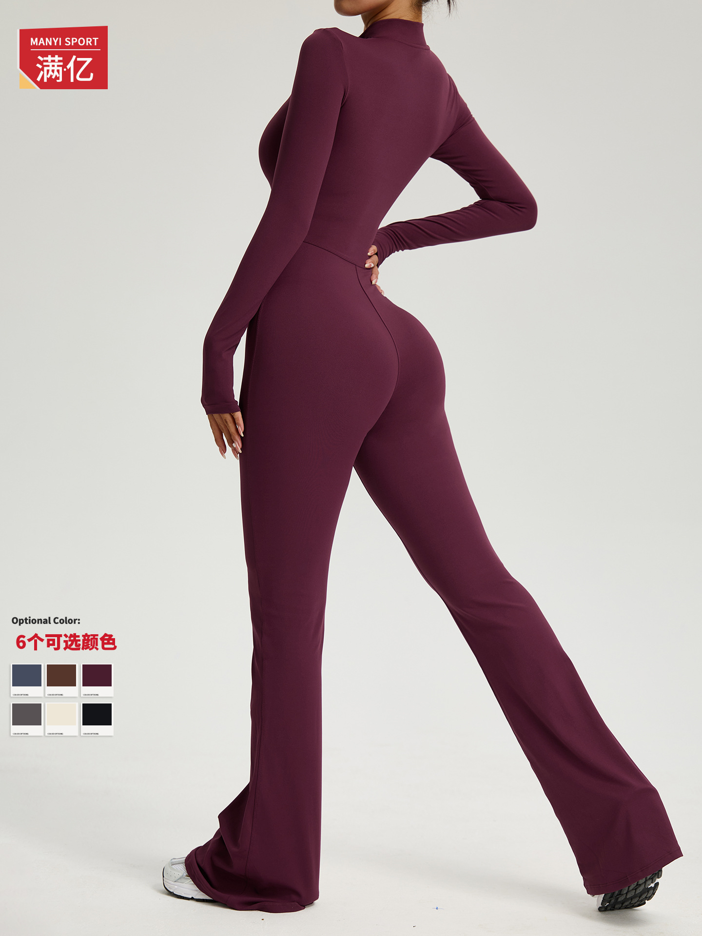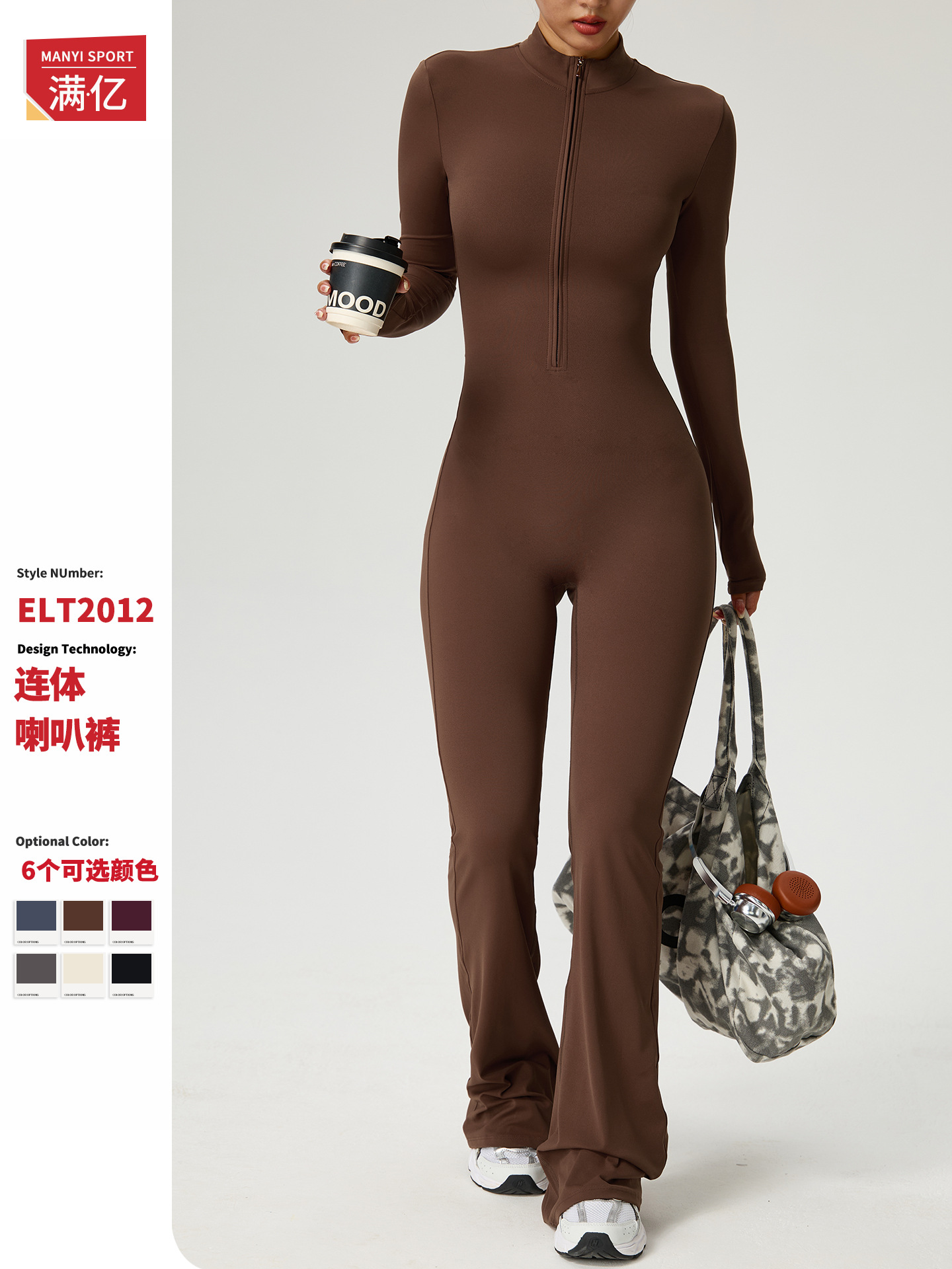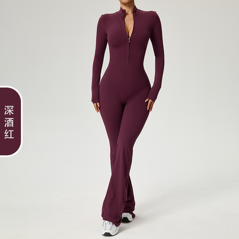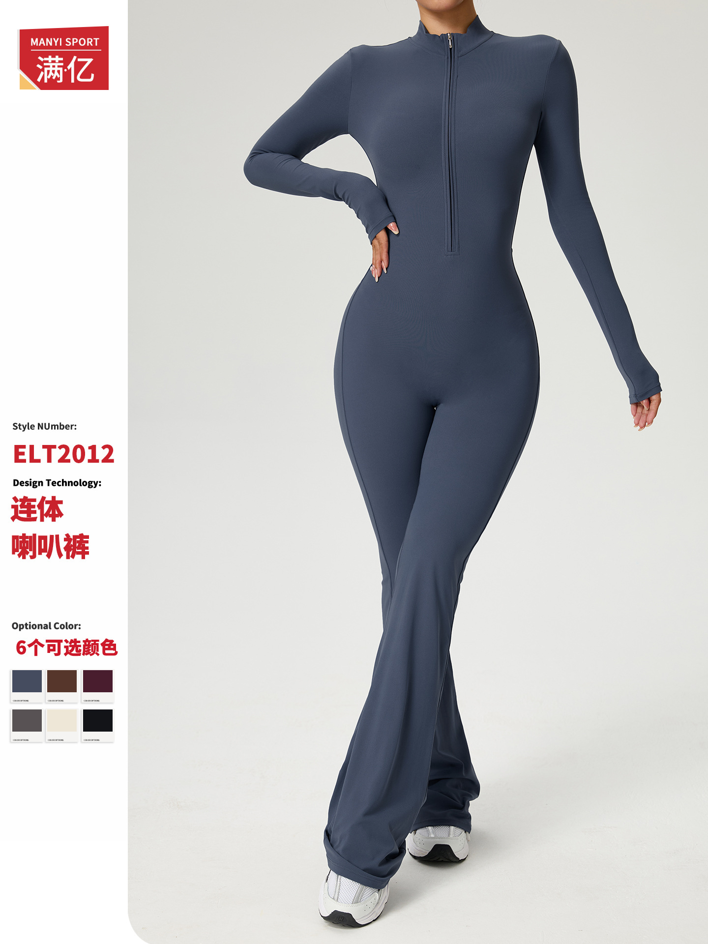 跨境亚马逊拉链云感长袖瑜伽连体服高强度健身运动一体式连体紧身