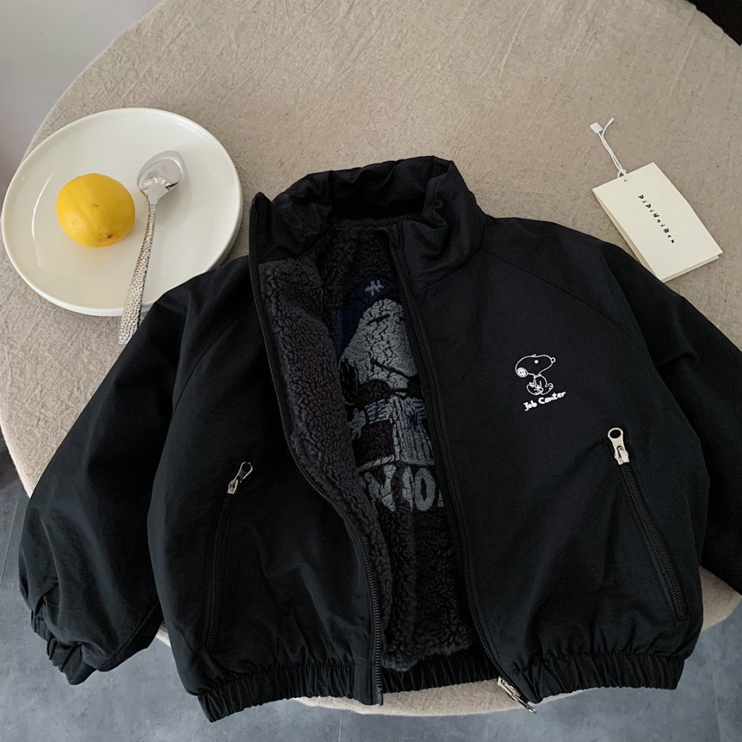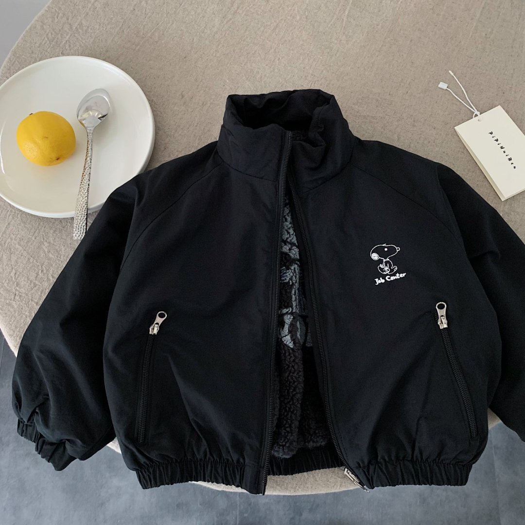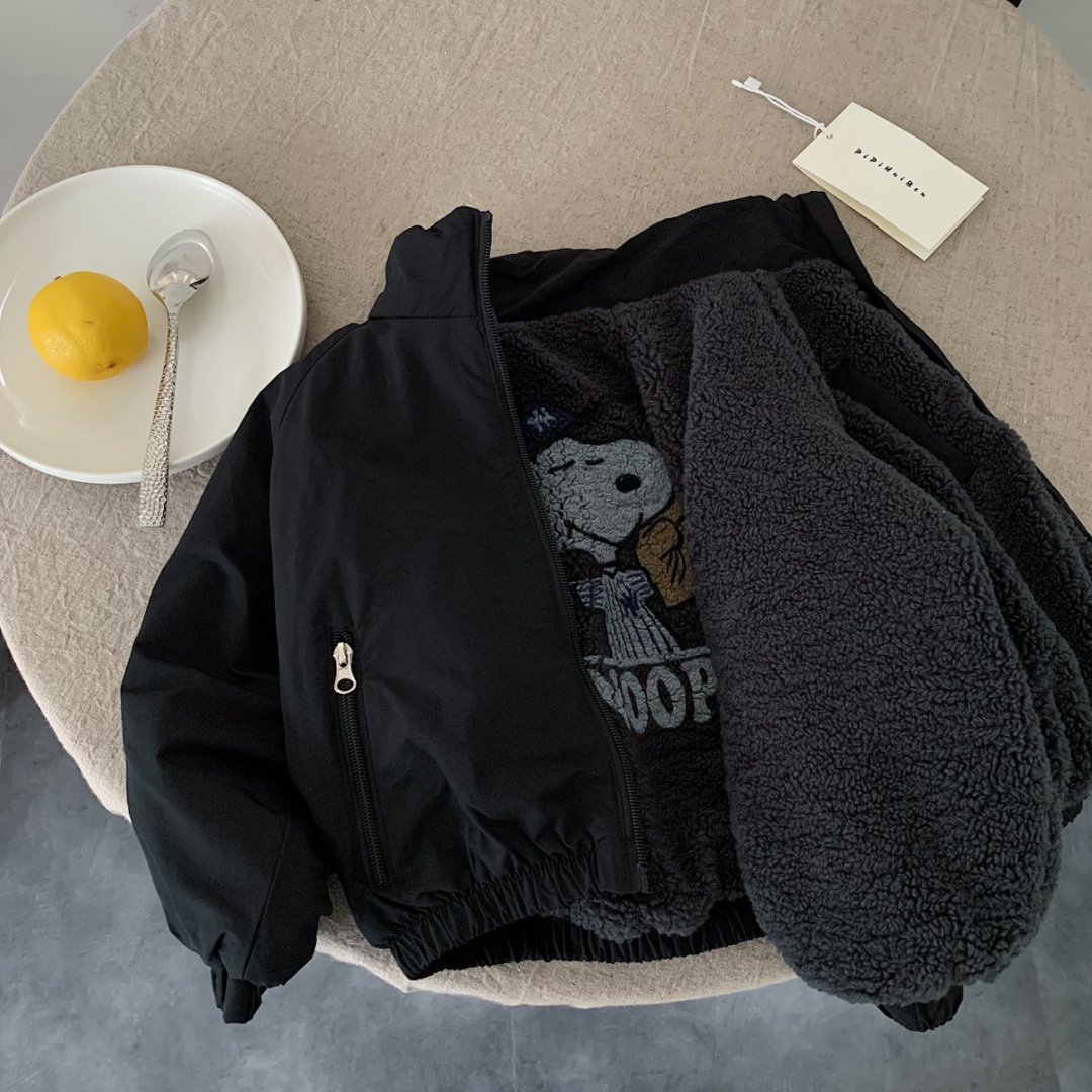 Детская хлопковая куртка 2025 зима новая детская одежда с флисовой подкладкой теплая с мультяшным принтом повседневная верхняя одежда для малышей модная и стильная