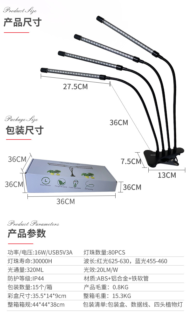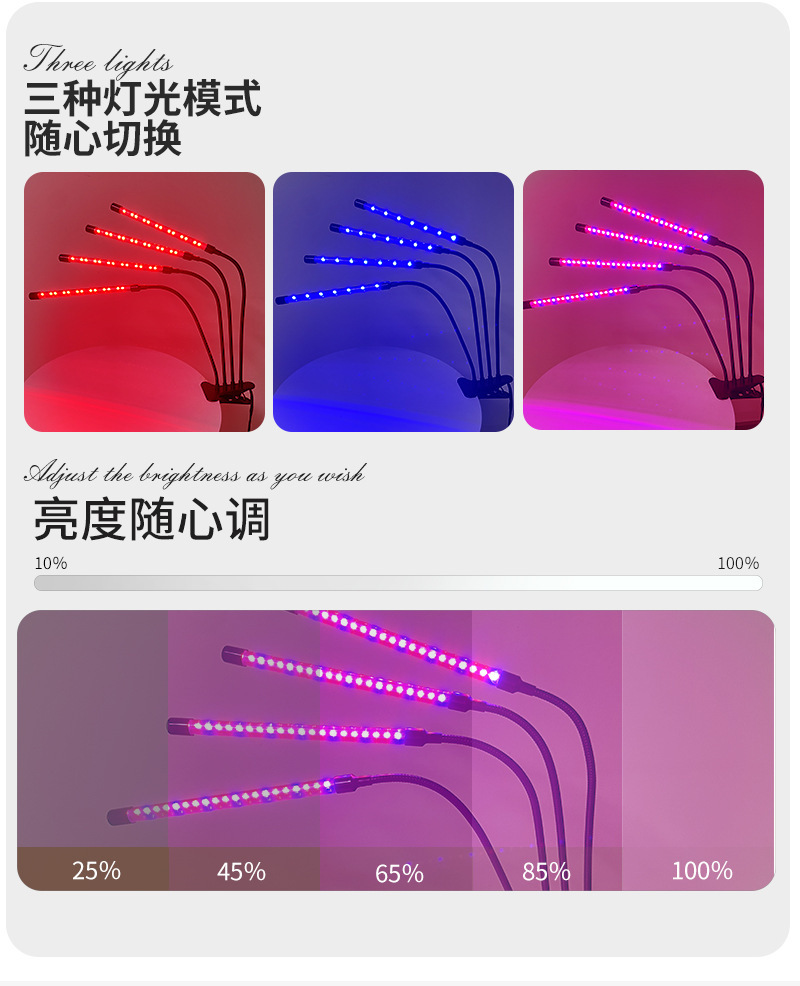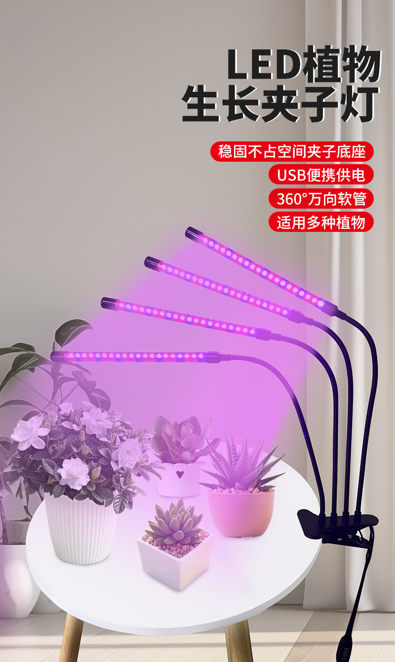 Светодиодная лампа для растений с имитацией солнечного света для выращивания суккулентов и цветов в помещении, с таймером, на прищепке, дополнительный свет для зеленых растений