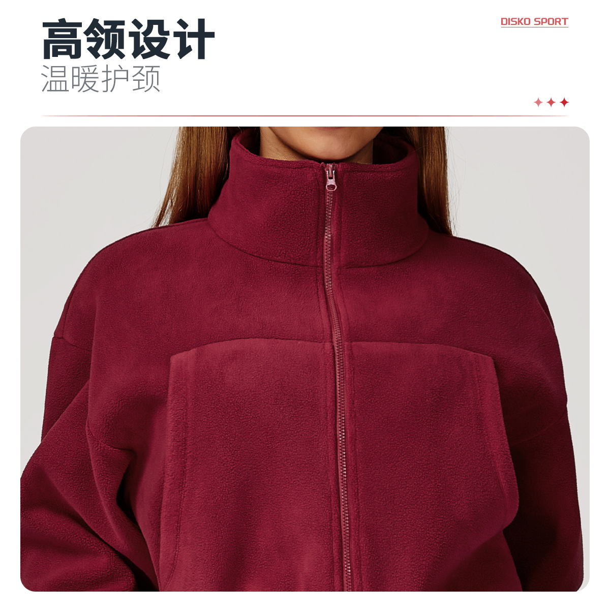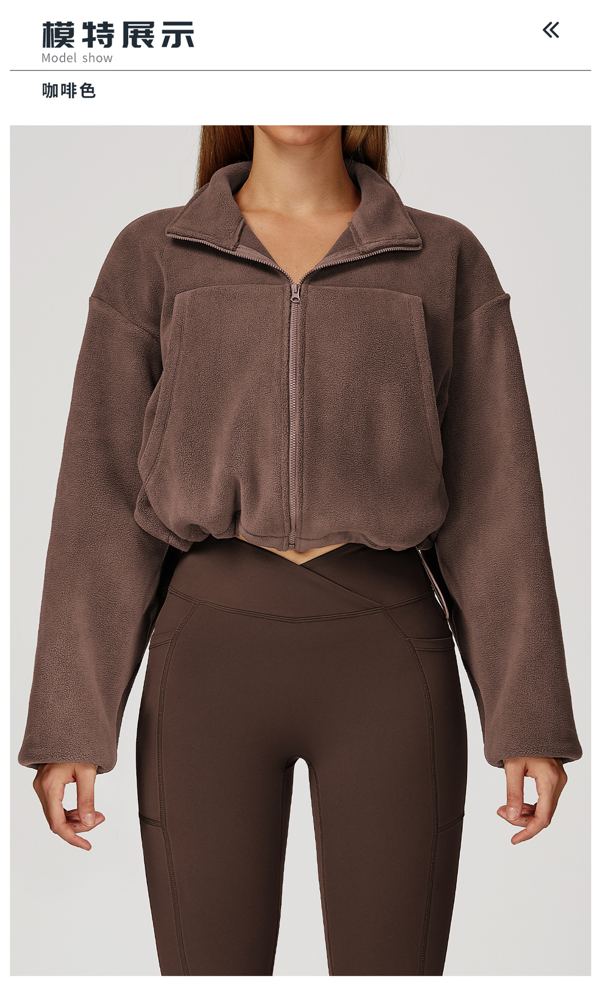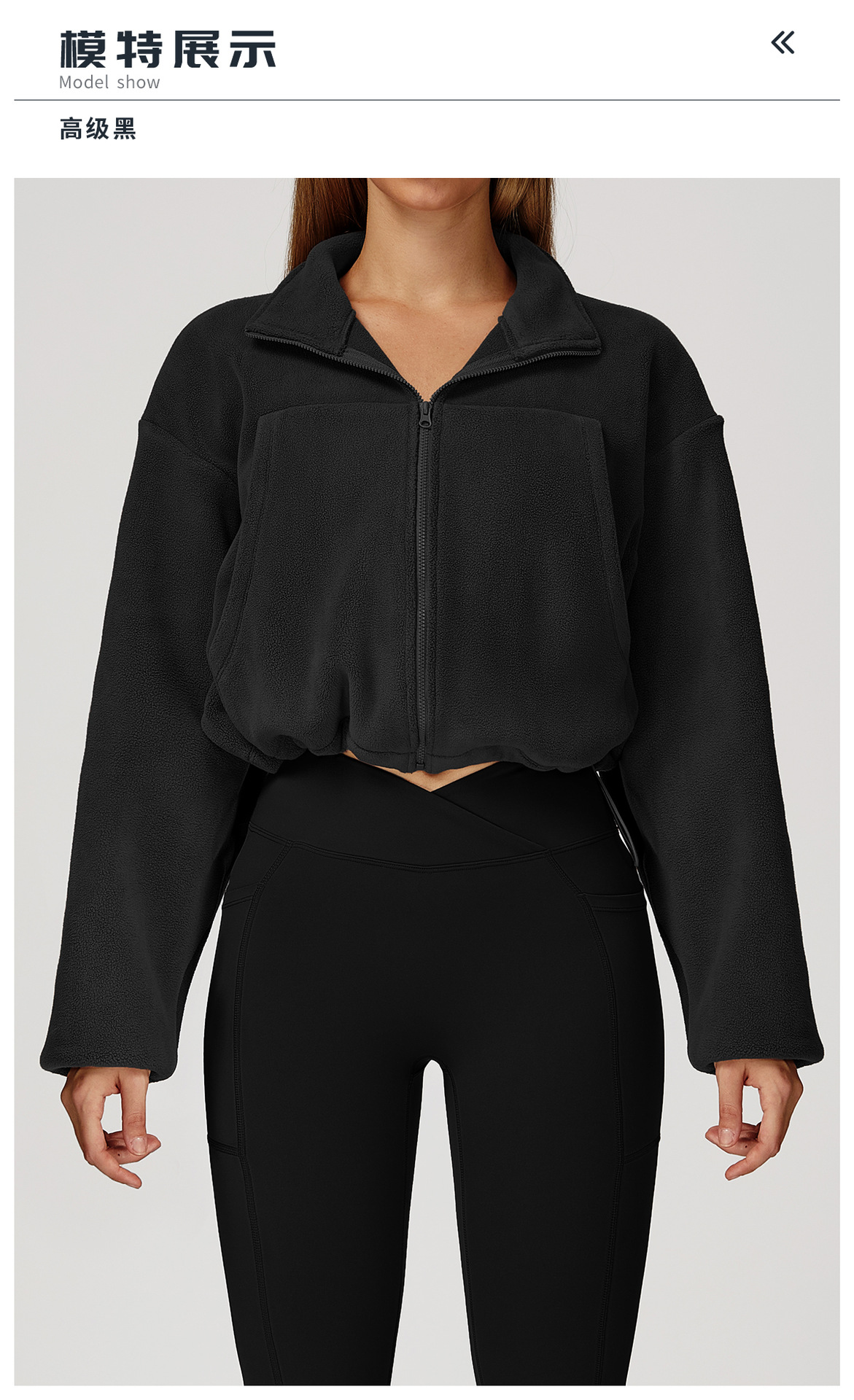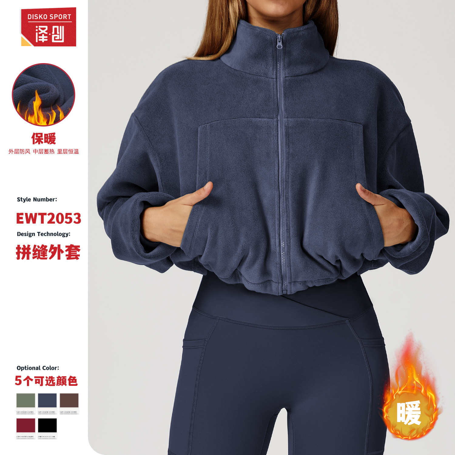 跨境秋冬外套立领防风保暖奥粒绒抽绳外套女跑步加绒运动外套2053