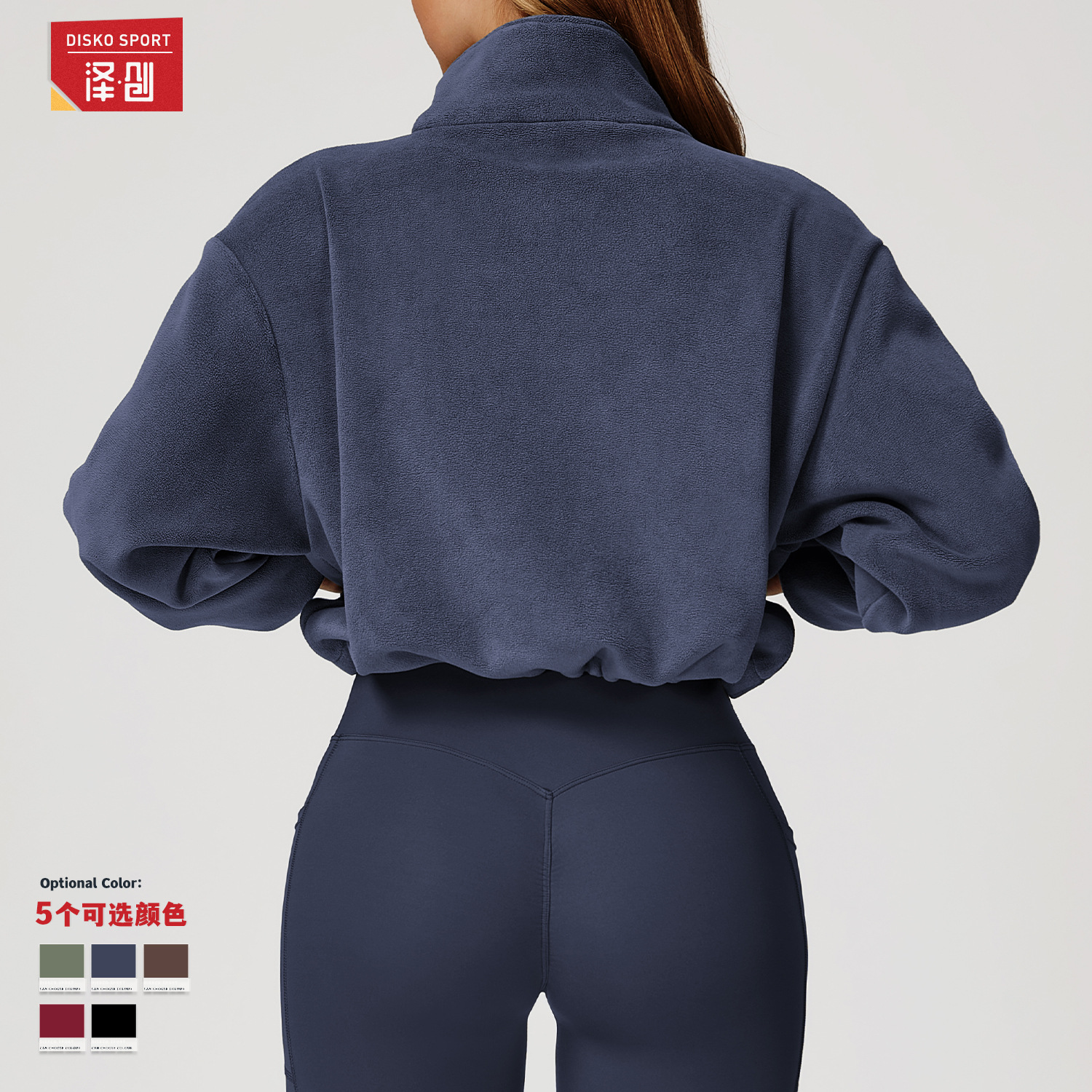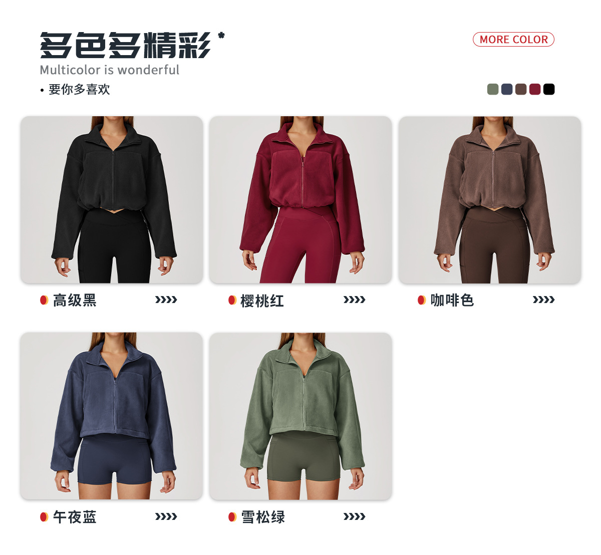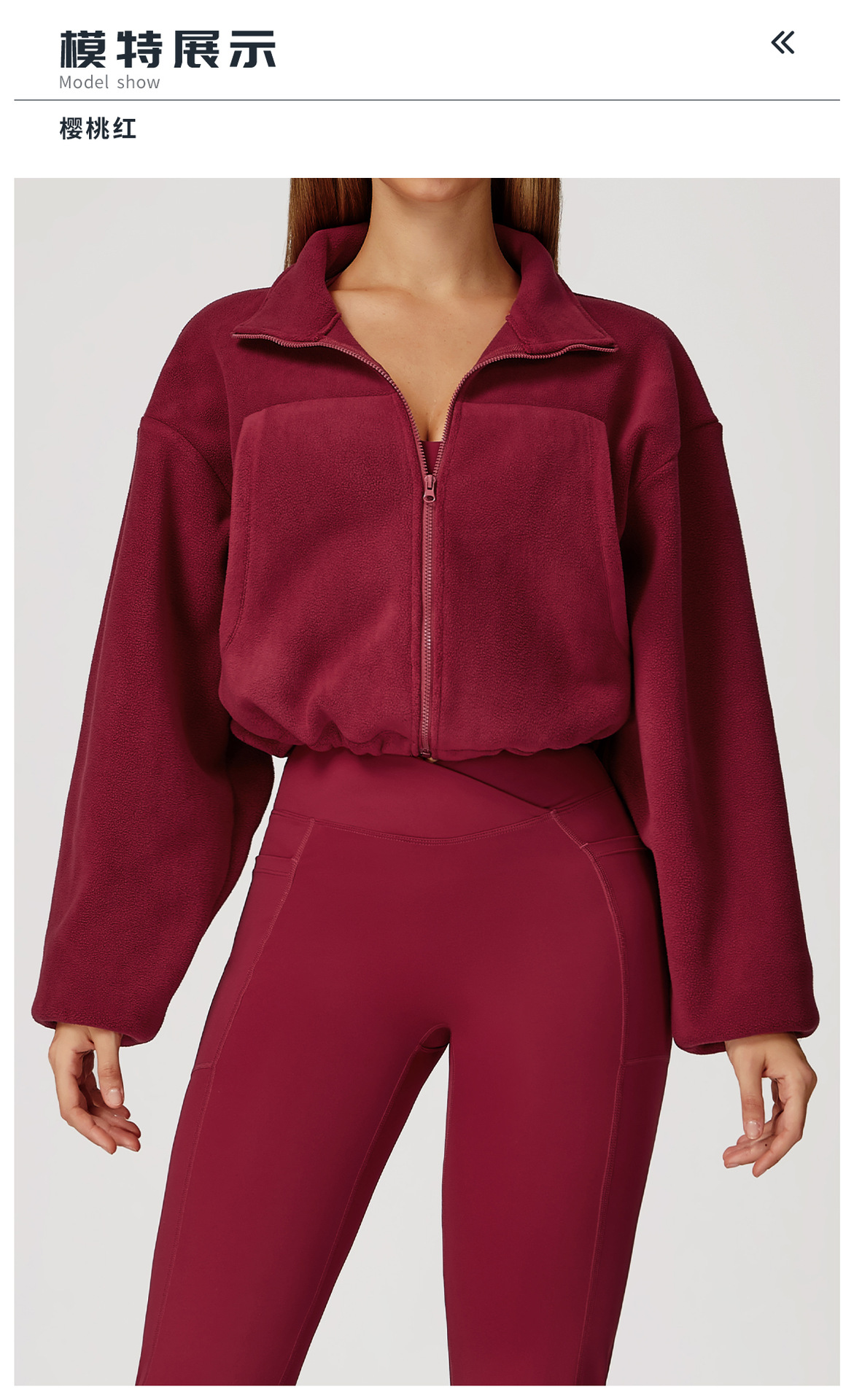 跨境秋冬外套立领防风保暖奥粒绒抽绳外套女跑步加绒运动外套2053