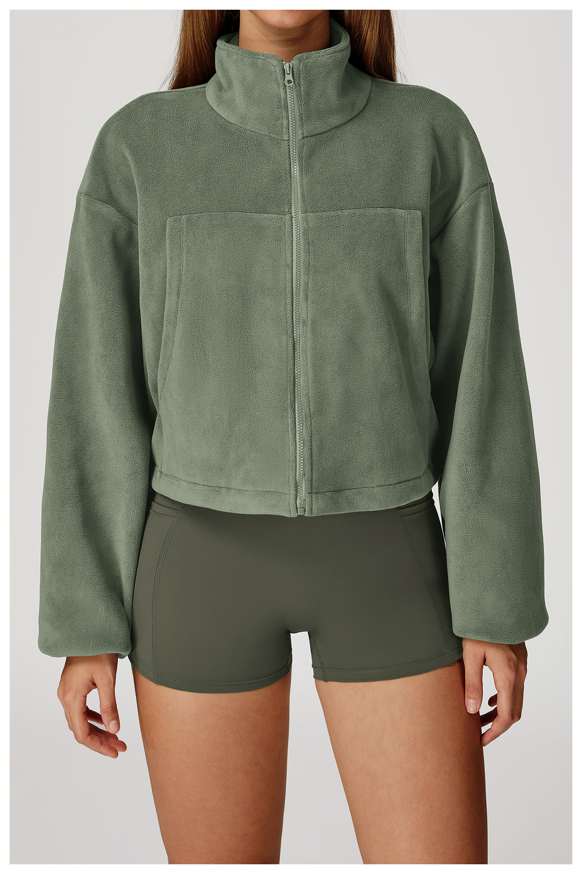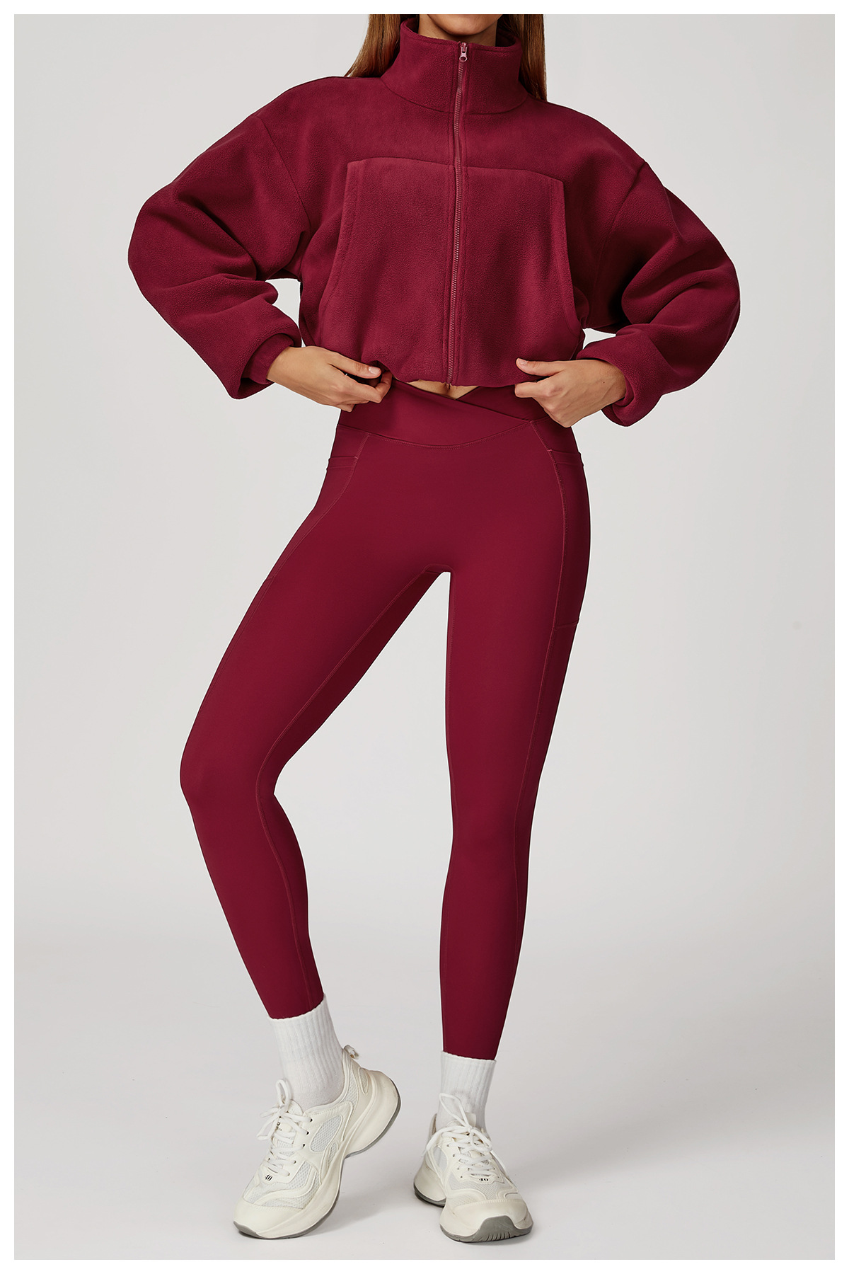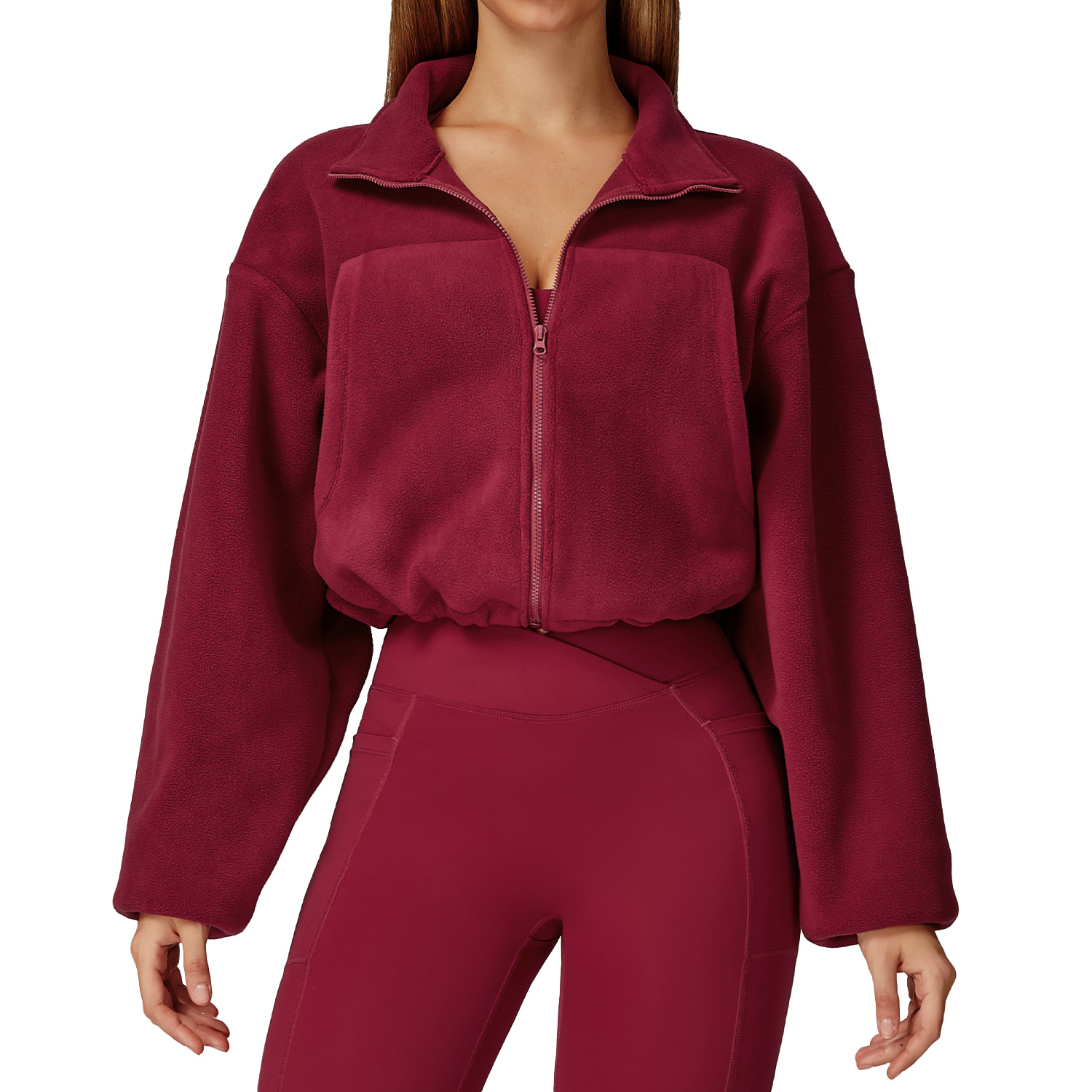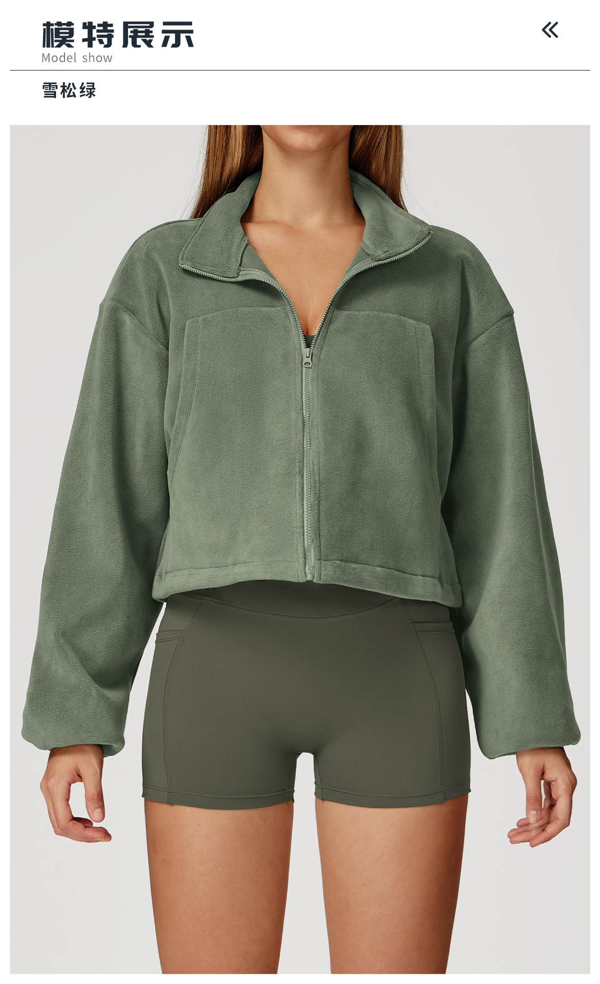 跨境秋冬外套立领防风保暖奥粒绒抽绳外套女跑步加绒运动外套2053
