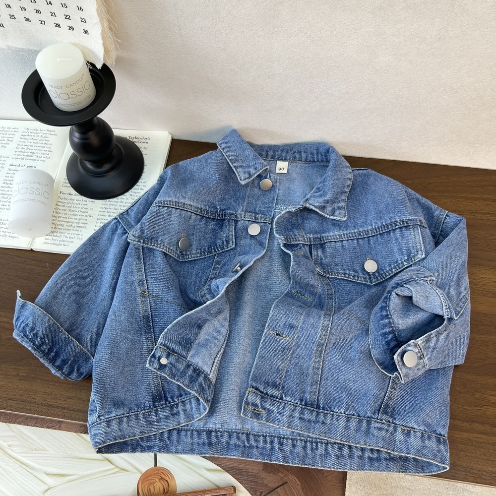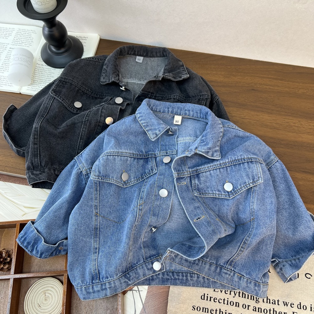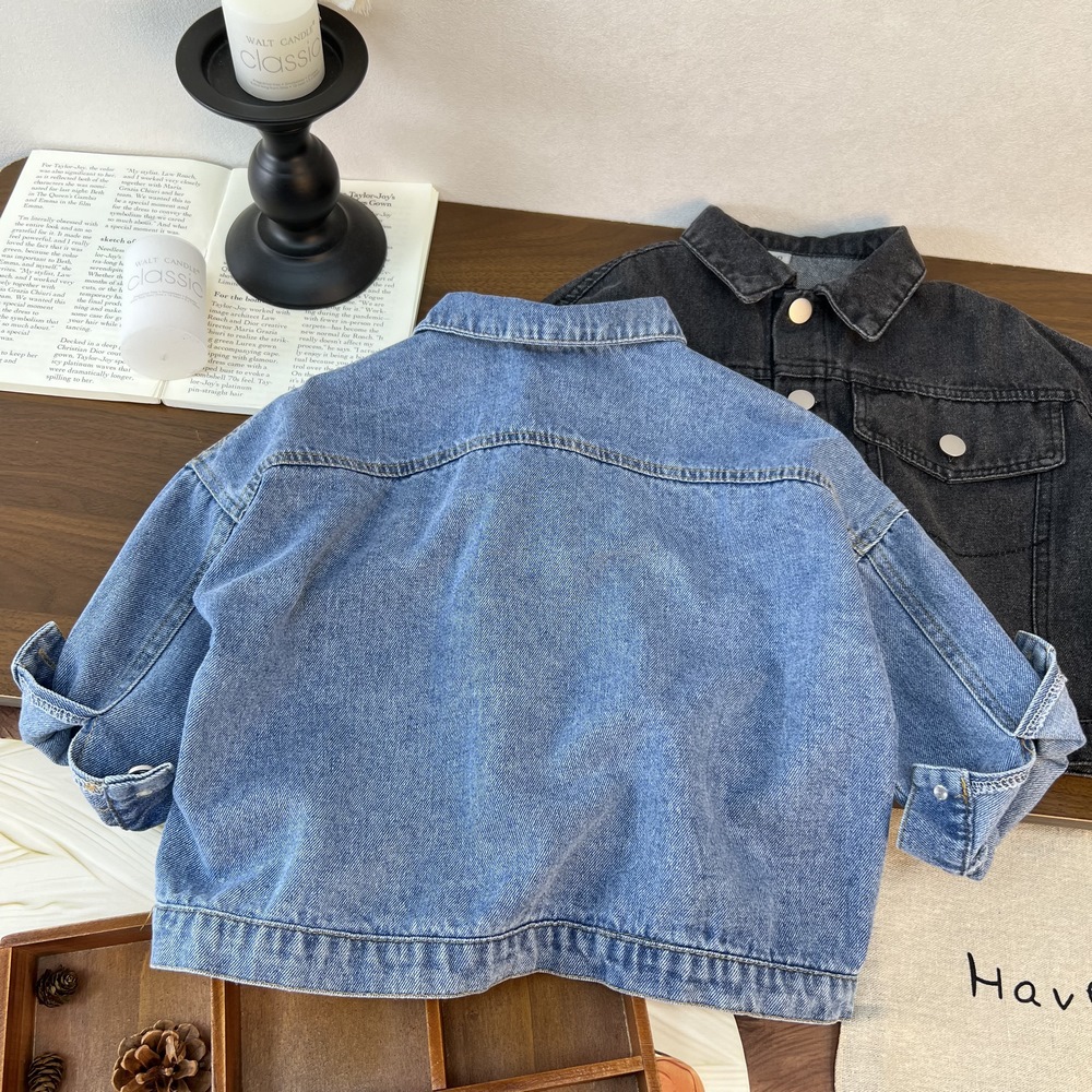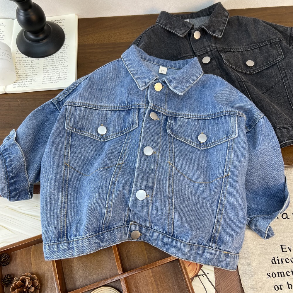 Детская джинсовая куртка 2025, новая осенне-зимняя универсальная модная простая джинсовая куртка в корейском стиле для мальчиков и девочек
