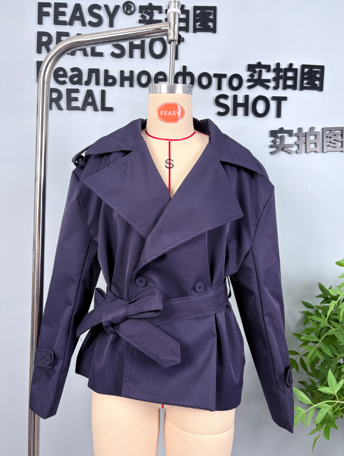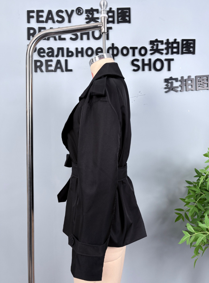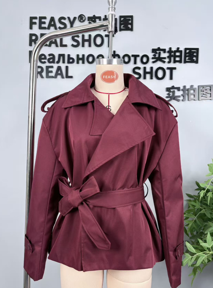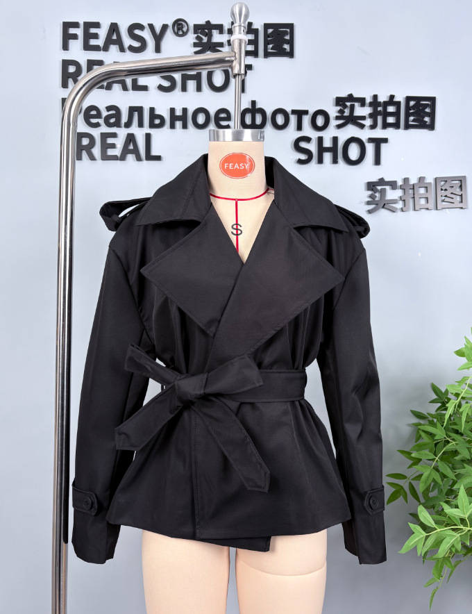 ZA AliExpress популярная кросс-бордерная женская короткая куртка-ветровка в европейском и американском стиле с поясом однотонного цвета