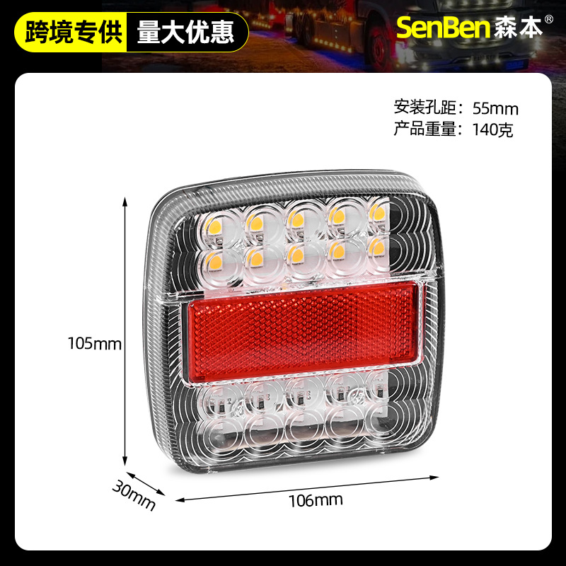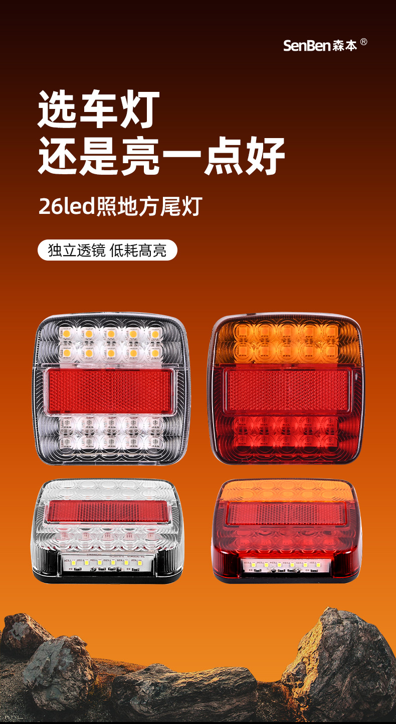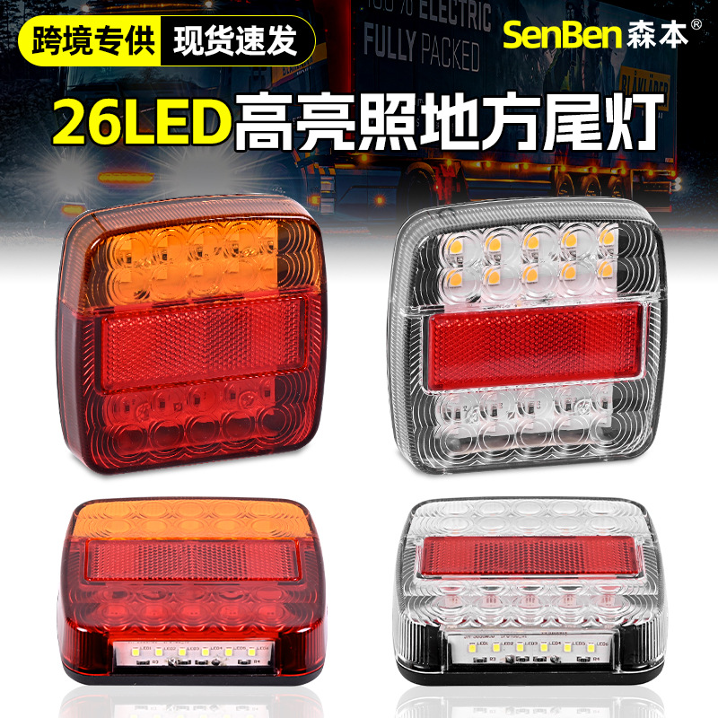 Трансграничный стоп-сигнал для грузовика 12/24В, цифровой указатель поворота для прицепа, 26 светодиодов, подсветка номерного знака, локальный задний фонарь