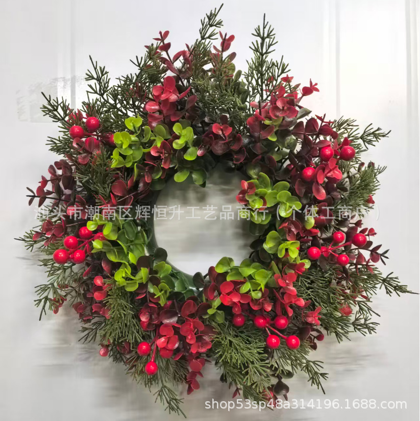 Рождественские украшения для входной двери, гирлянда-подвеска, рождественские листья кипариса, красные фрукты, гирлянда, подвеска для украшения двора
