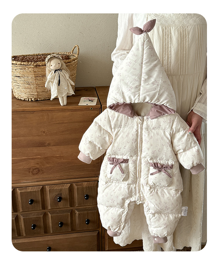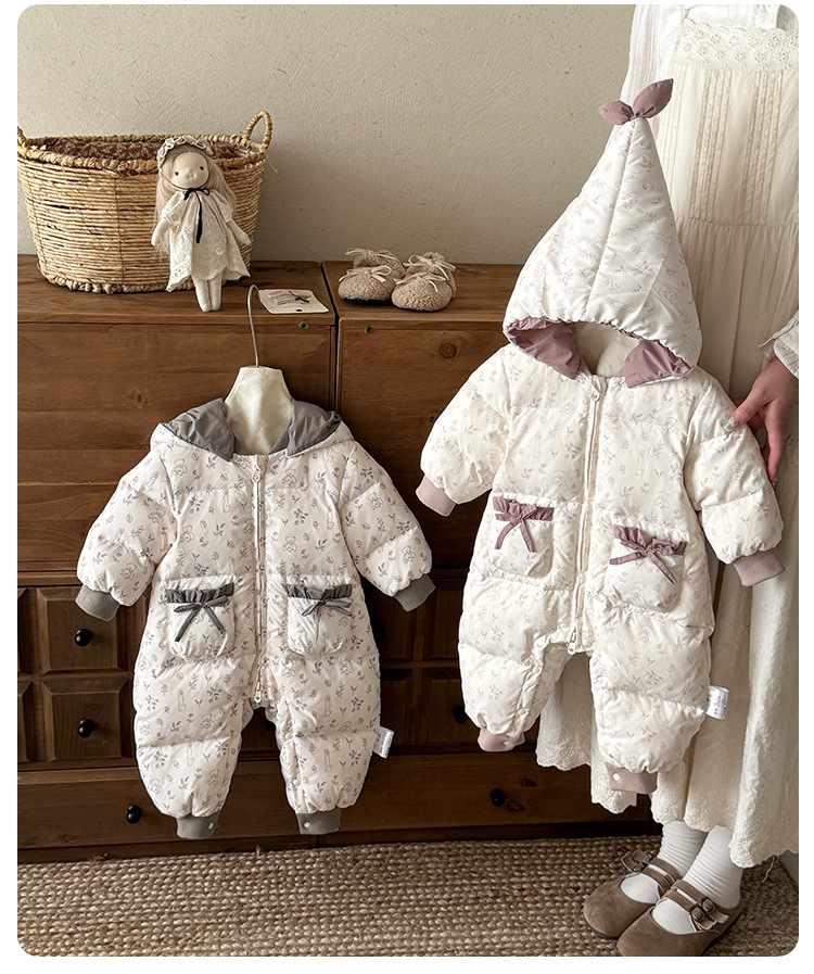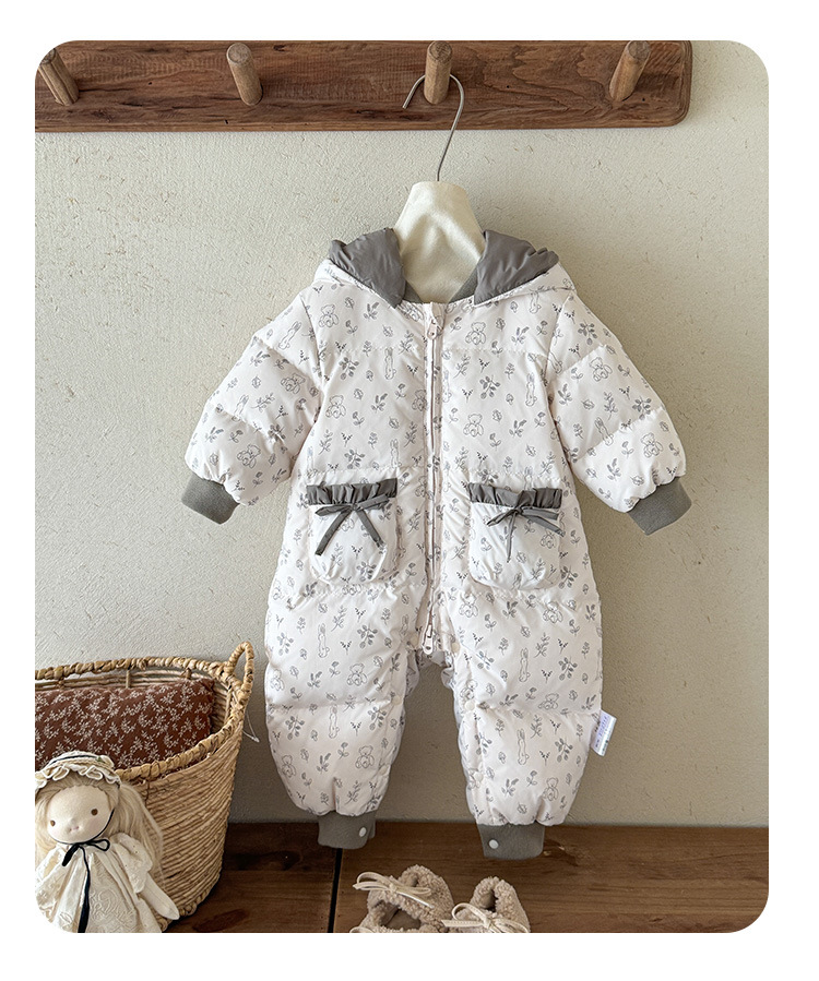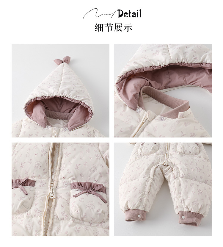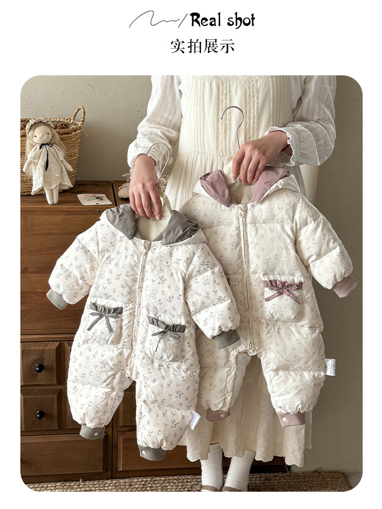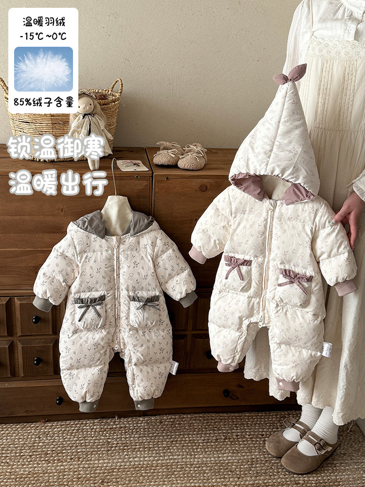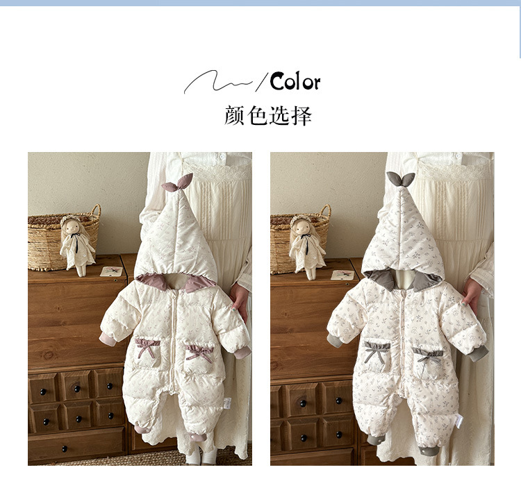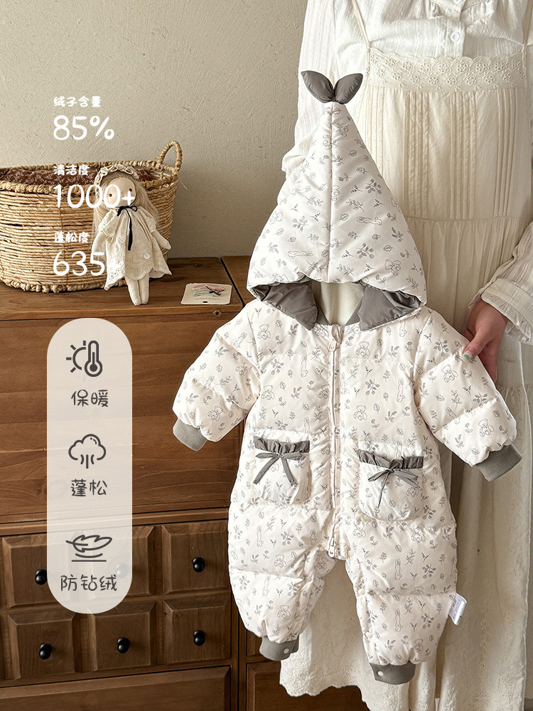 女童冬装羽绒连体衣婴儿连帽哈衣90白鸭绒女宝宝洋气保暖爬服 a类