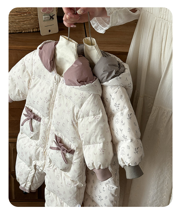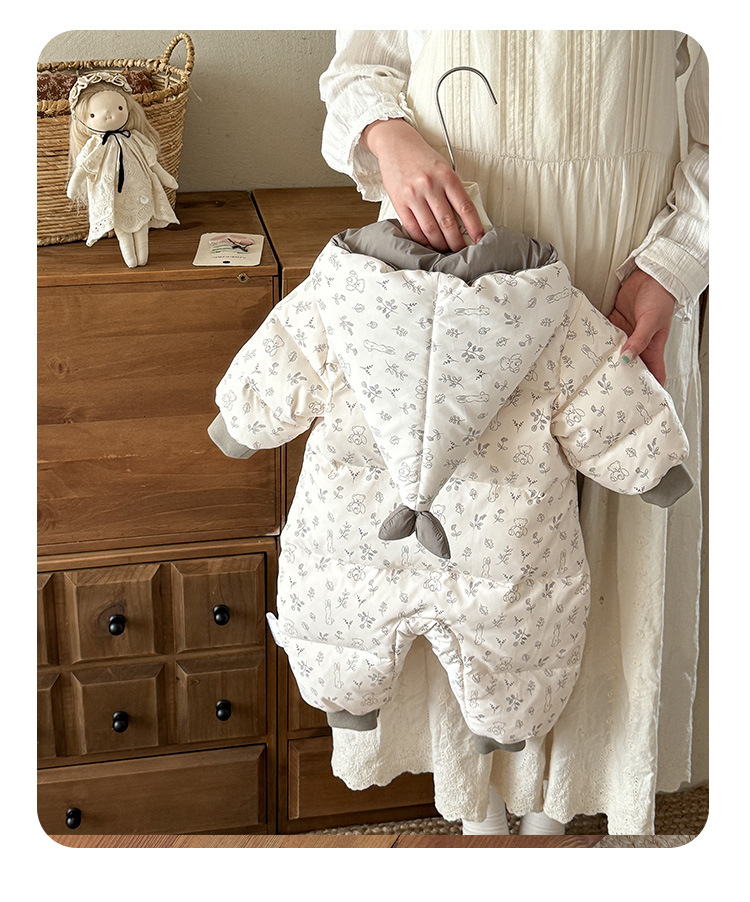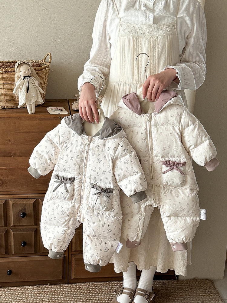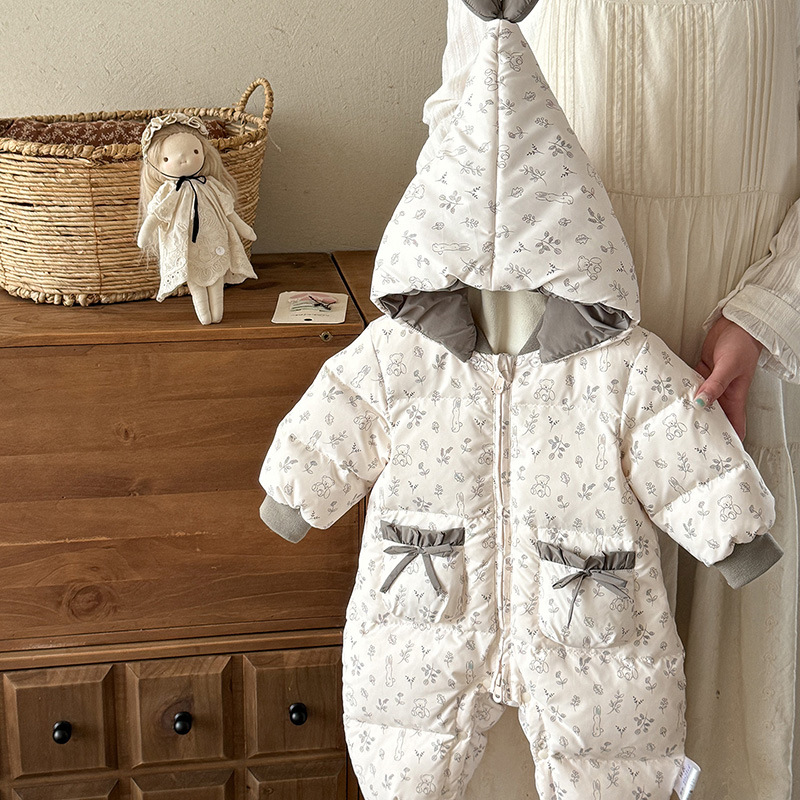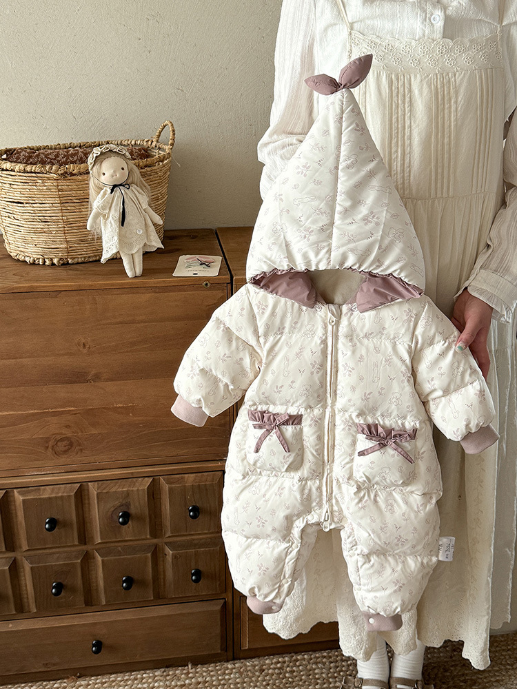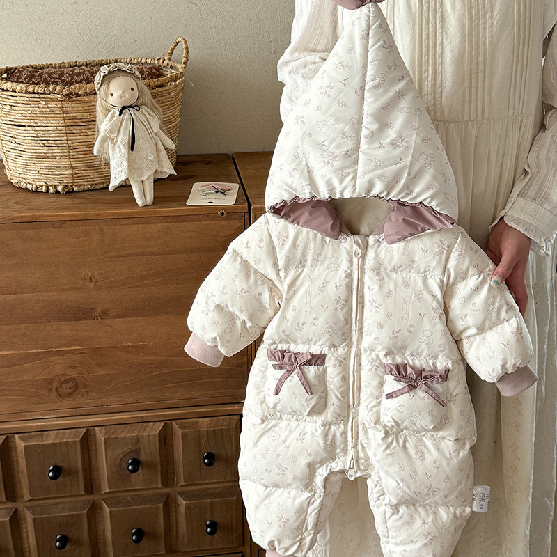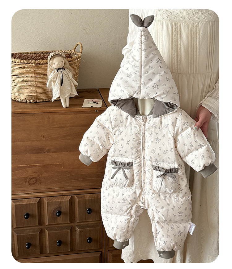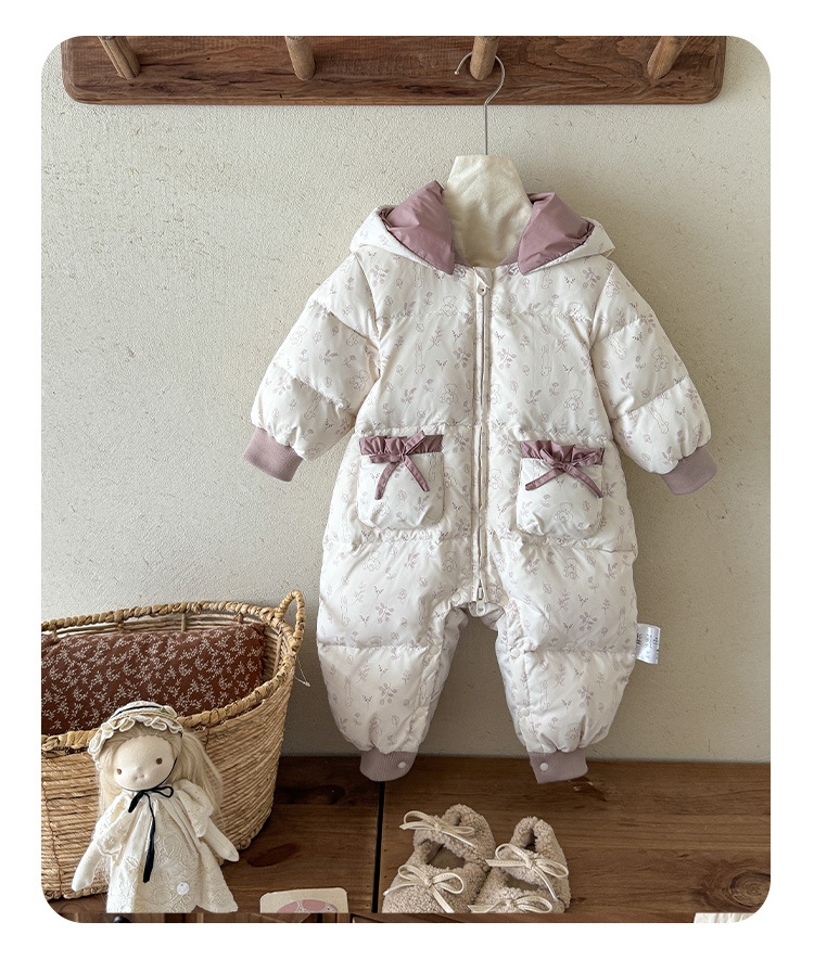 女童冬装羽绒连体衣婴儿连帽哈衣90白鸭绒女宝宝洋气保暖爬服 a类