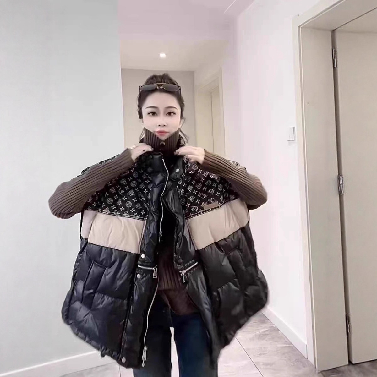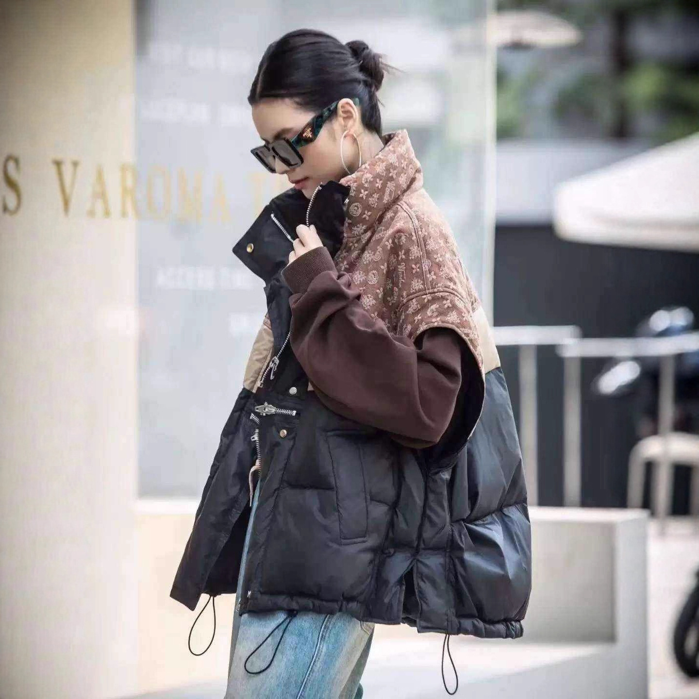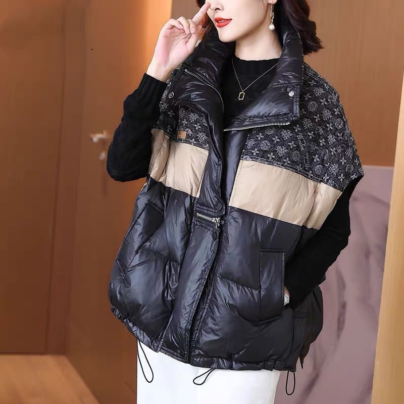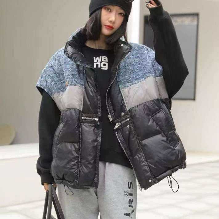 2025秋冬新款撞色立领韩版时尚宽松羽绒马甲百搭女新50白鸭绒外套