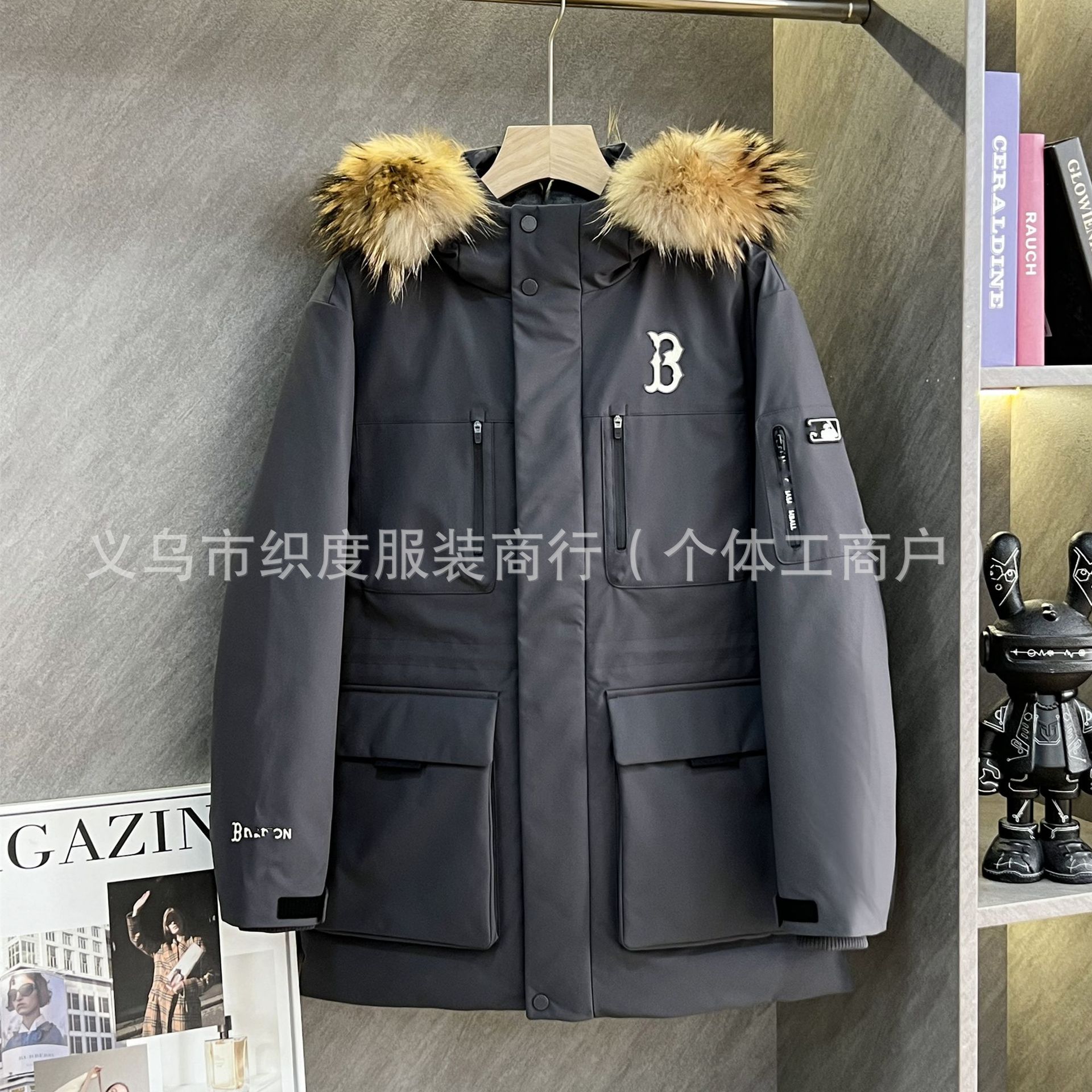 毛领升级大号织度家25新款张康乐同款工装刺绣队标加厚工装羽绒服