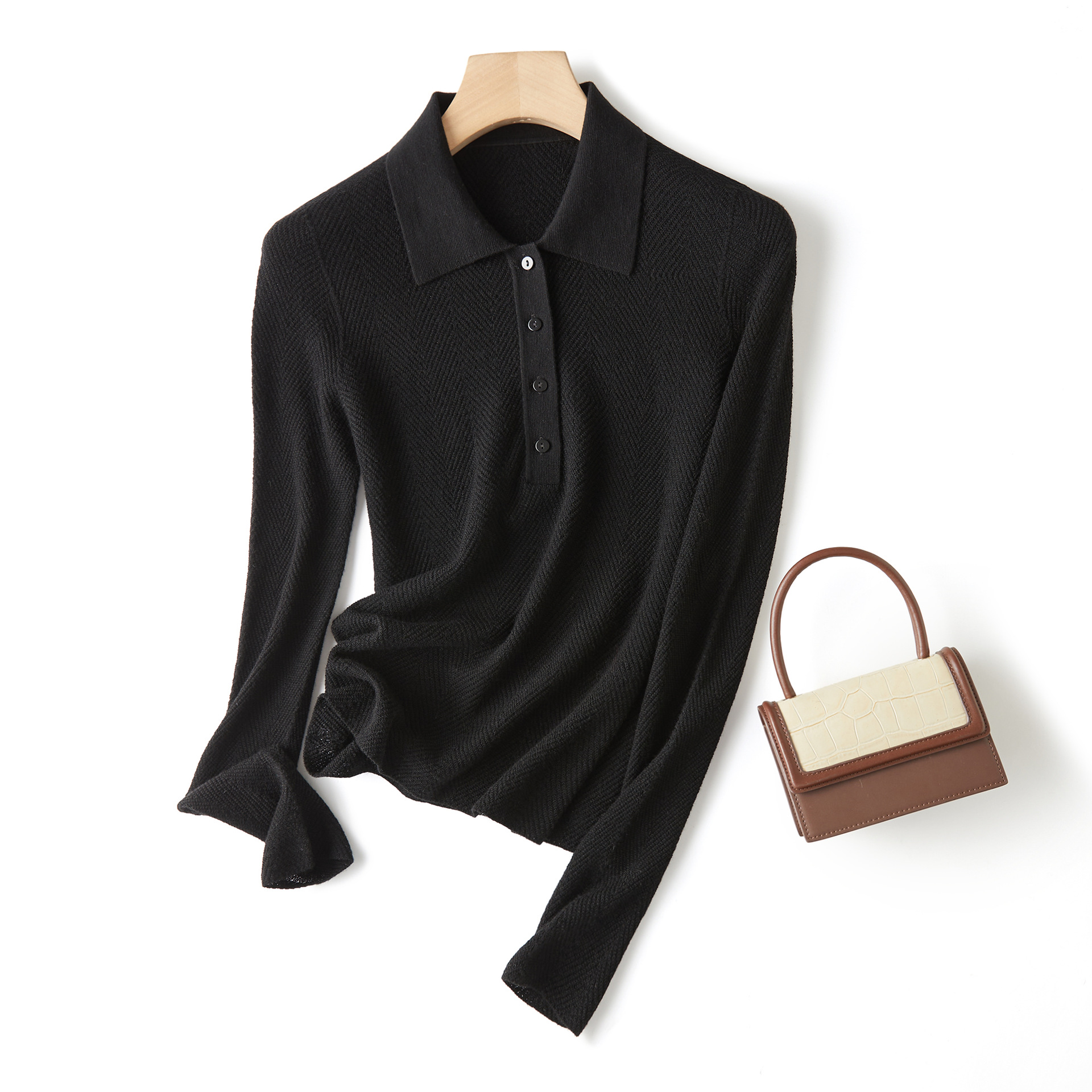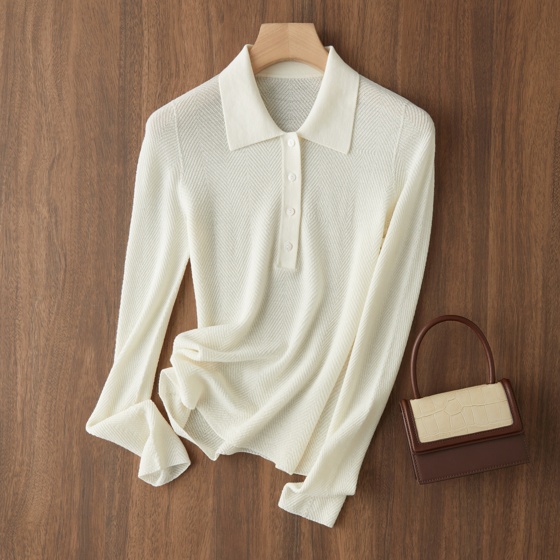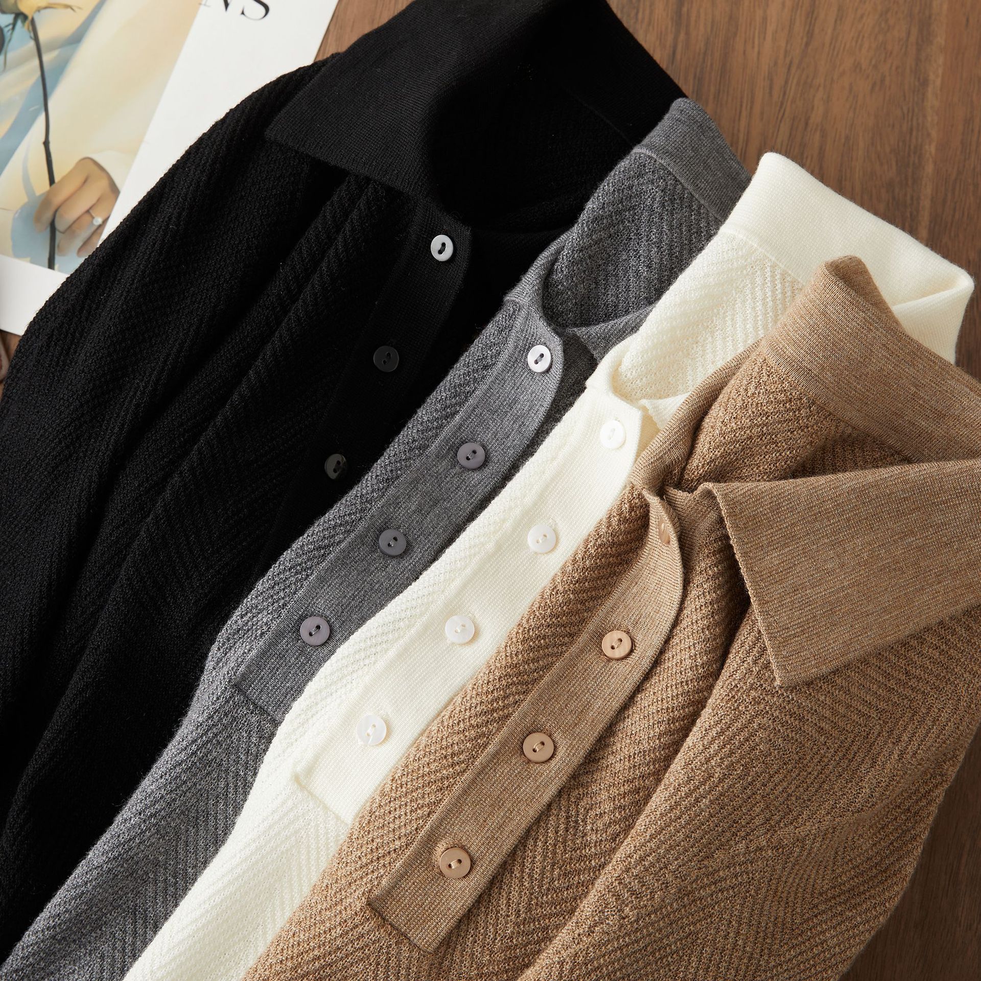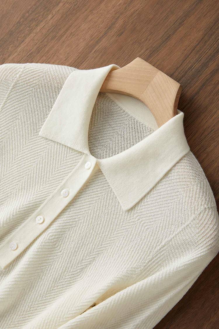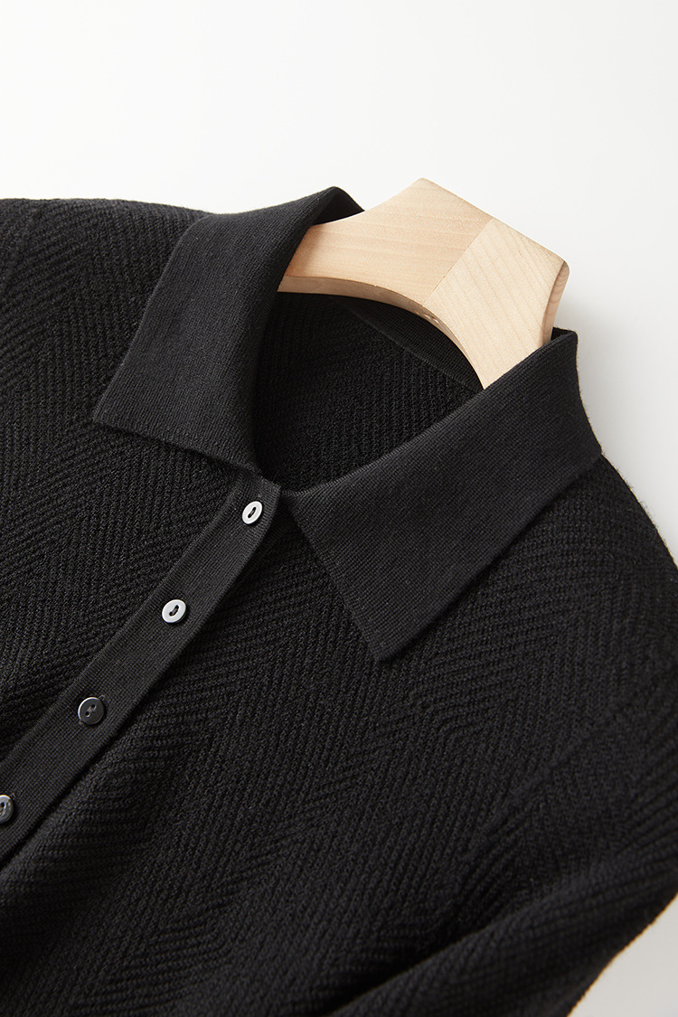 【Wenliuquan POLO】Рубашка-поло из 100% мериносовой шерсти в стиле Old Money, бесшовная цельная рубашка-поло из пряжи Янцзы с узором «елочка».