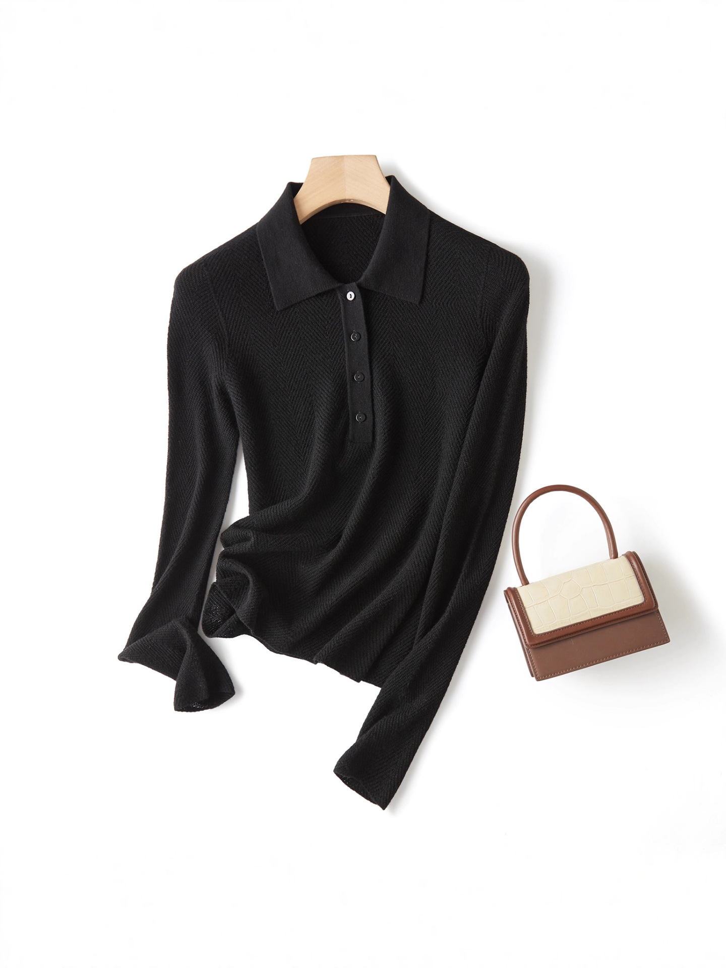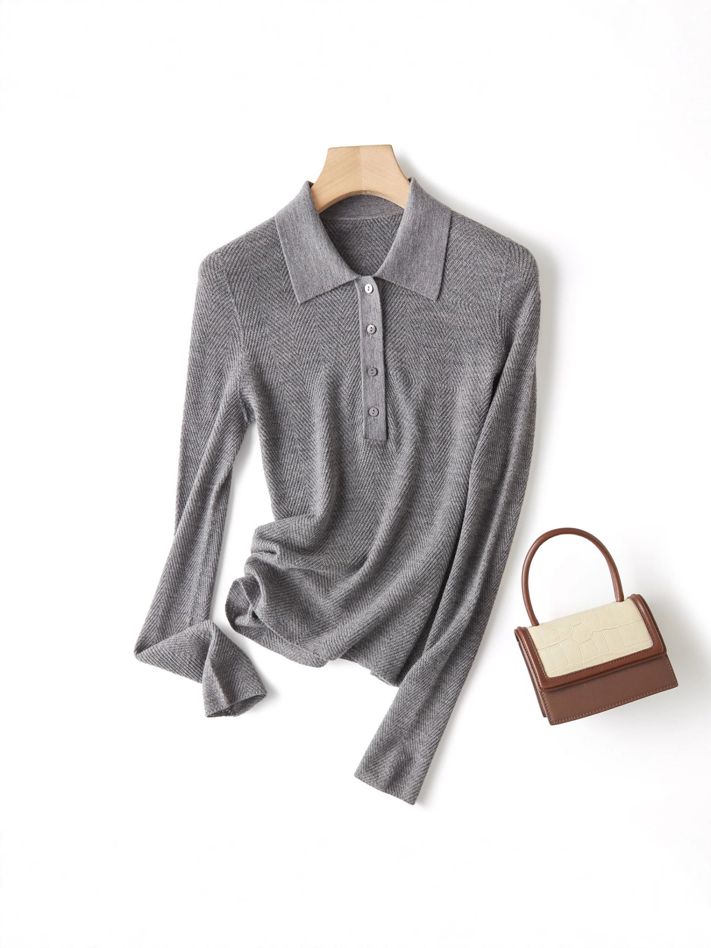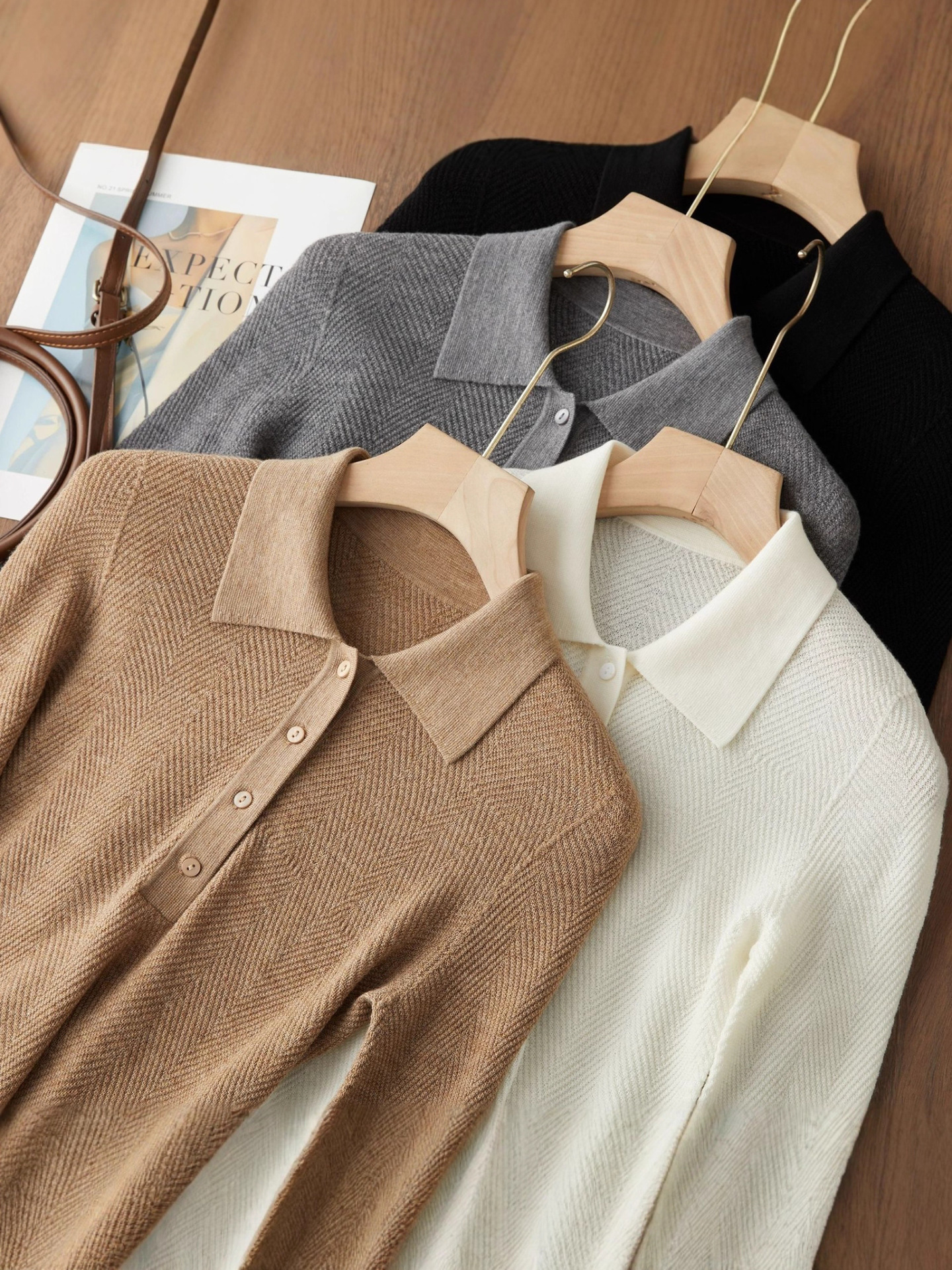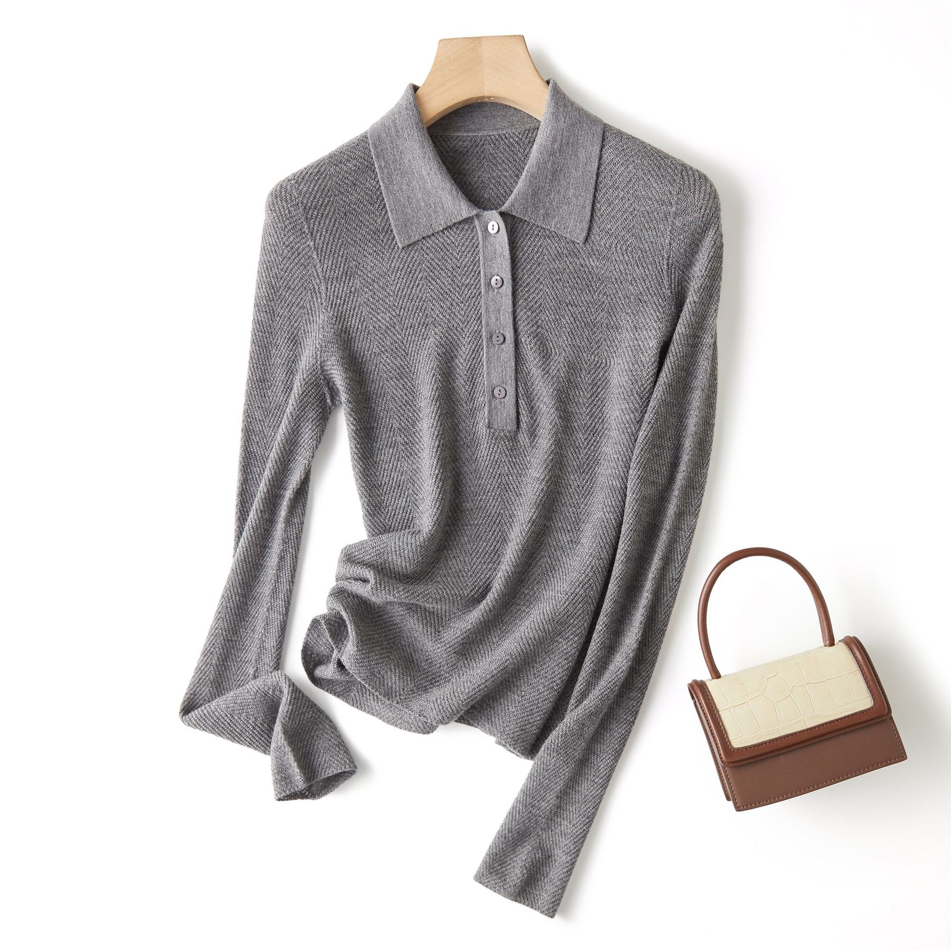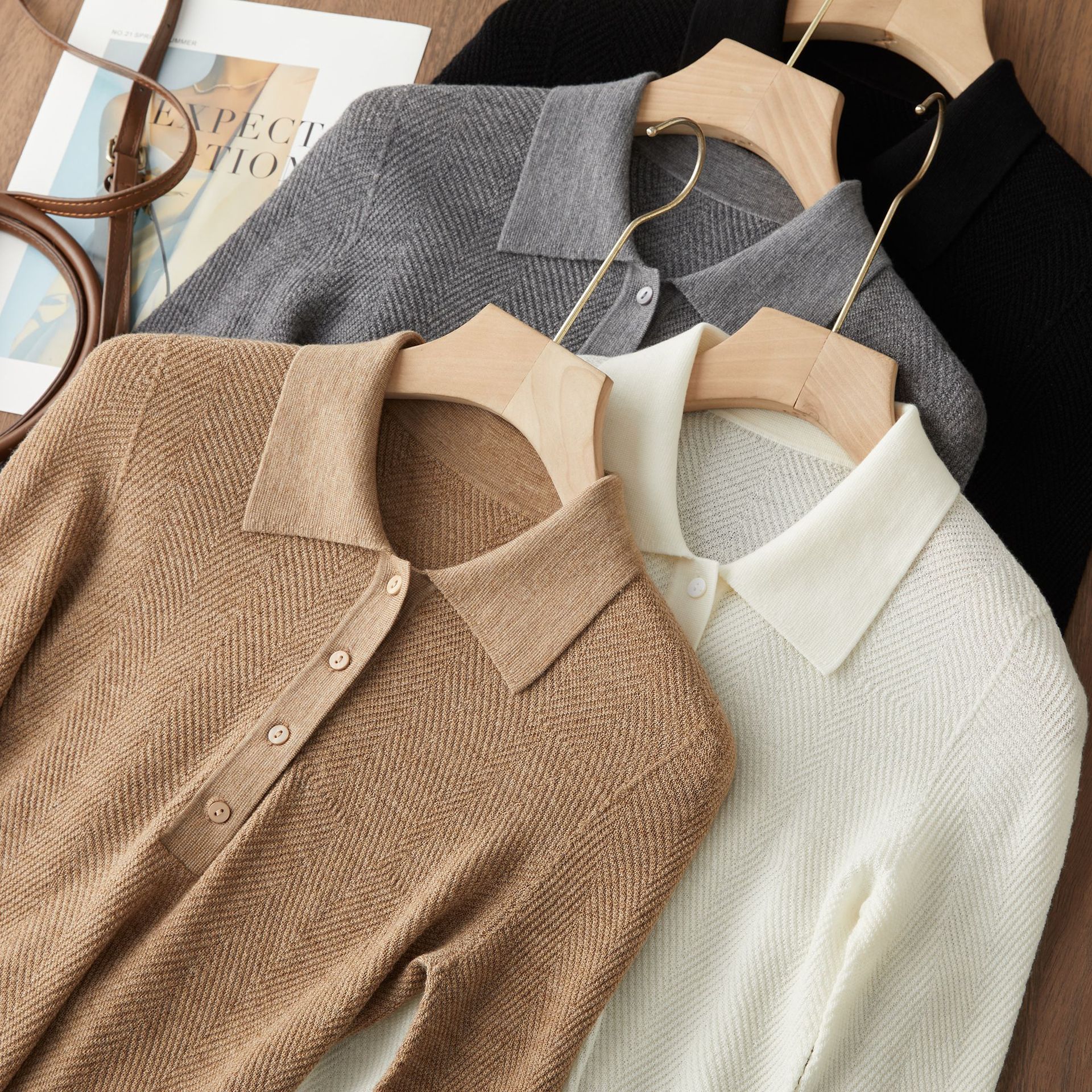 【Wenliuquan POLO】Рубашка-поло из 100% мериносовой шерсти в стиле Old Money, бесшовная цельная рубашка-поло из пряжи Янцзы с узором «елочка».