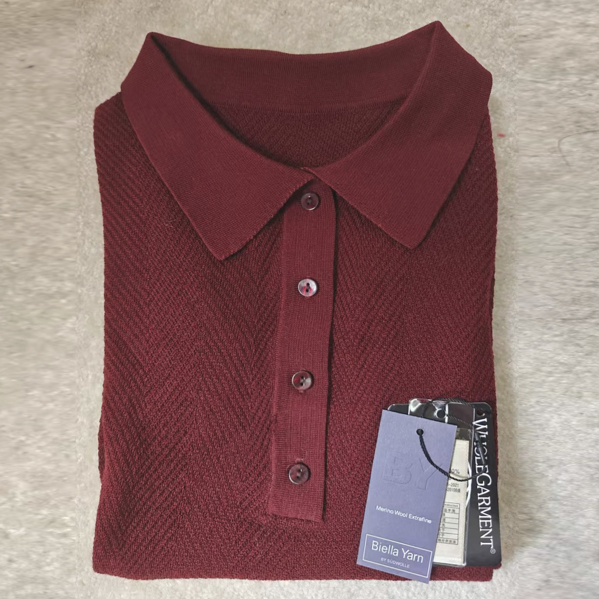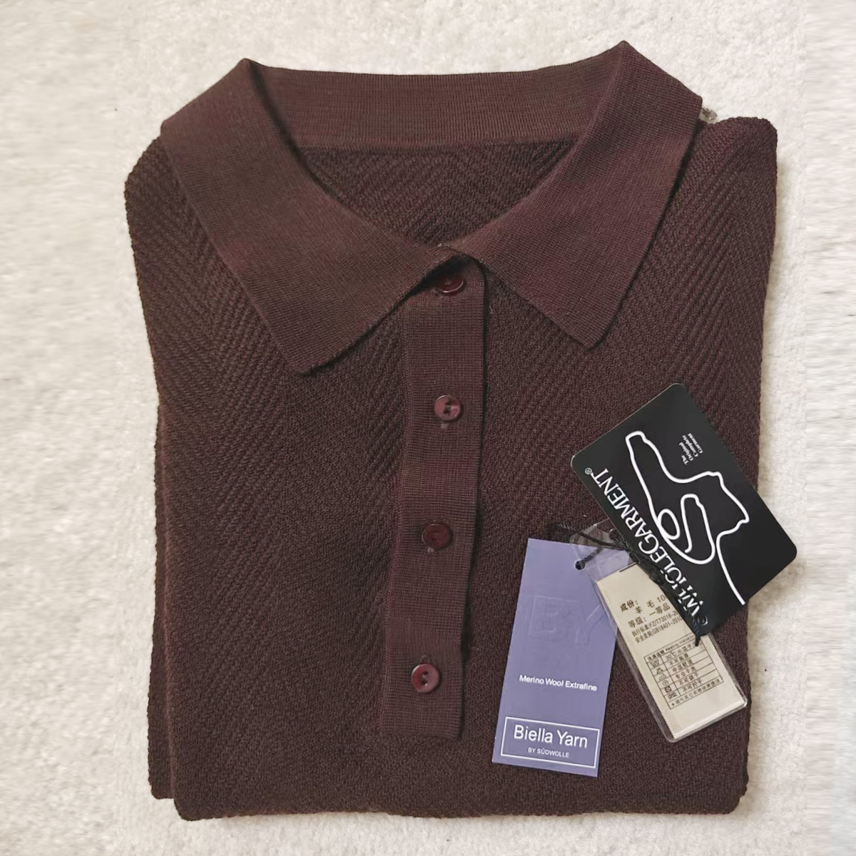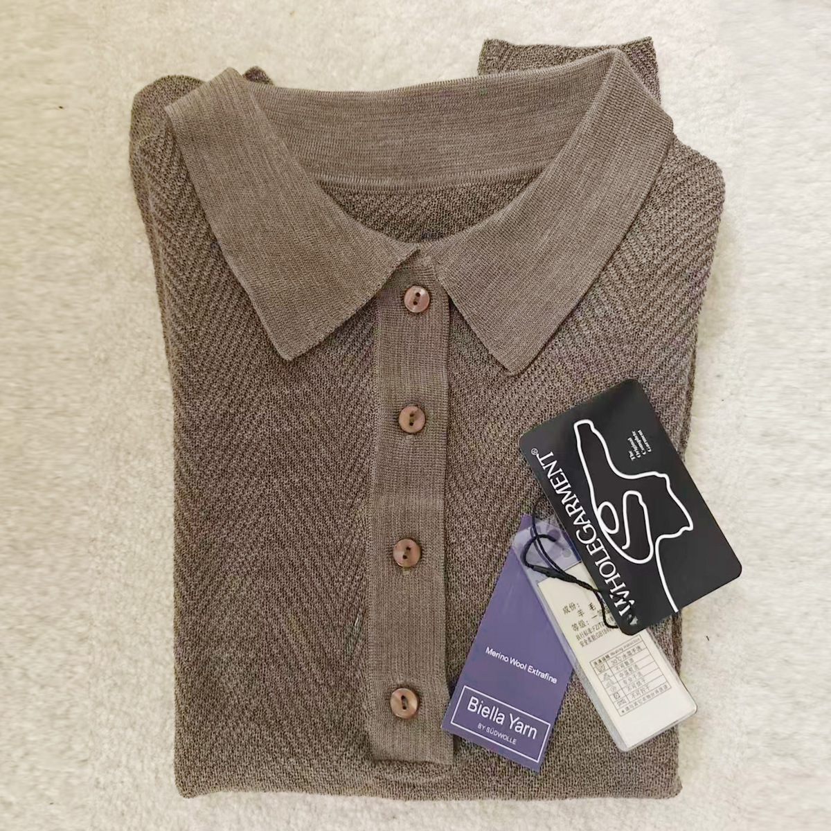 【温流线POLO】100%美丽诺羊毛老钱风无缝一体扬子纱人字纹Polo衫