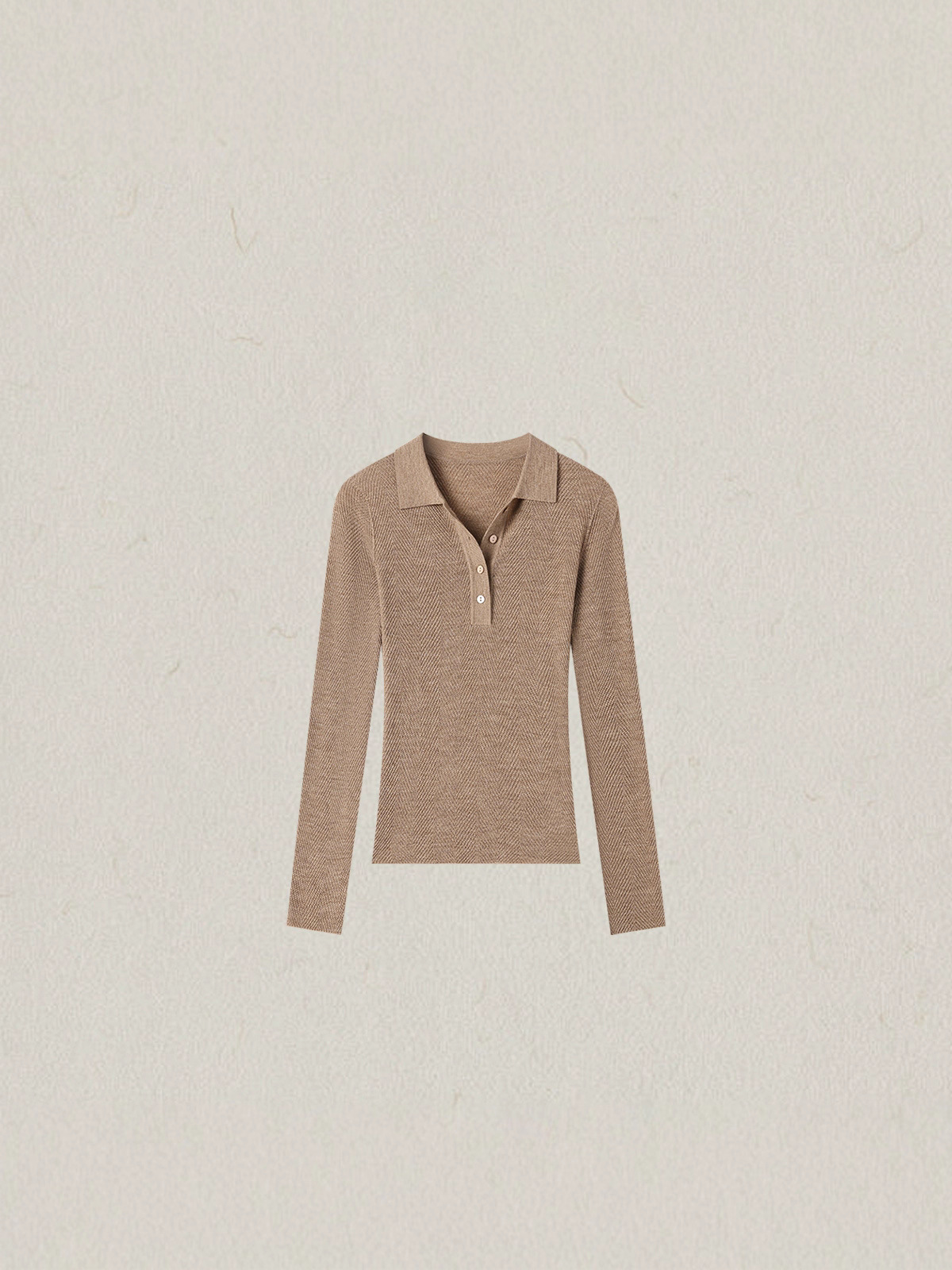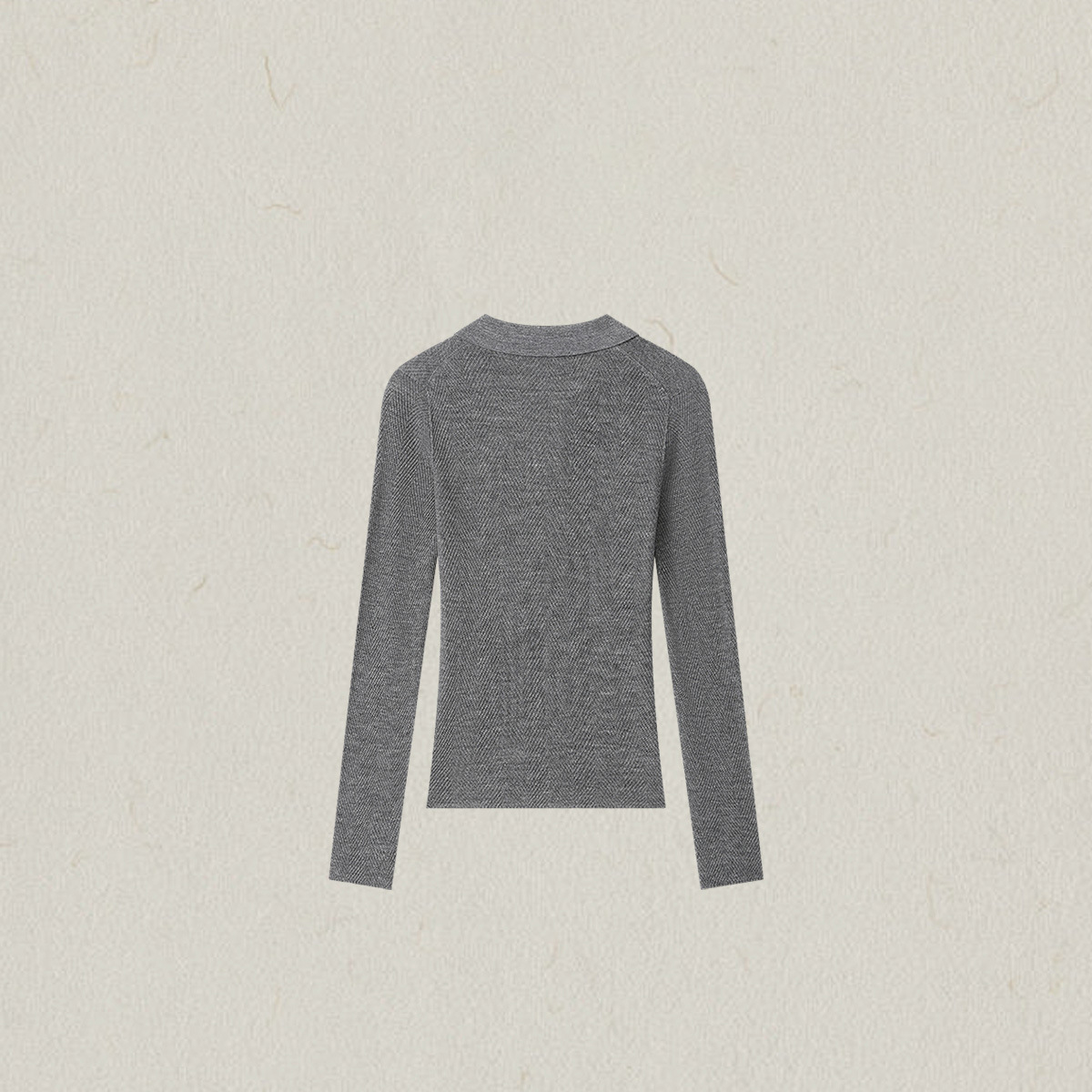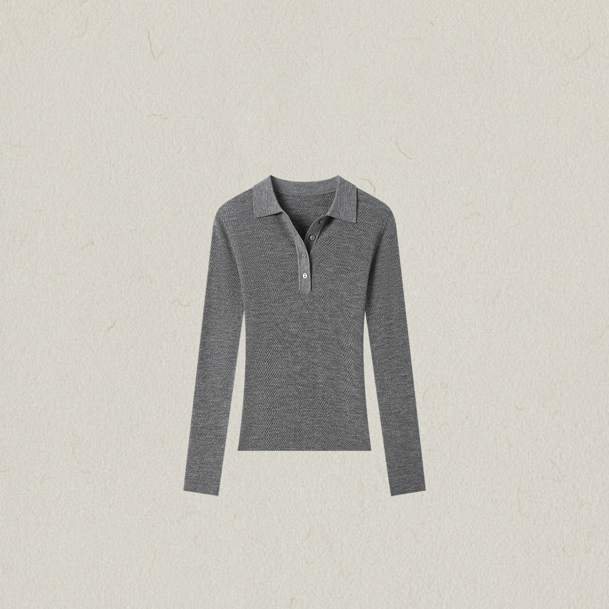 【温流线POLO】100%美丽诺羊毛老钱风无缝一体扬子纱人字纹Polo衫