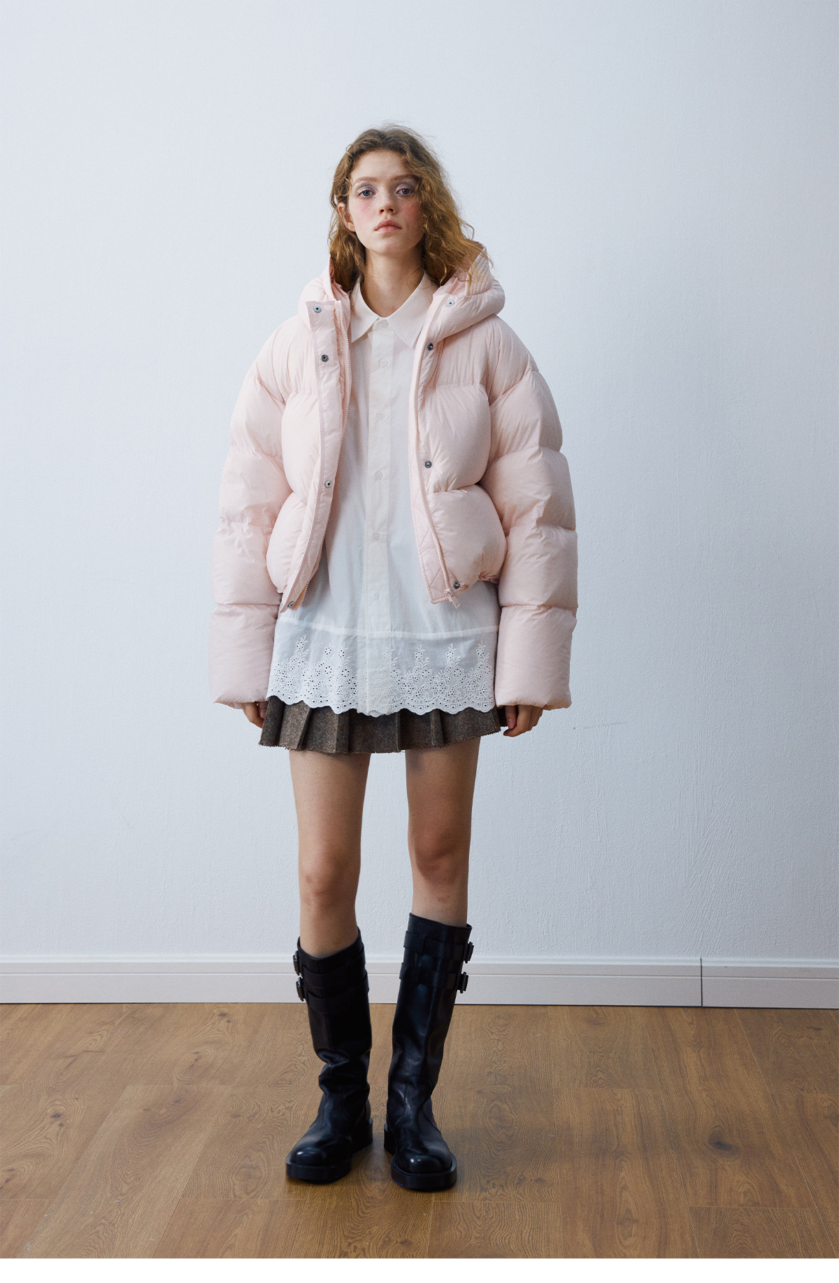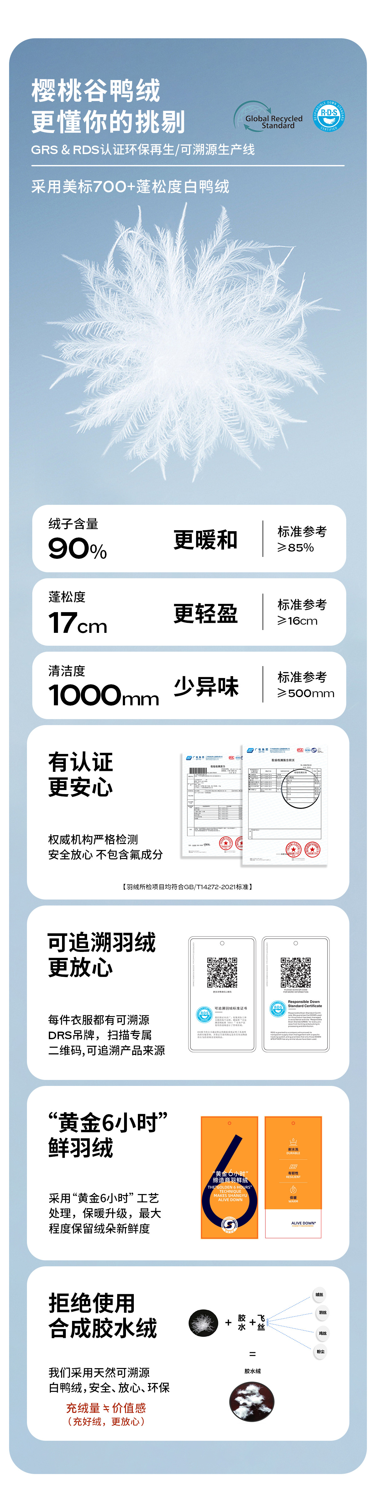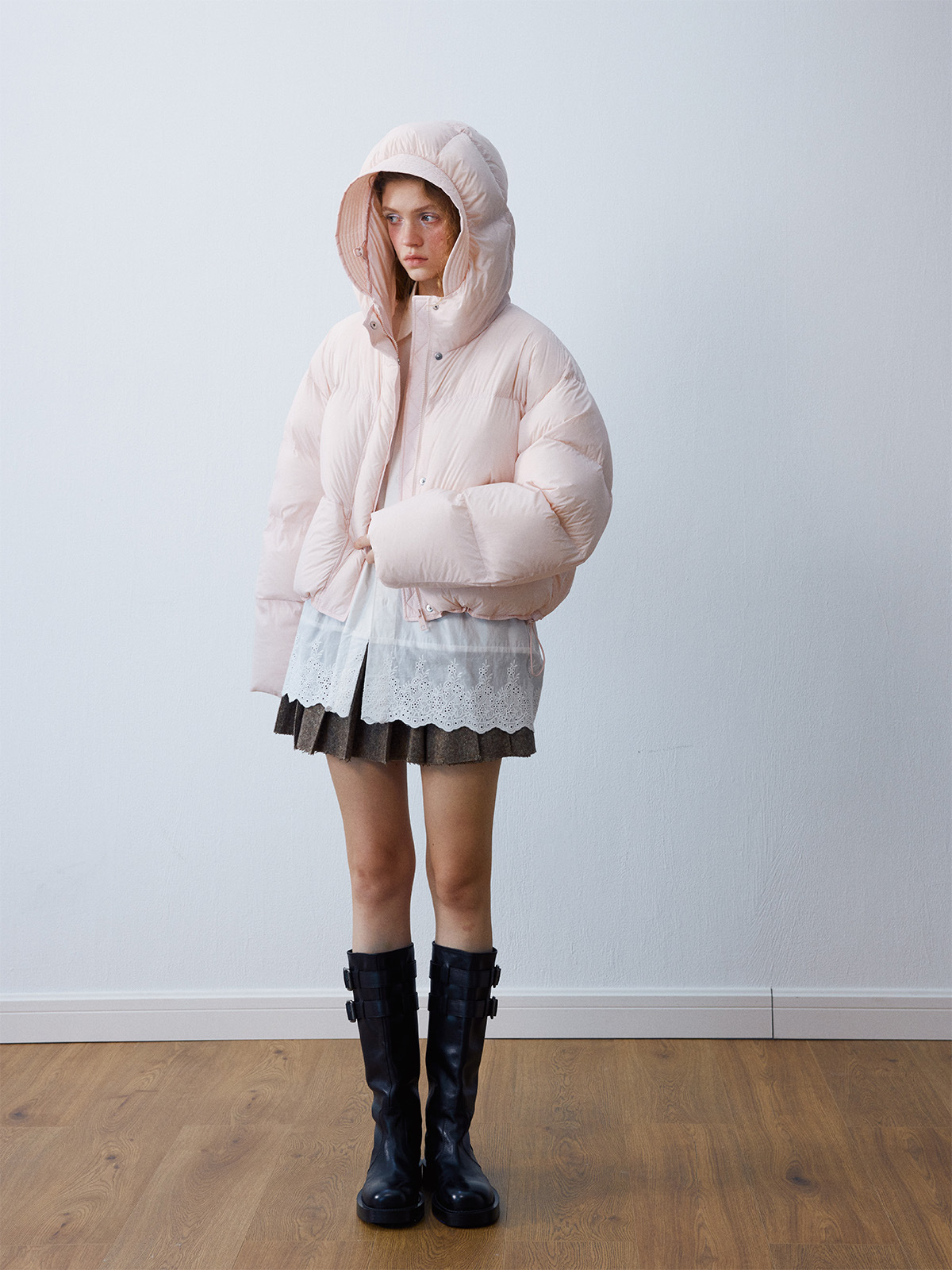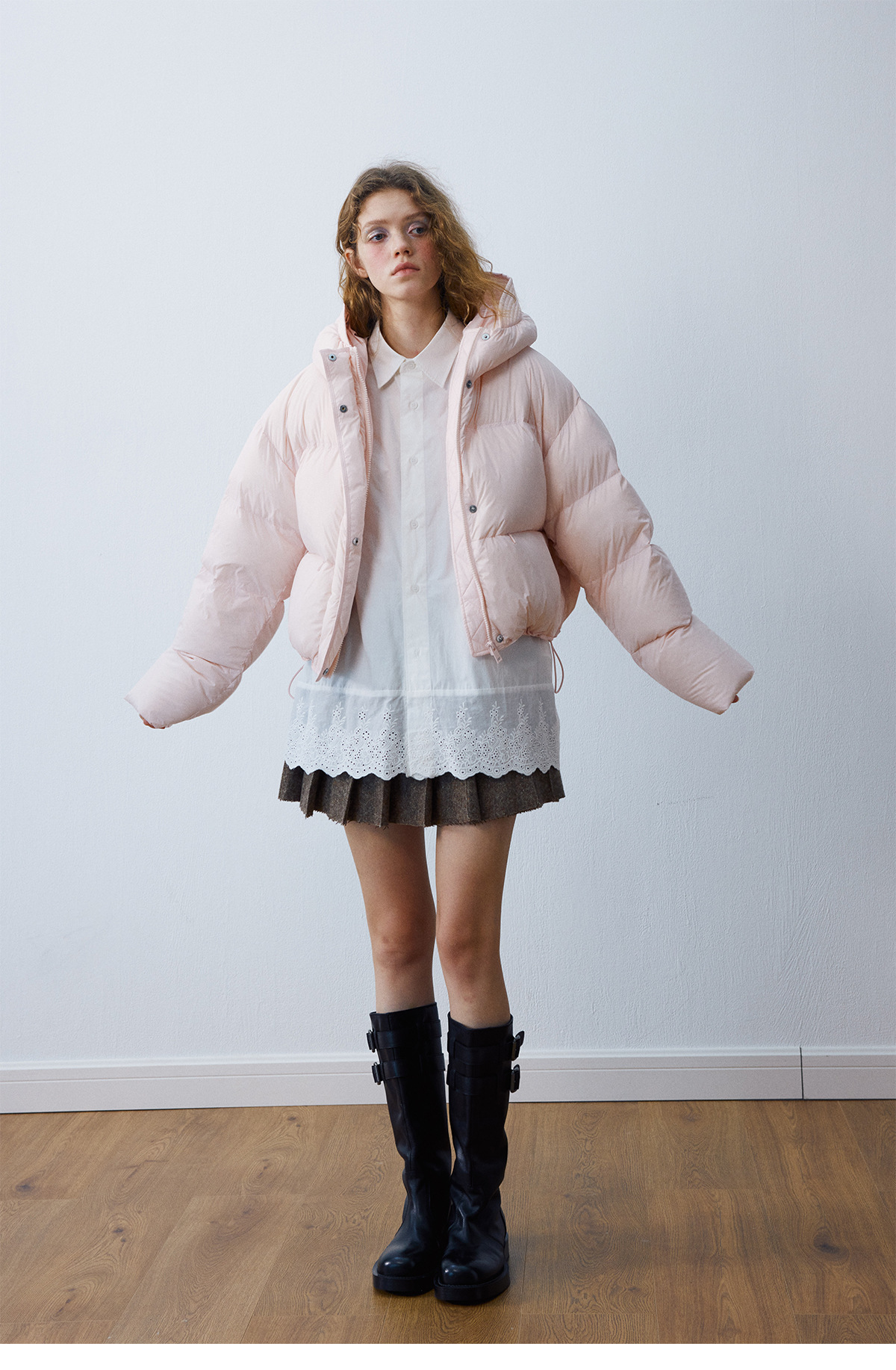 【玳禾】冬季新款休闲连帽花苞RDS可溯源90白鸭绒泡芙羽绒服H9357